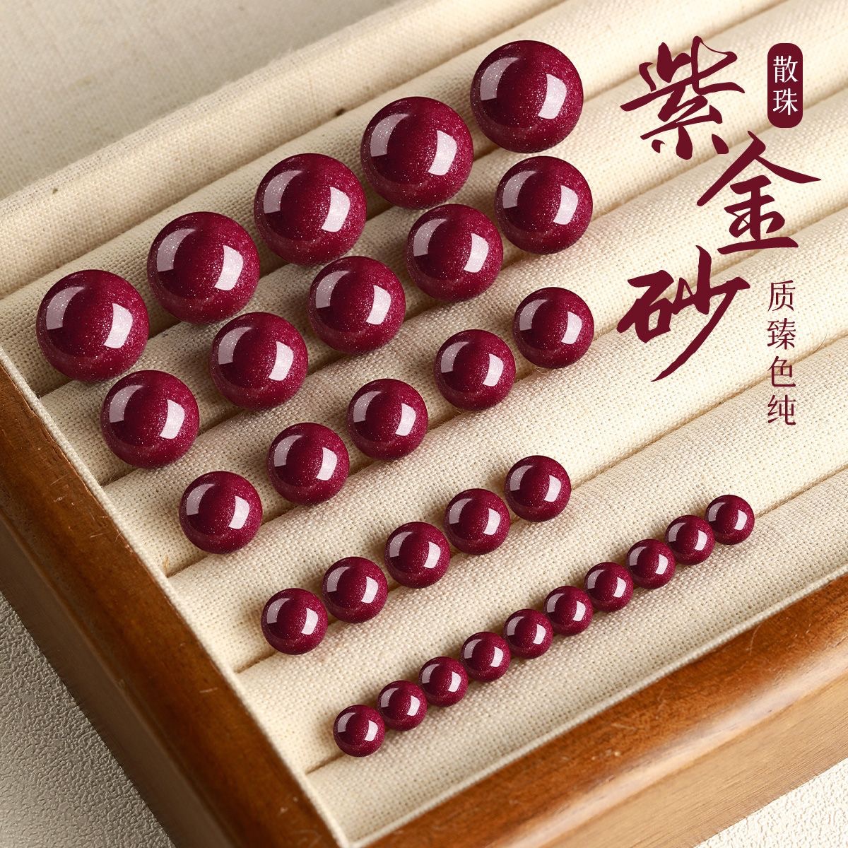 天然紫金砂原矿砂圆珠散珠串珠批发珠子原矿朱砂圆珠真朱砂圆珠