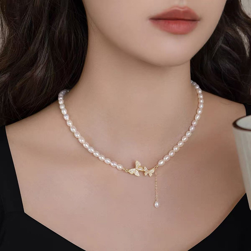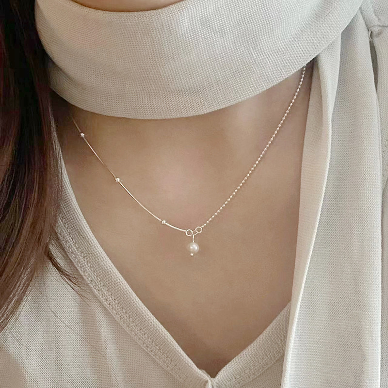 S925银珍珠项链女小众设计时尚气质优雅不掉色叠戴锁骨链配饰批发