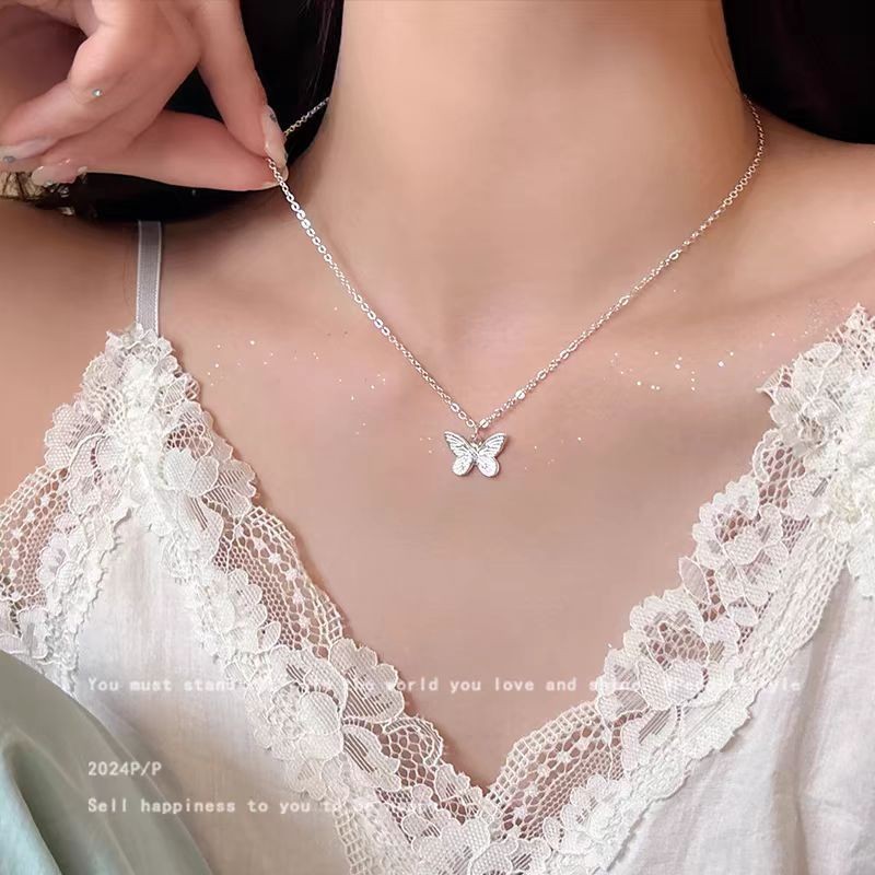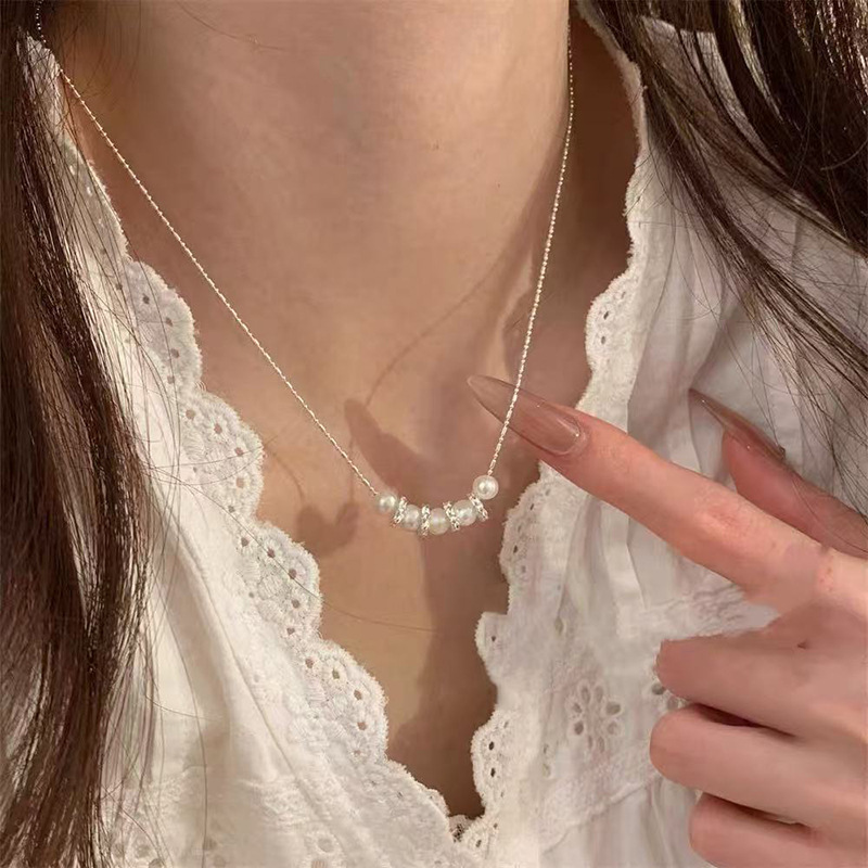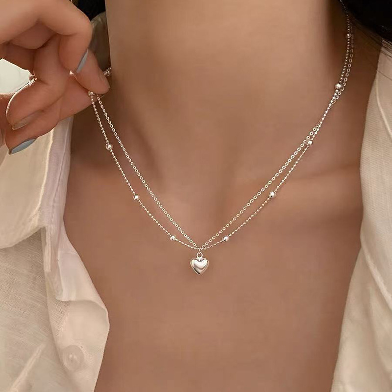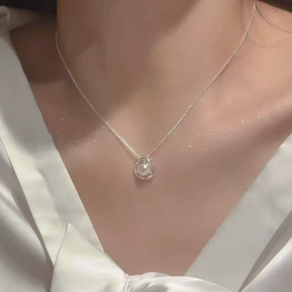 S925纯银珍珠爱心项链女新款简约百搭锁骨链高级感不掉色配饰批发