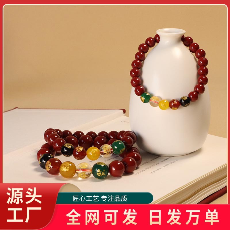 朱砂五路财神紫金砂手串红砂手链情侣本命年公司伴手礼品批发