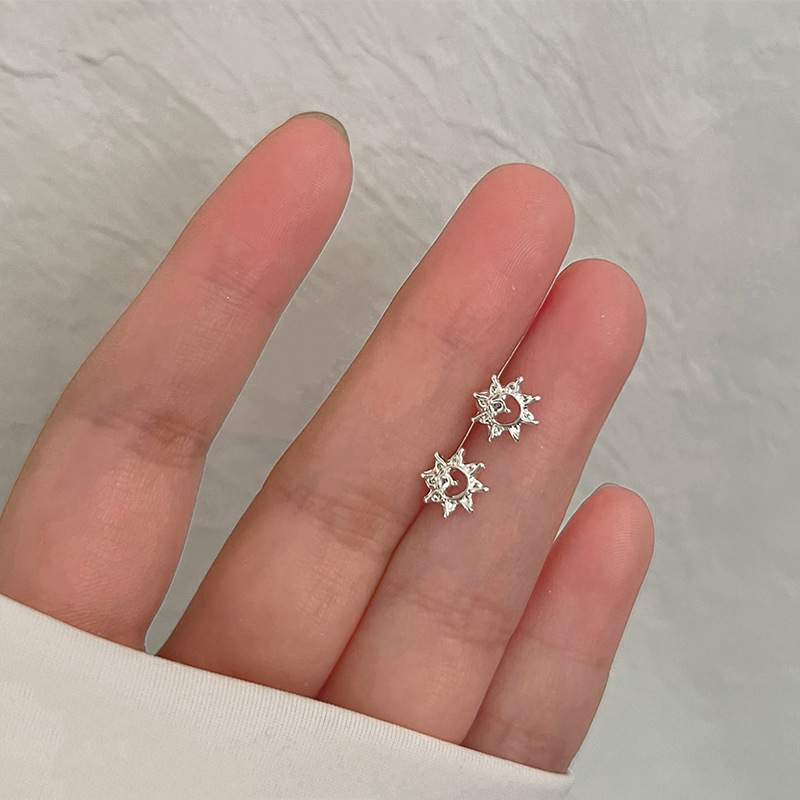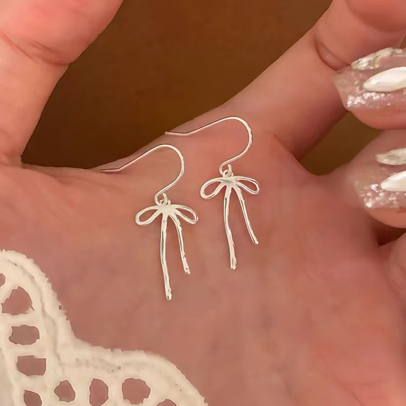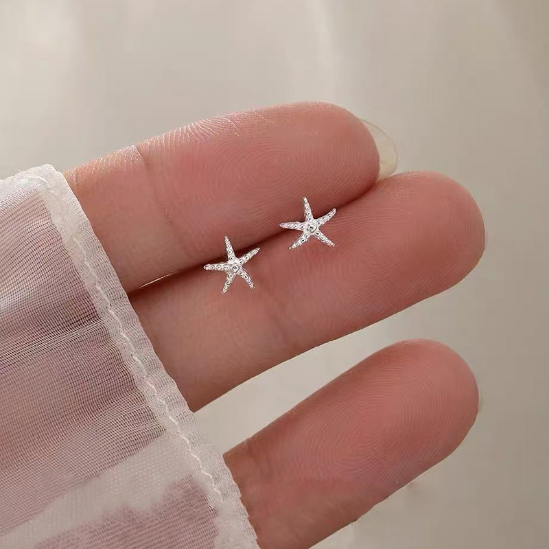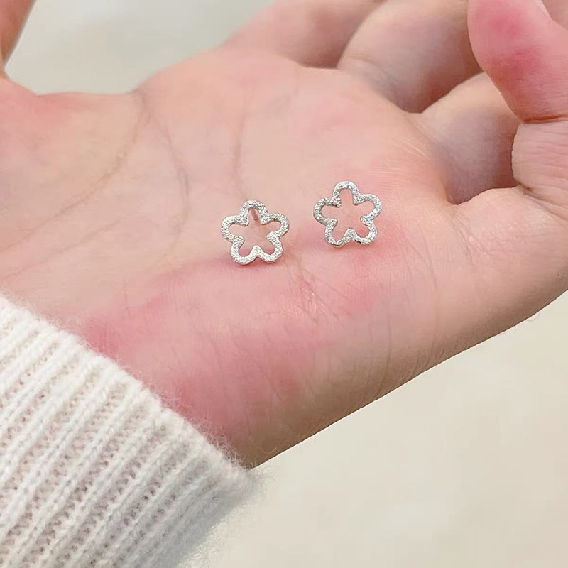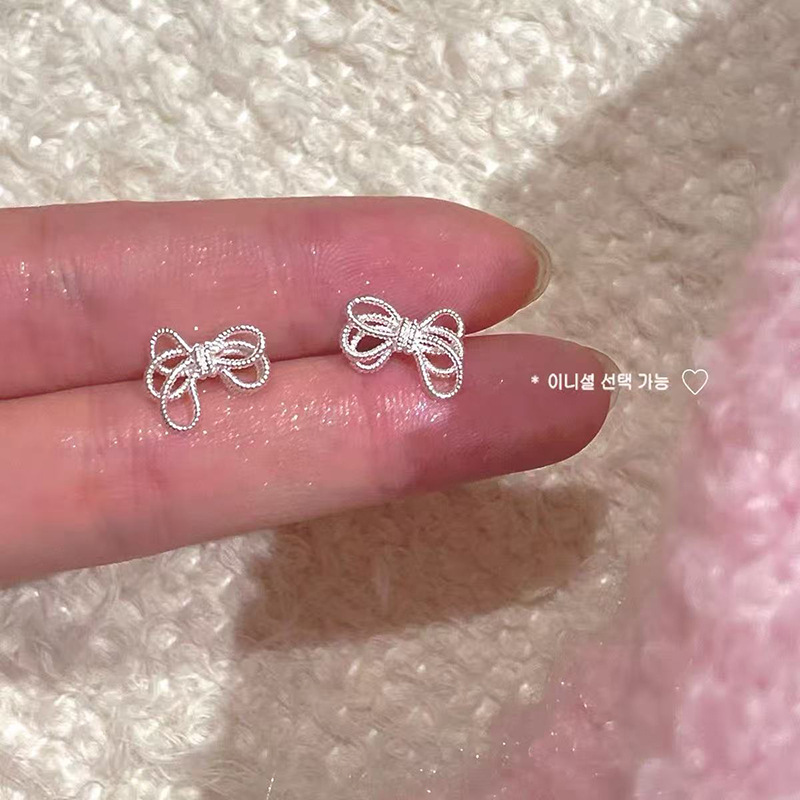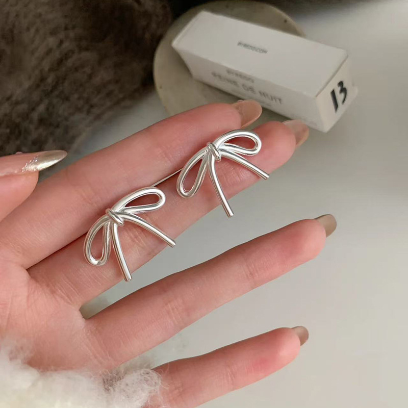 S925纯银蝴蝶爱心耳钉女小众设计简约时尚睡觉免摘养耳洞耳环耳饰