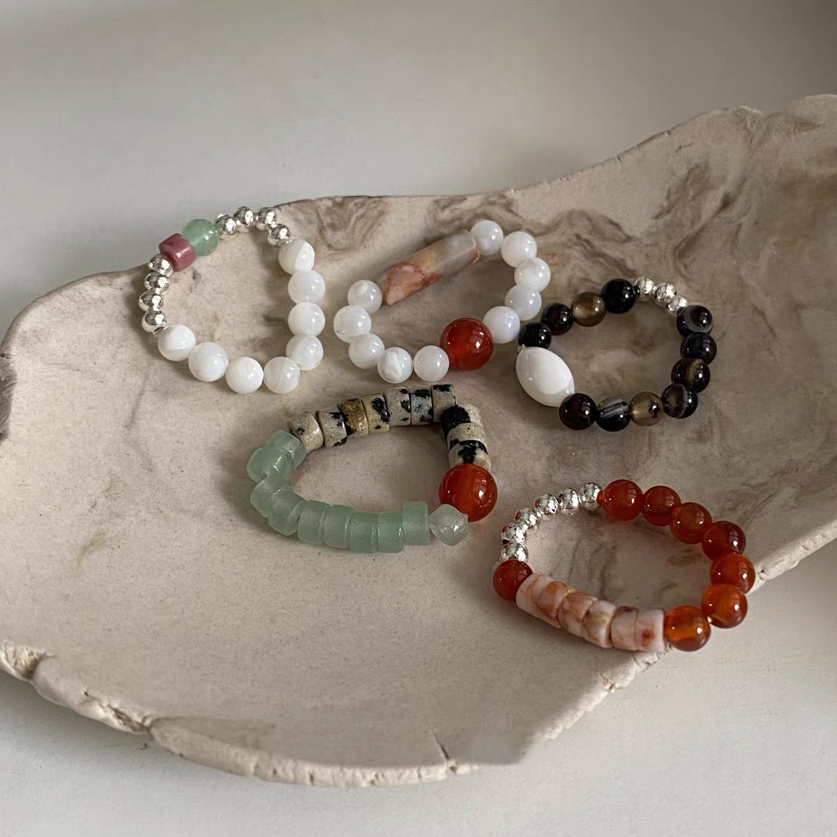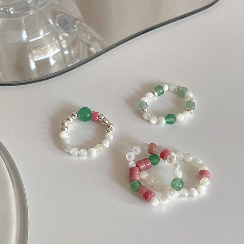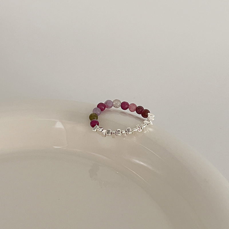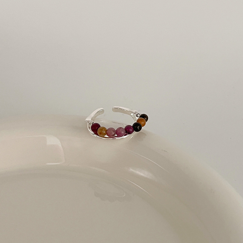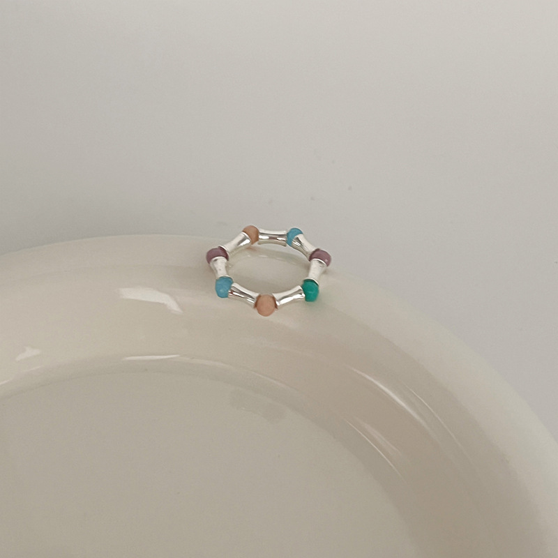 多巴胺戒指女小众设计个性串珠食指戒高级感时尚彩色可爱闭口指环