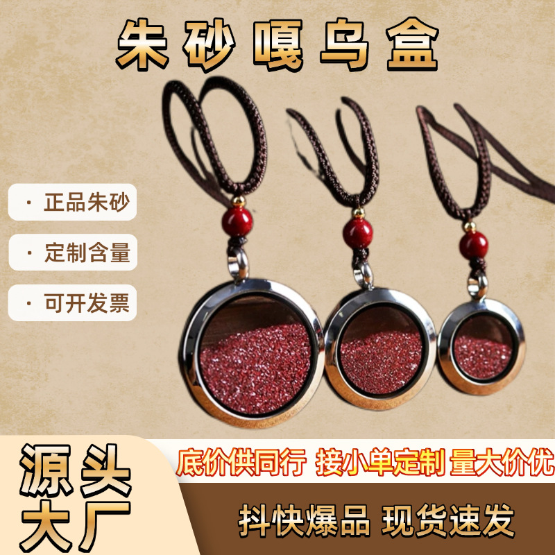 嘎乌盒朱砂唐卡道家饰品男女朱砂粉吊坠原石晶体钥匙扣朱砂项链