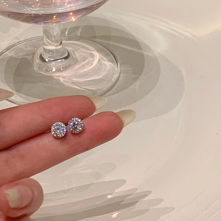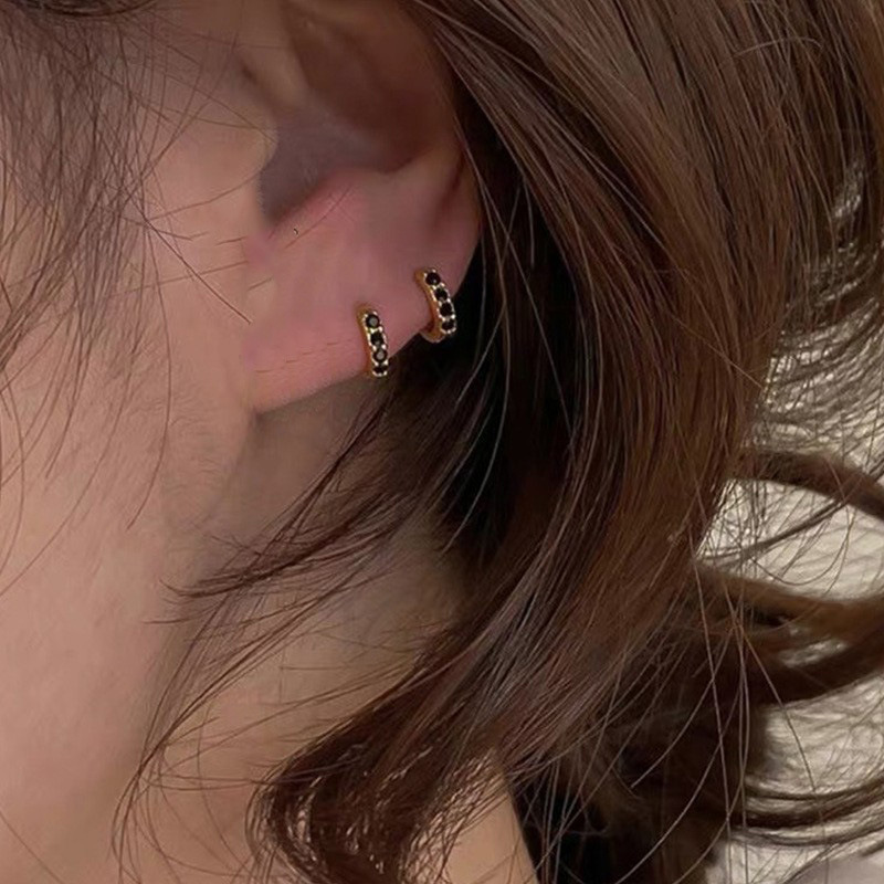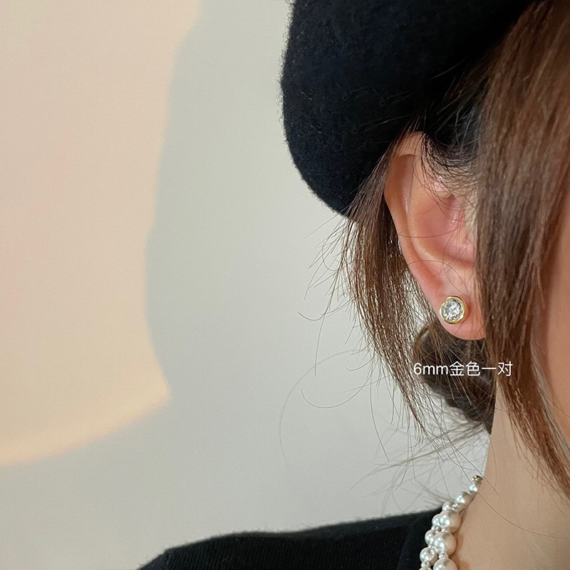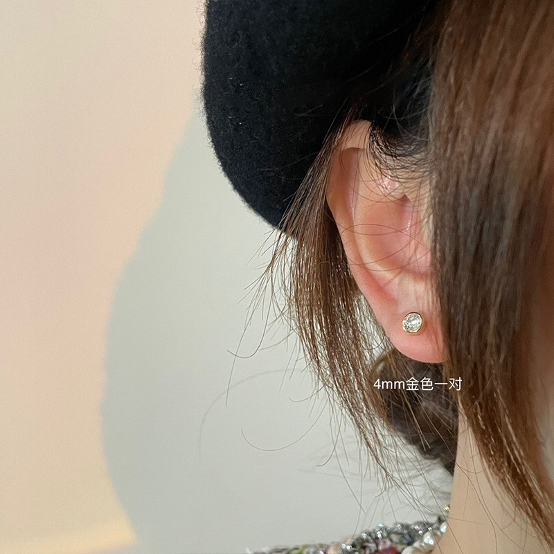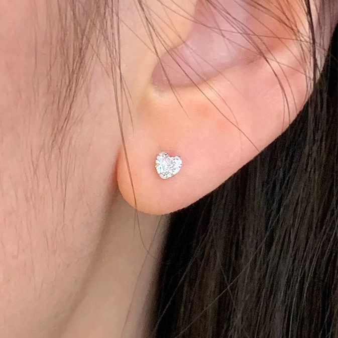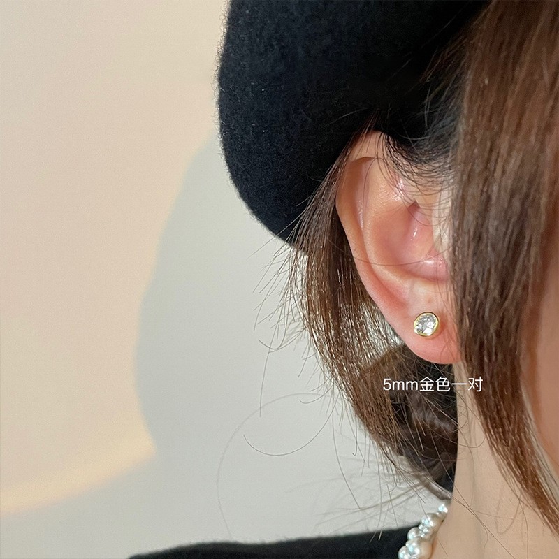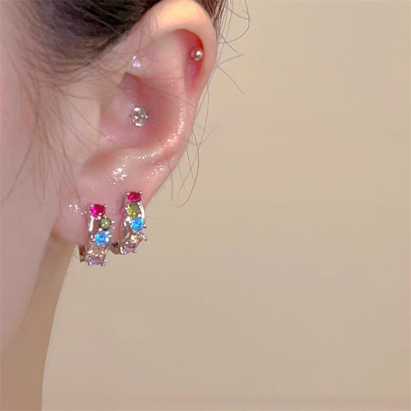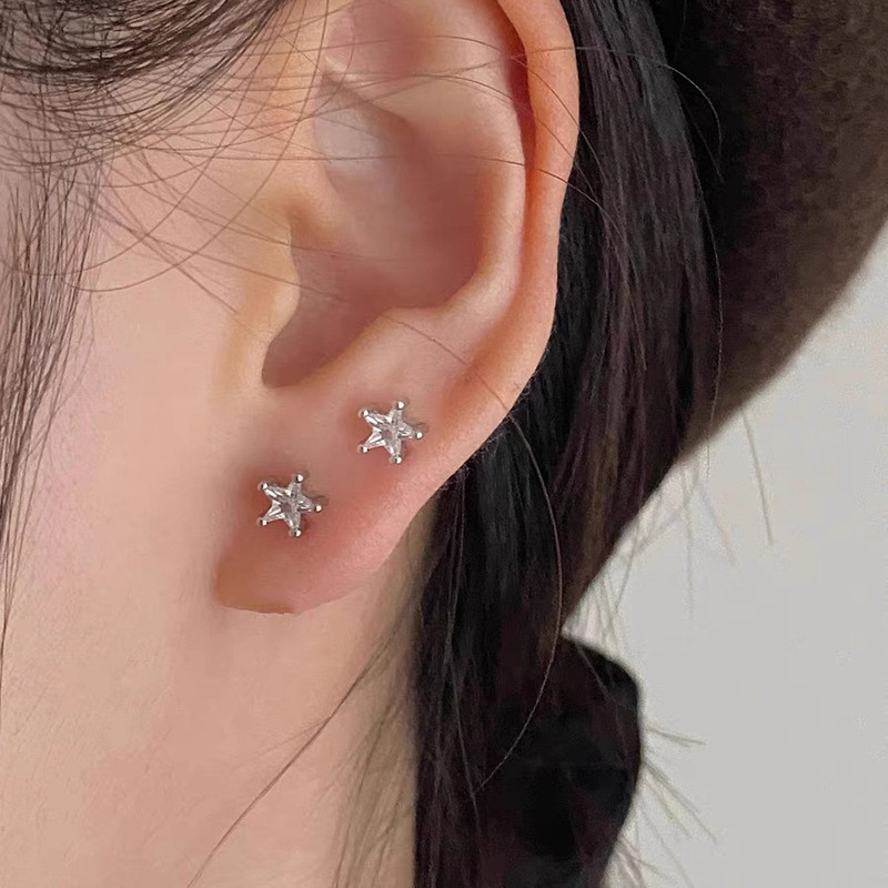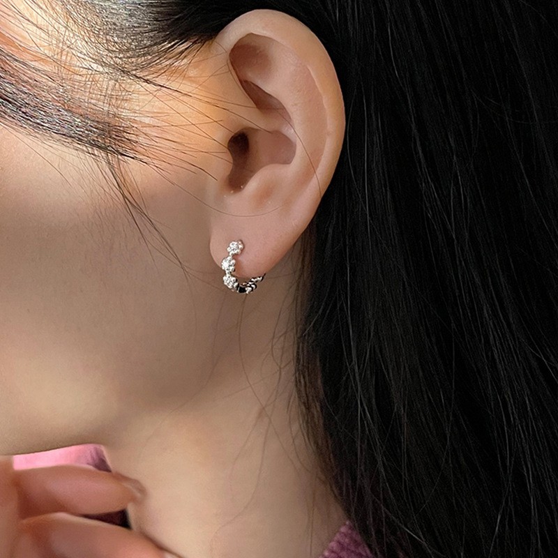 925纯银耳钉女养耳洞耳骨钉小众高级感锆石耳蜗钉钻石耳环银耳饰