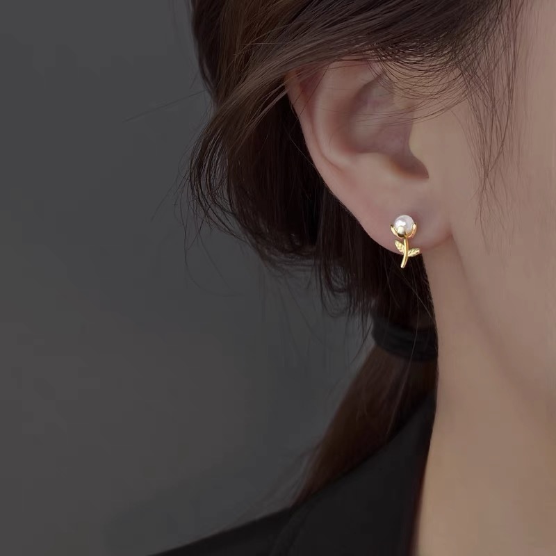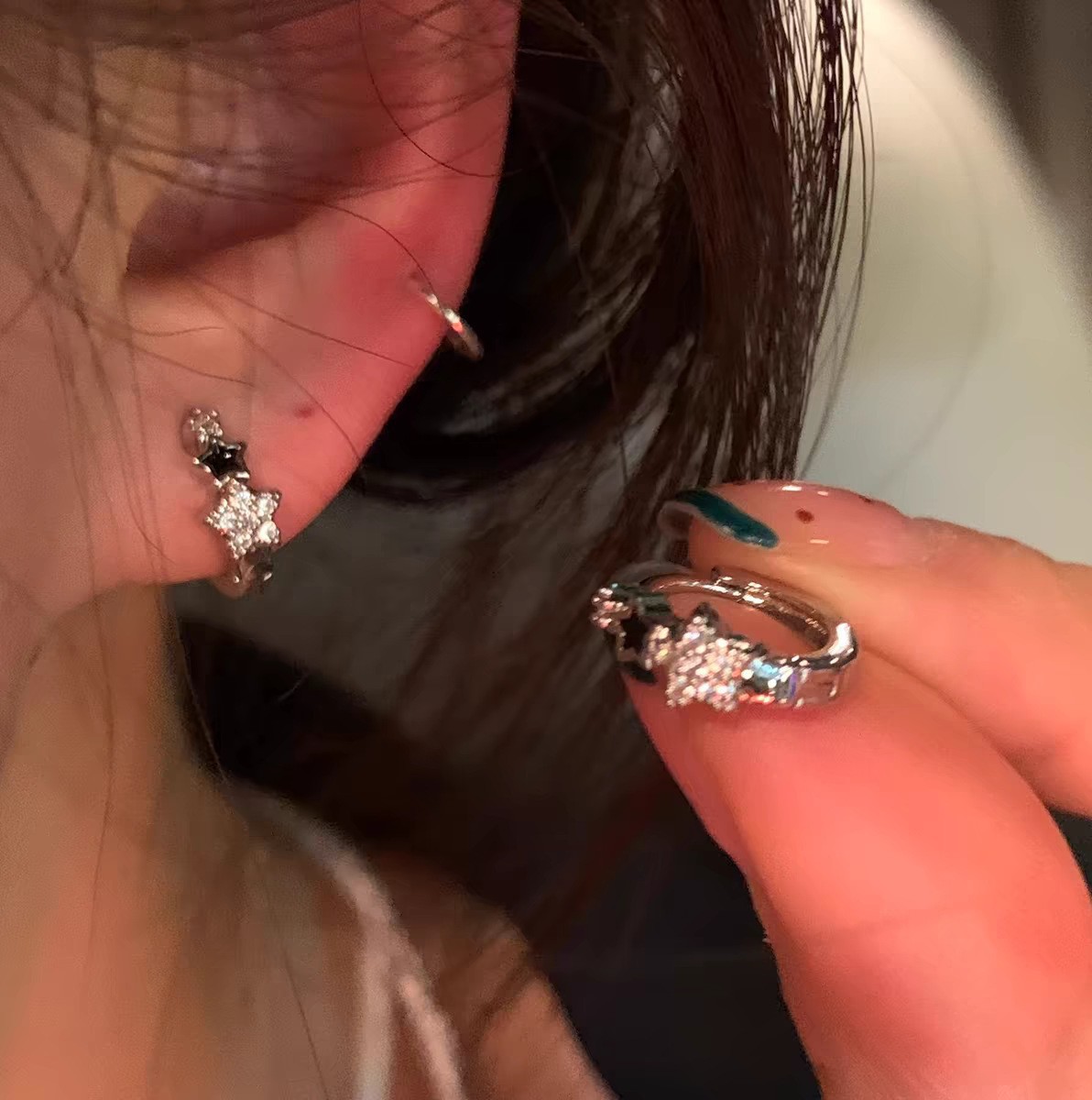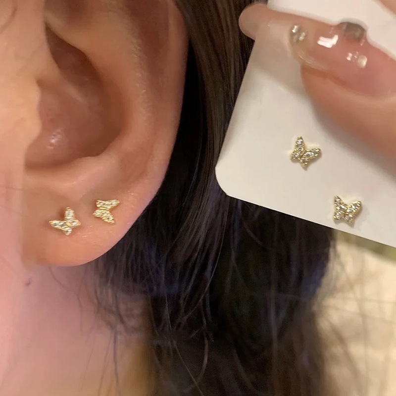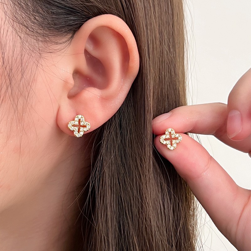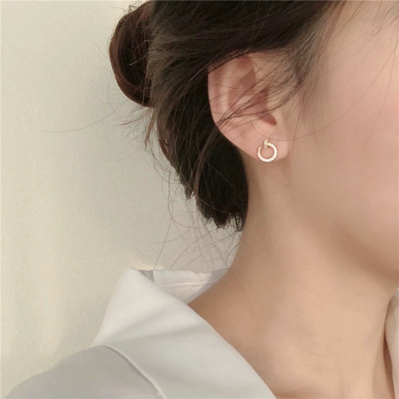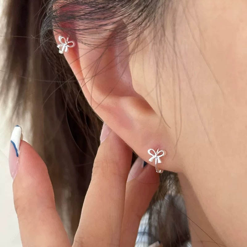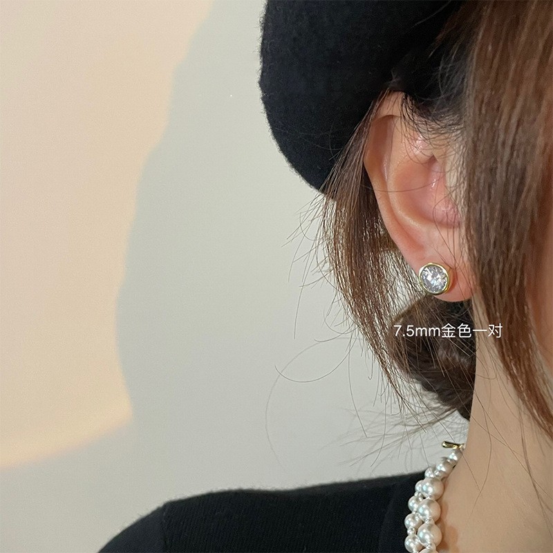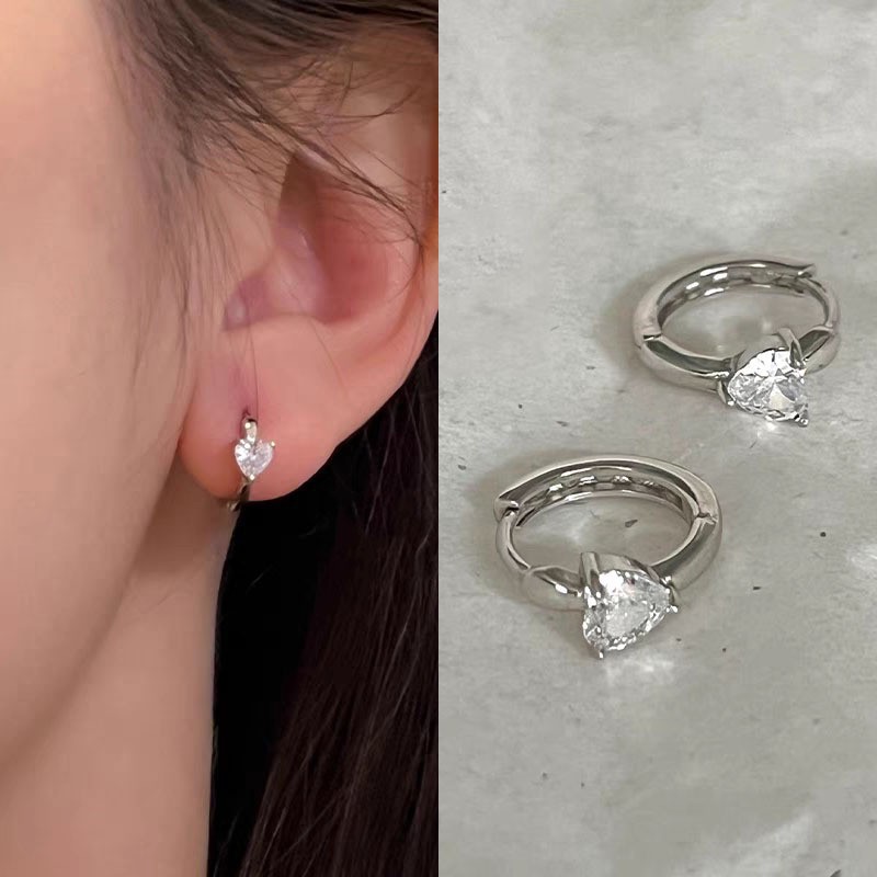 925纯银耳钉女养耳洞耳骨钉小众高级感锆石耳蜗钉钻石耳环银耳饰