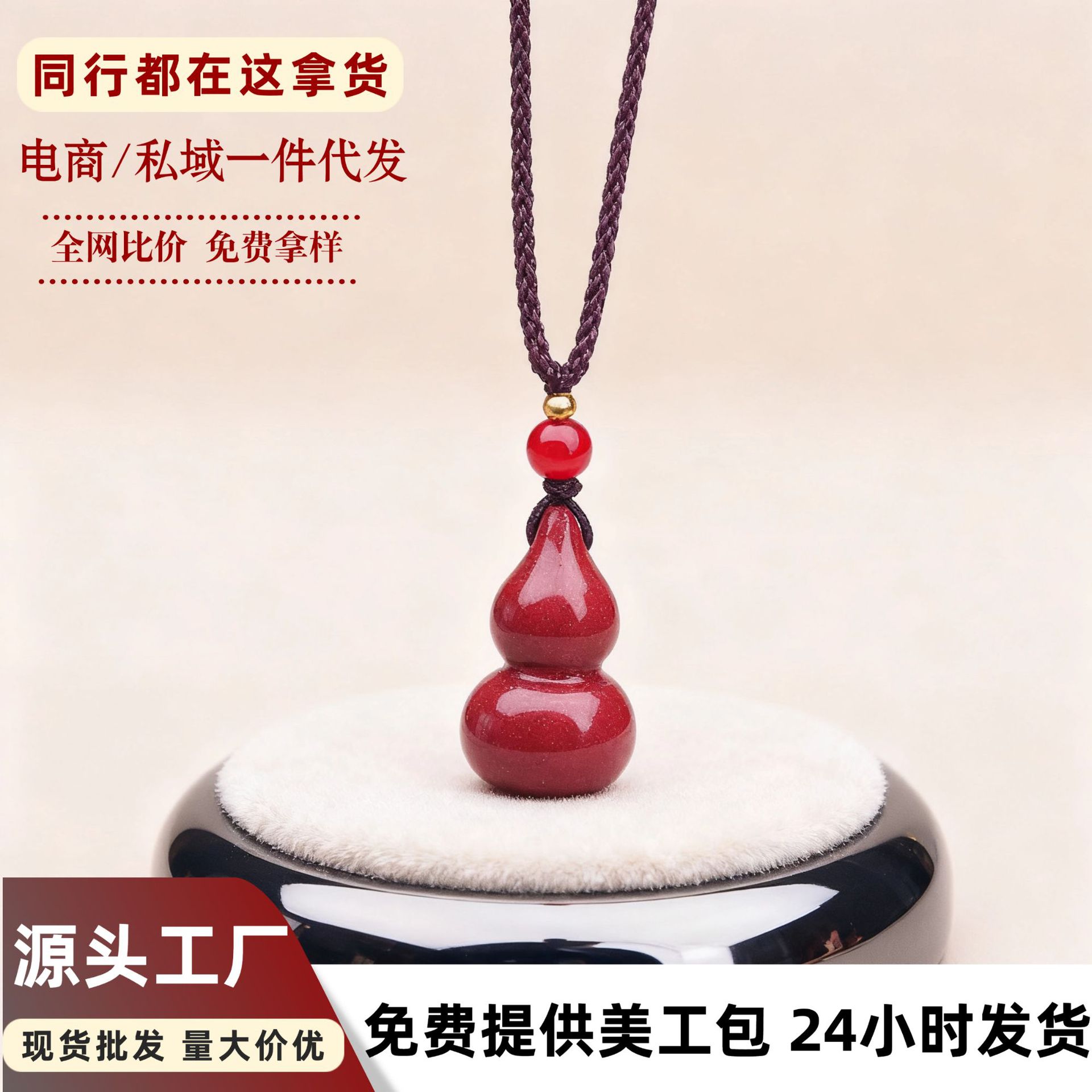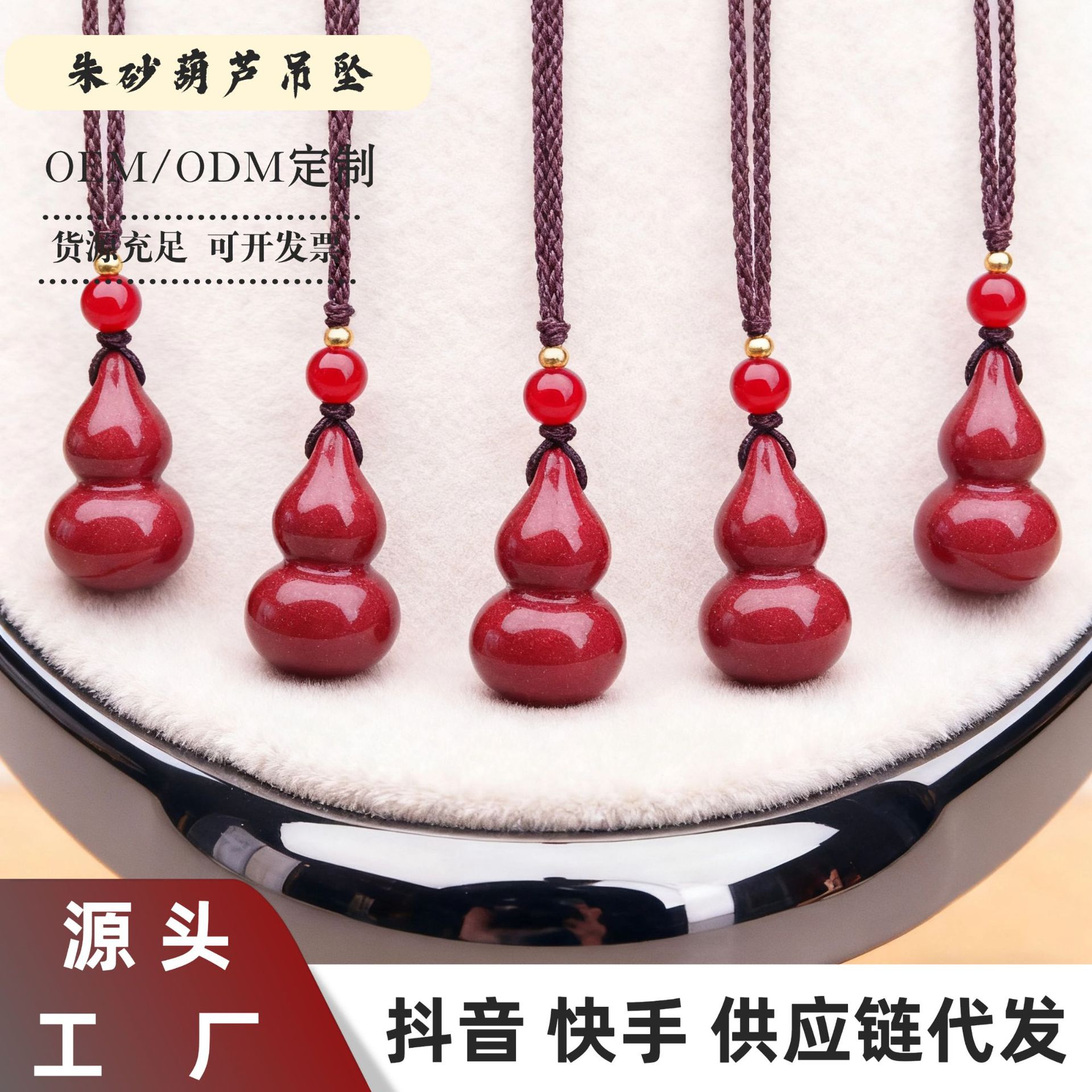 朱砂吊坠紫金砂葫芦吊坠笑佛道家饰品本命年朱砂挂件可代发