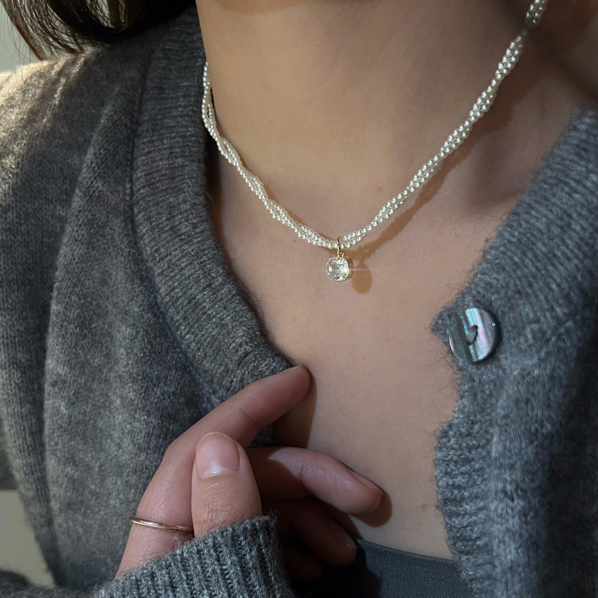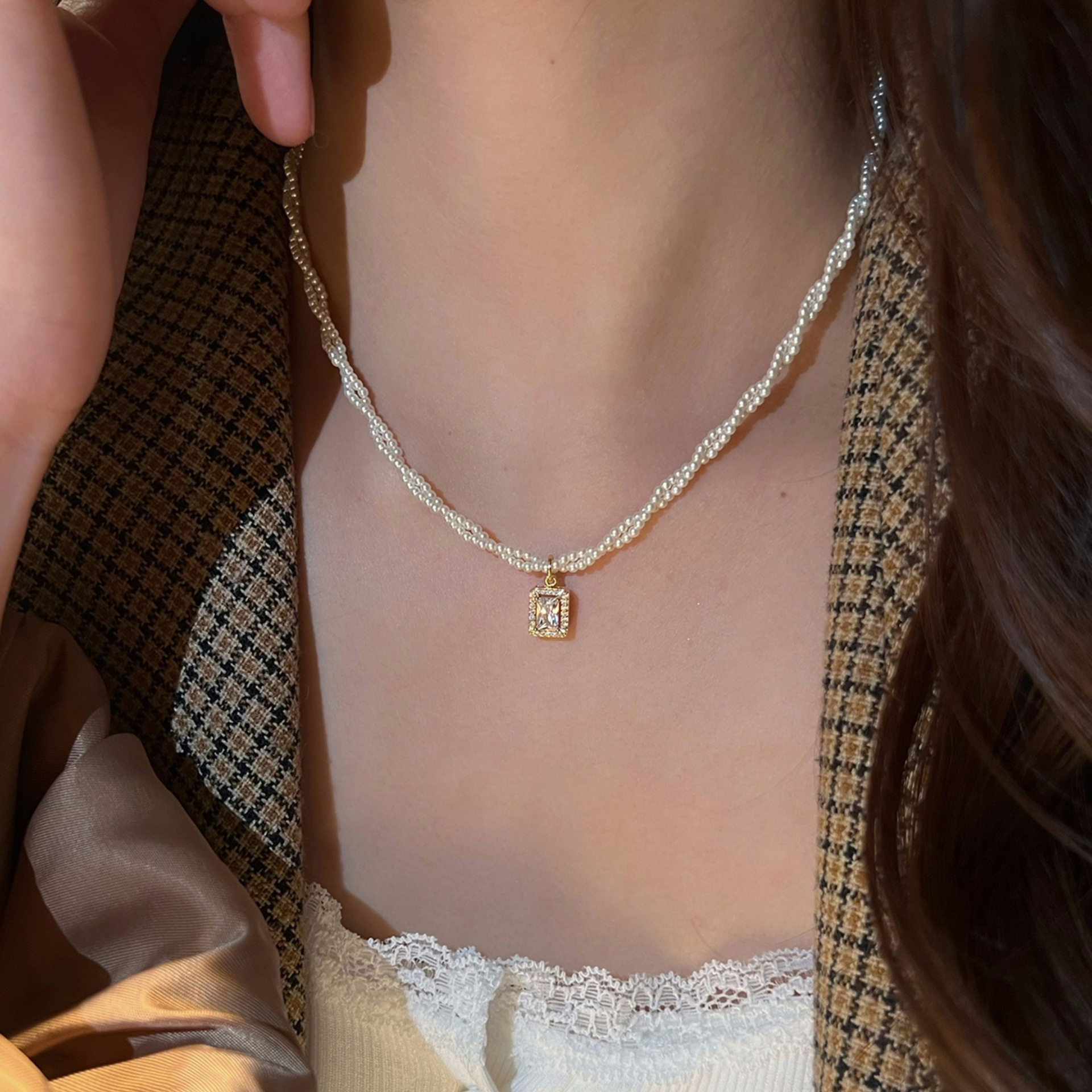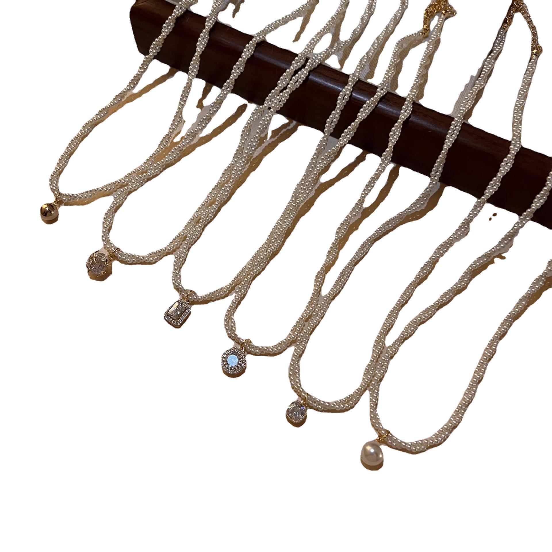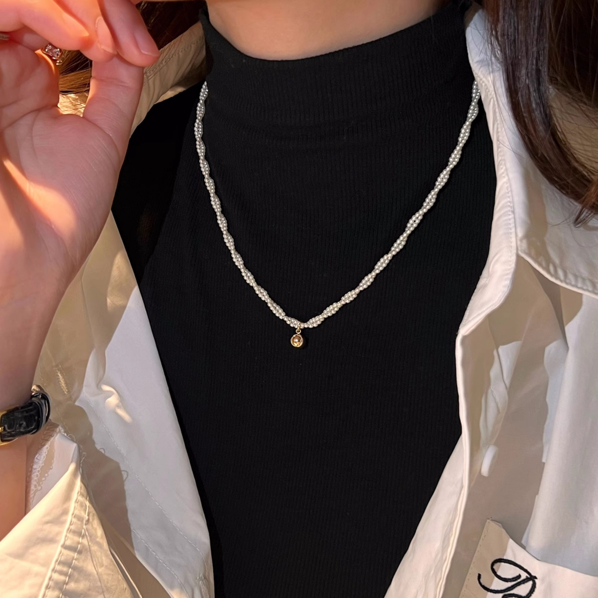 双层叠戴珍珠贝母项链颈链锁骨链轻奢小众2024新款爆款吊坠装饰女