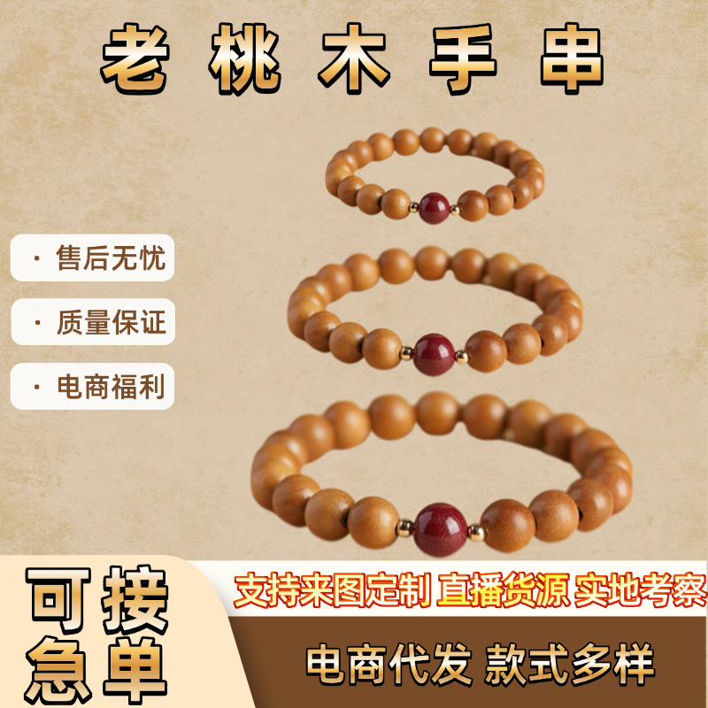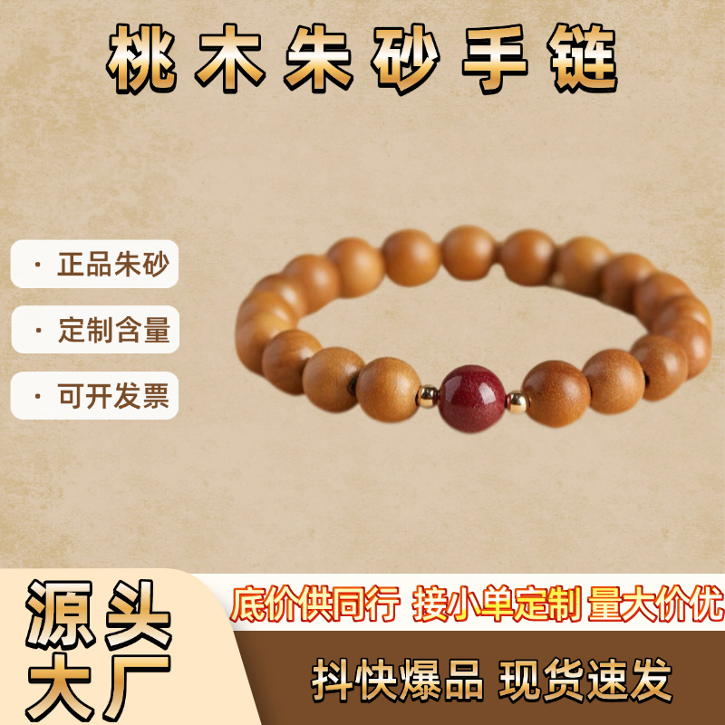 朱砂手链定制含量创意小礼品加工抖音快手桃木单圈多圈朱砂手串