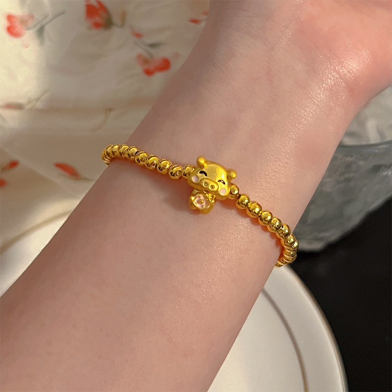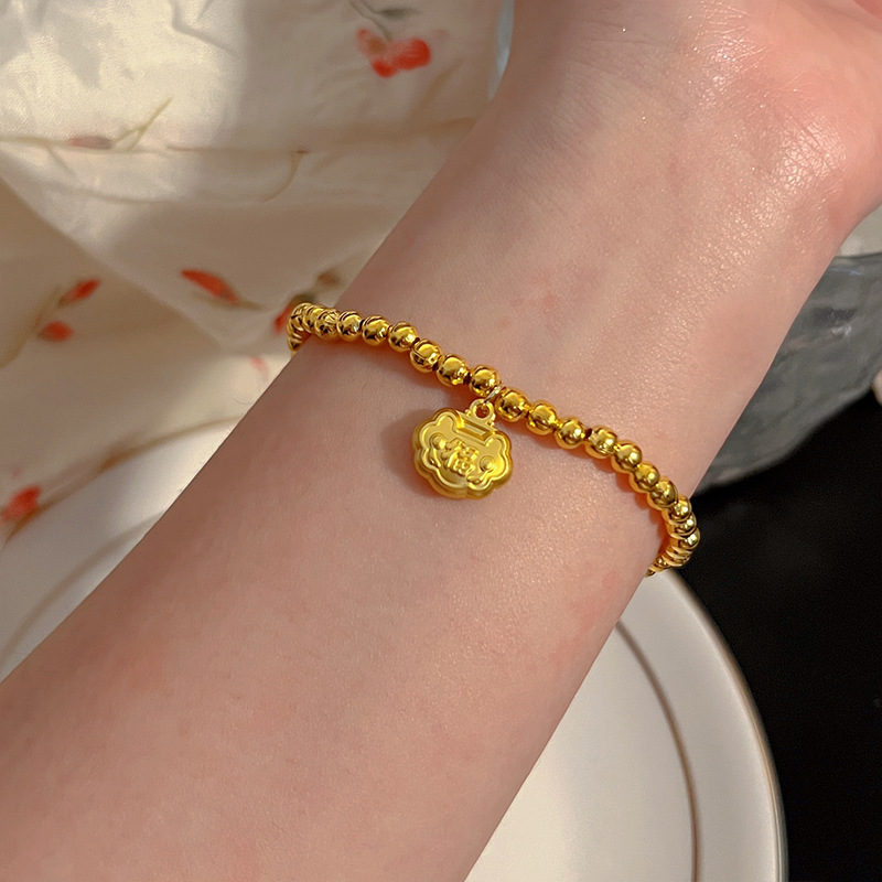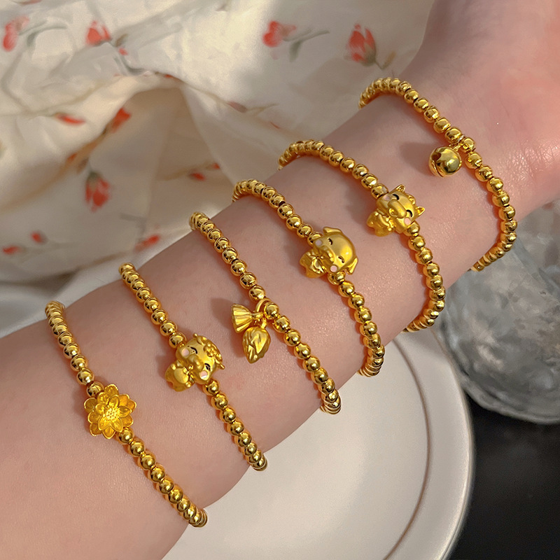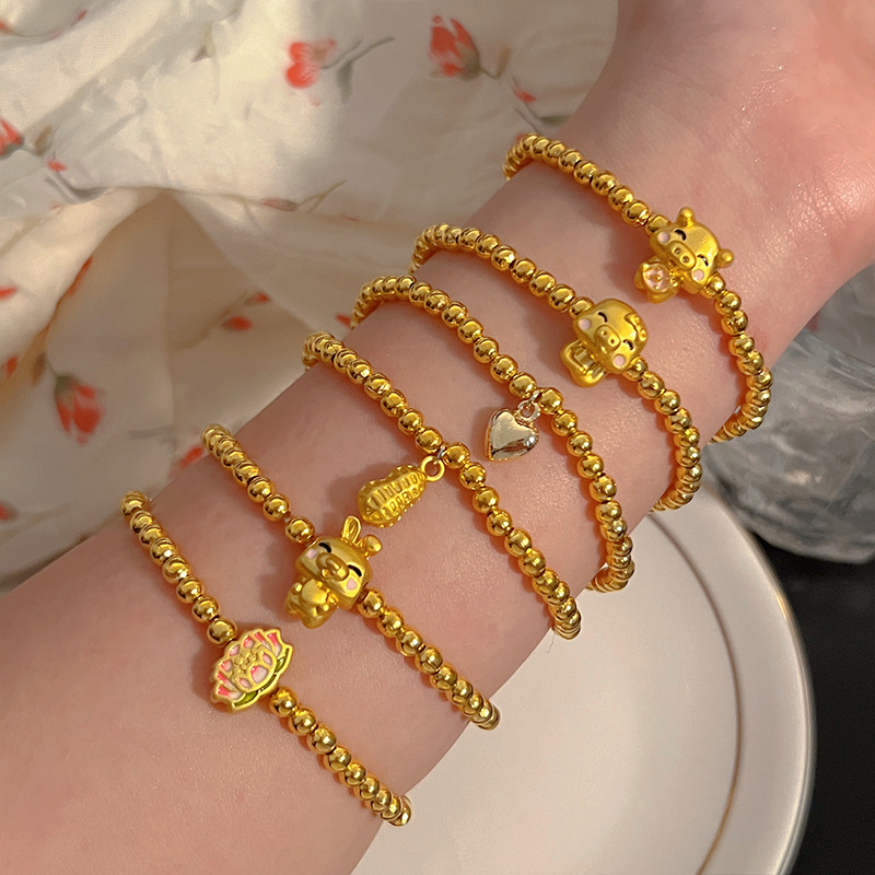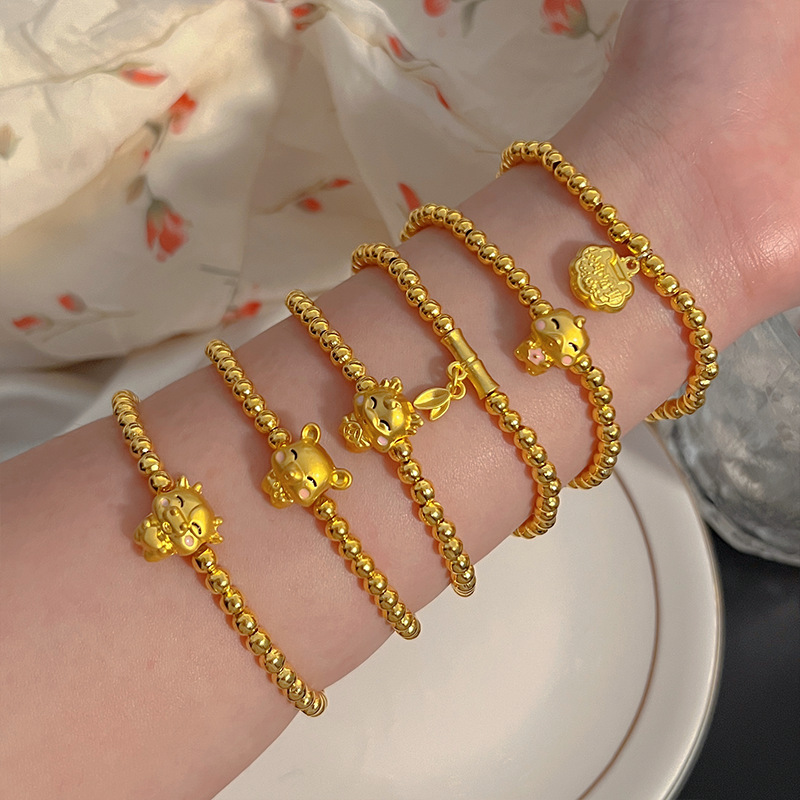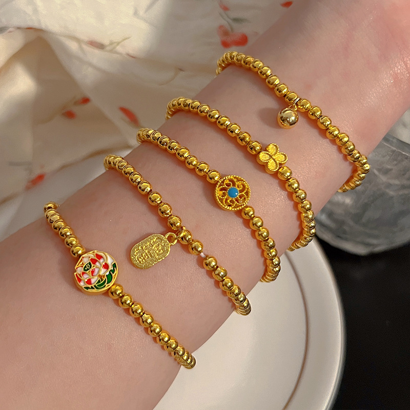 沙金中古风圆珠图案手链组合串珠珠子2025新款手串手链潮流中古风