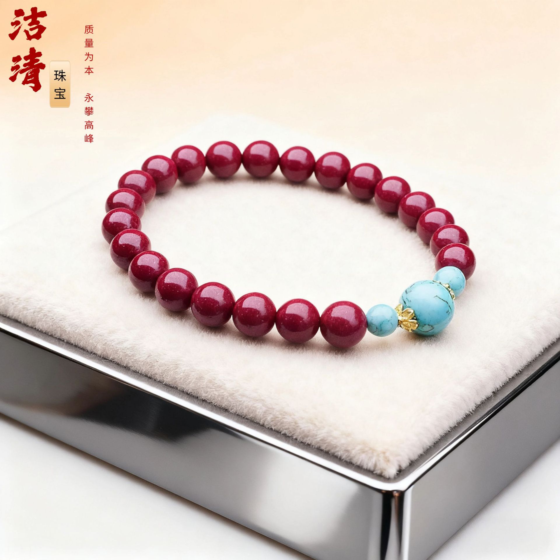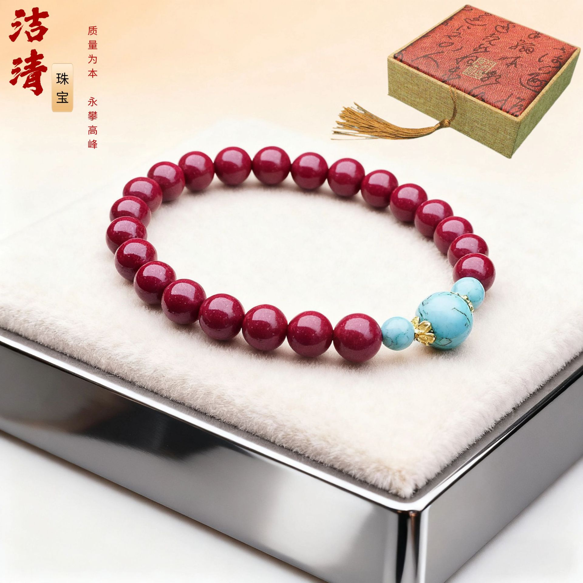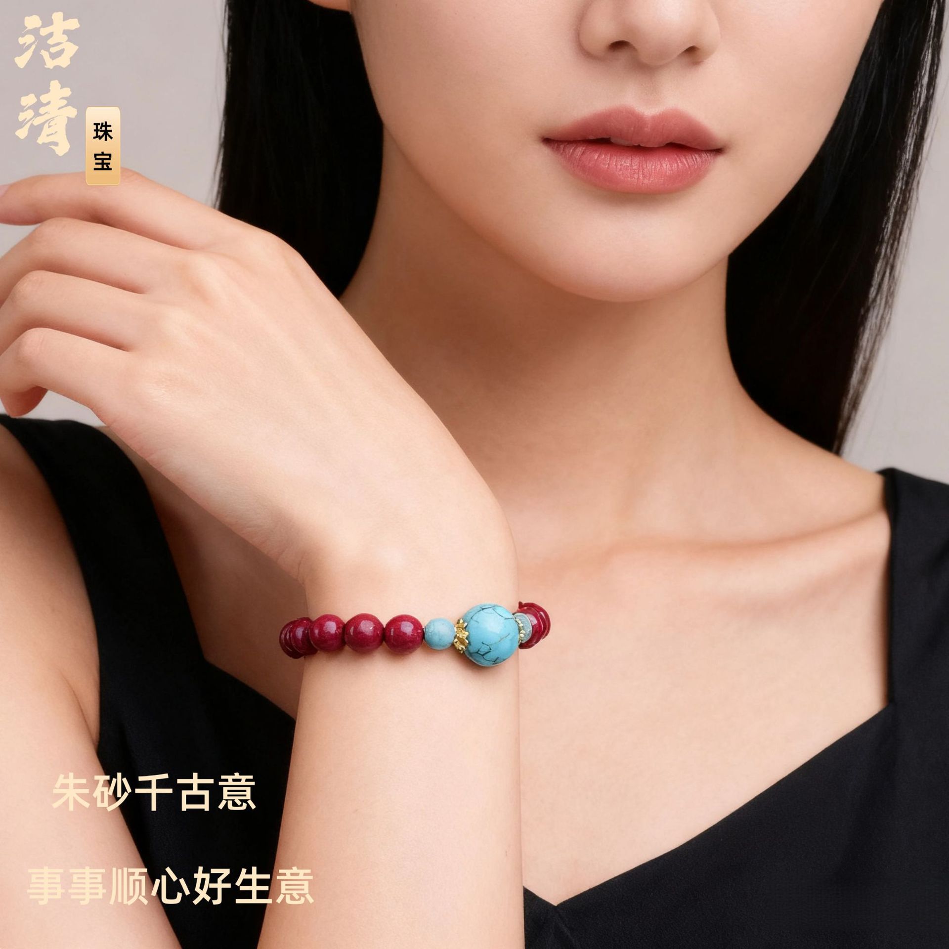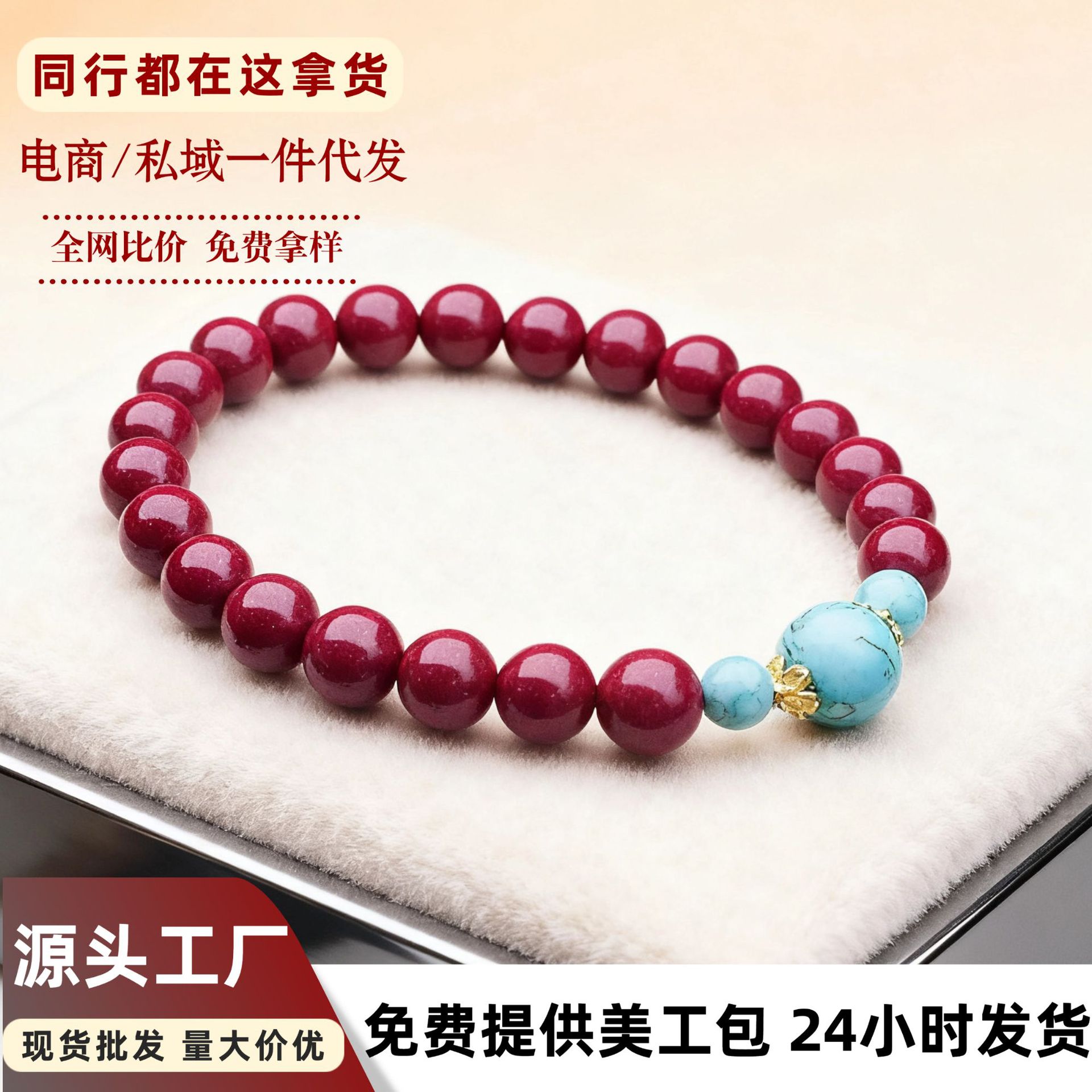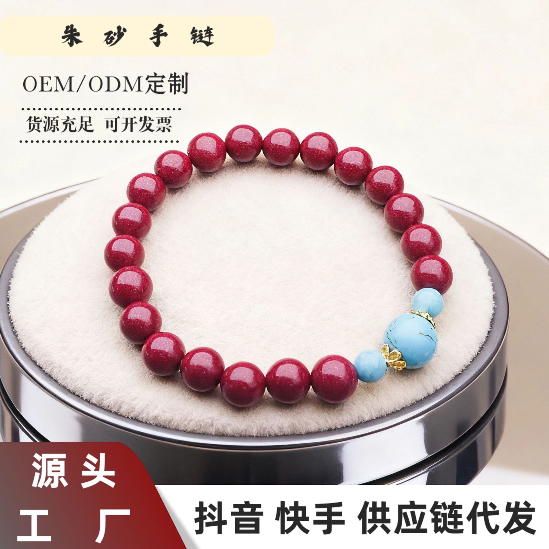 朱砂松石手串男女情侣款民族风复古盘文玩轻奢朱砂手链代发