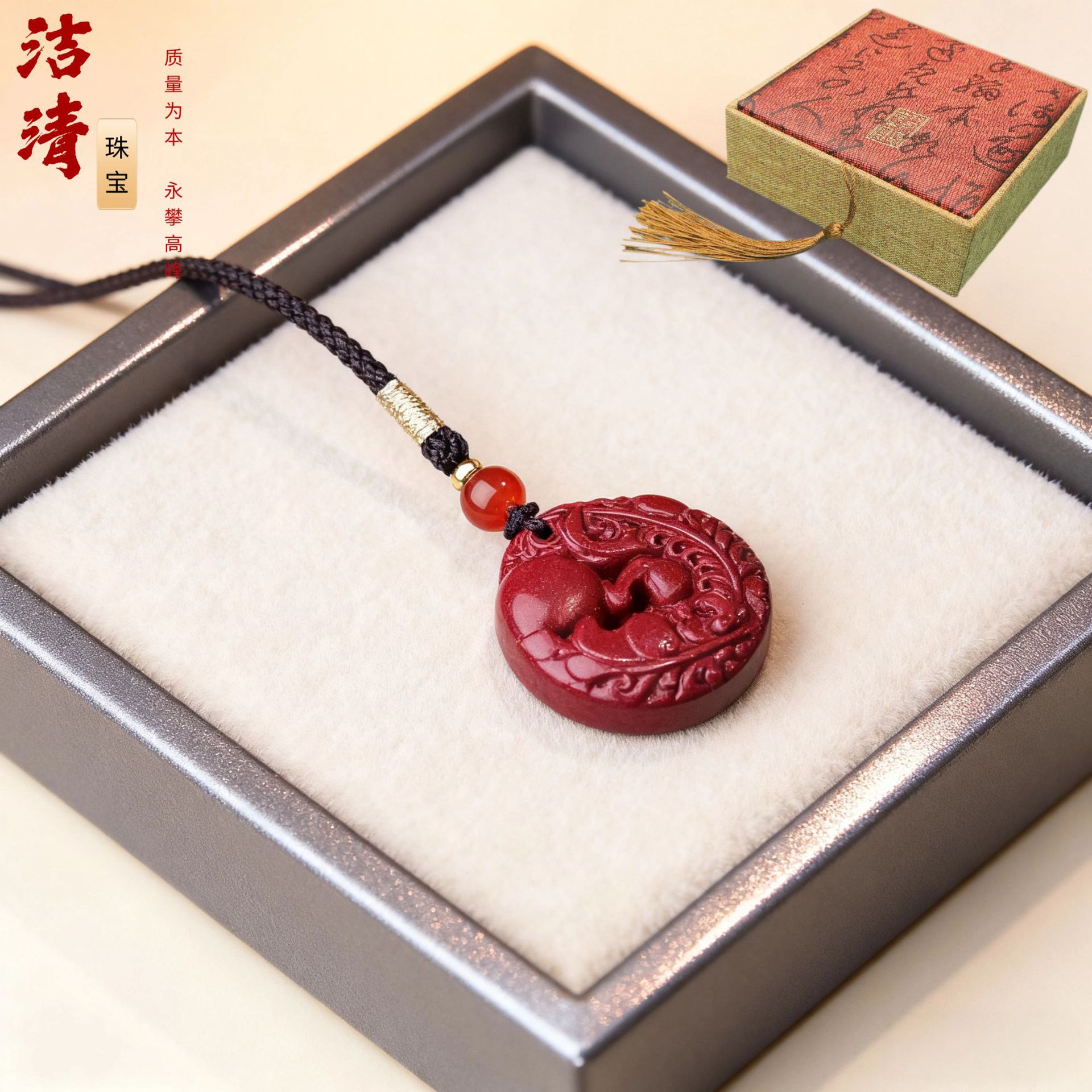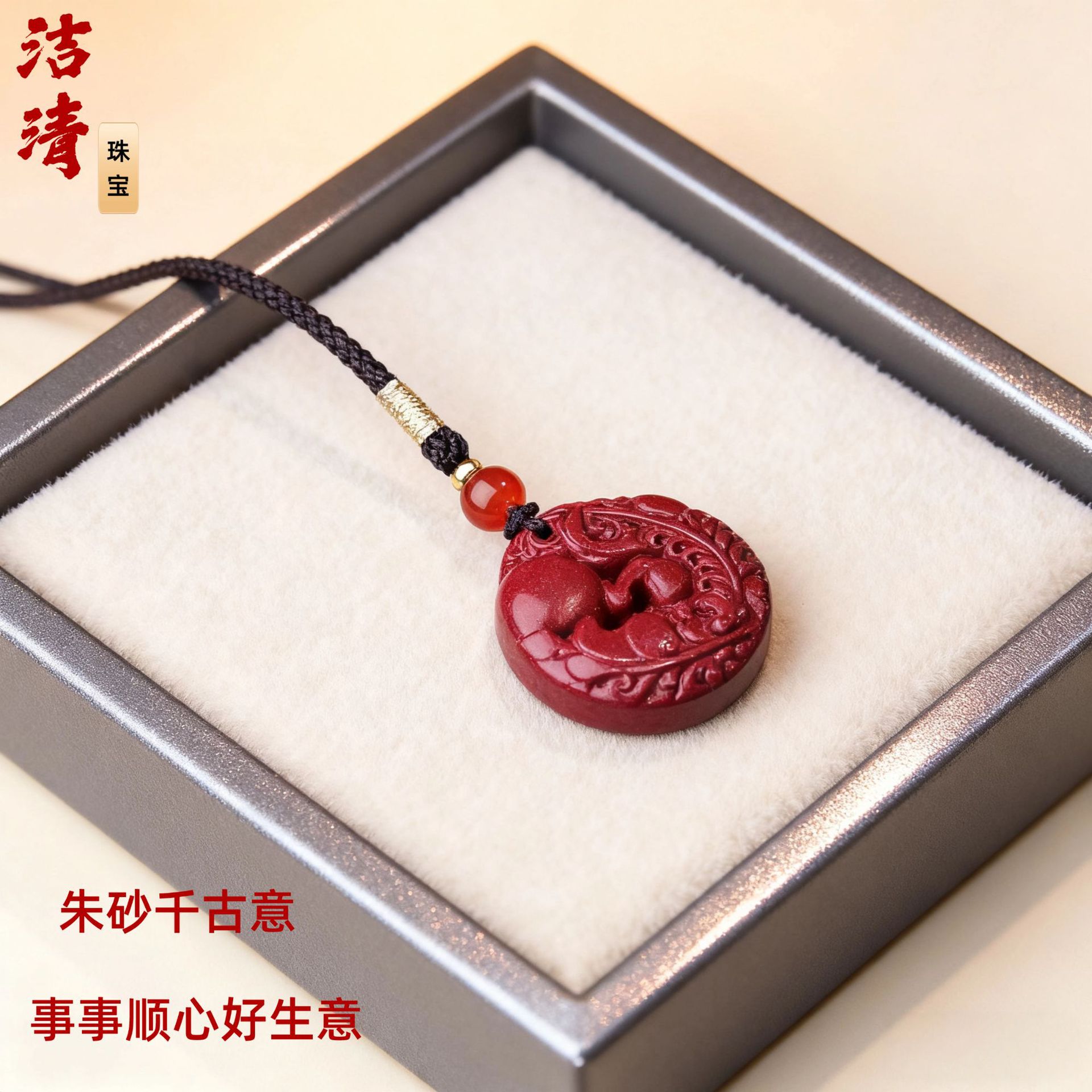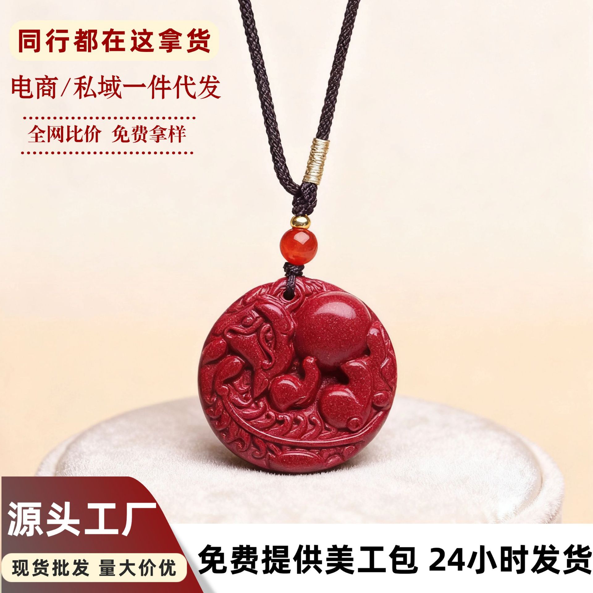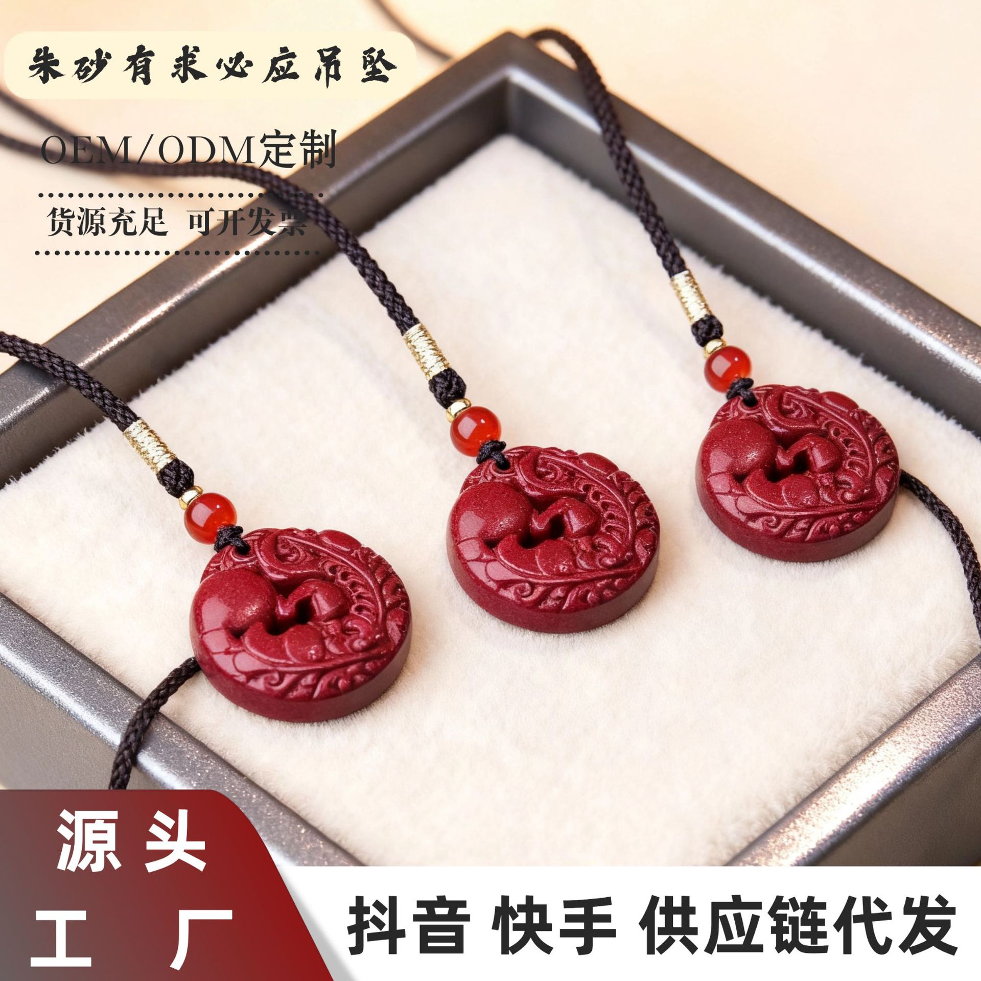 朱砂吊坠饰品貔貅平安扣朱砂吊坠本命年项链挂件工厂直销可代发