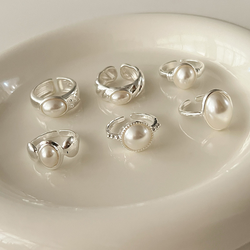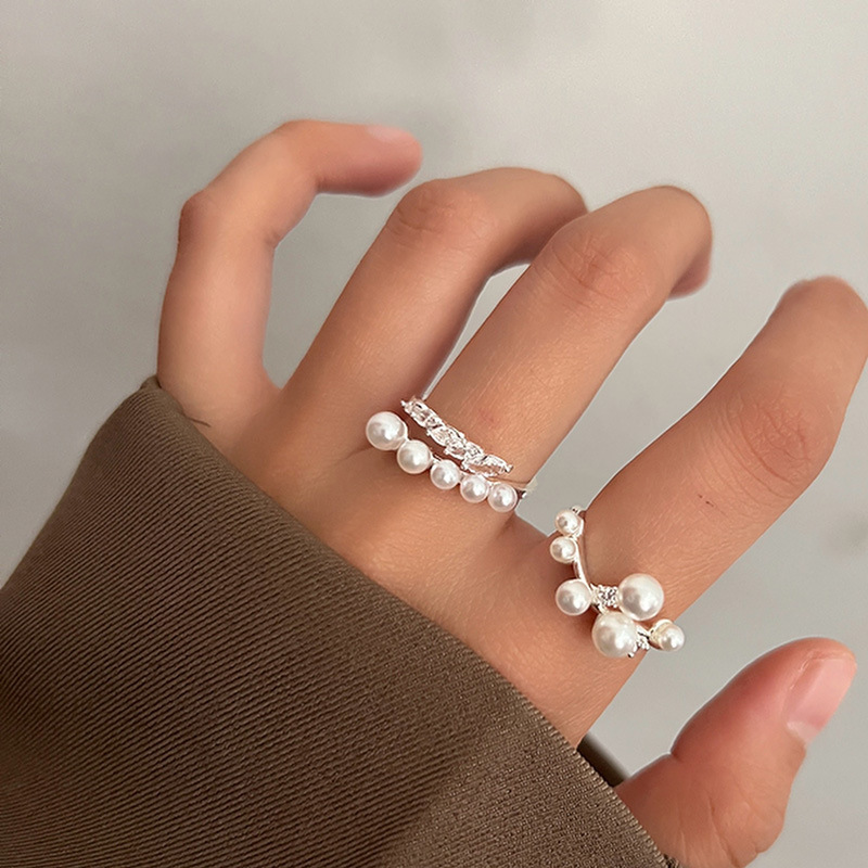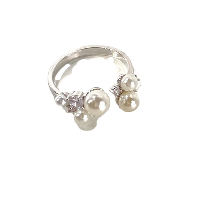 法式珍珠锆石开口戒指少女轻奢高级感食指戒ins小众设计个性指环