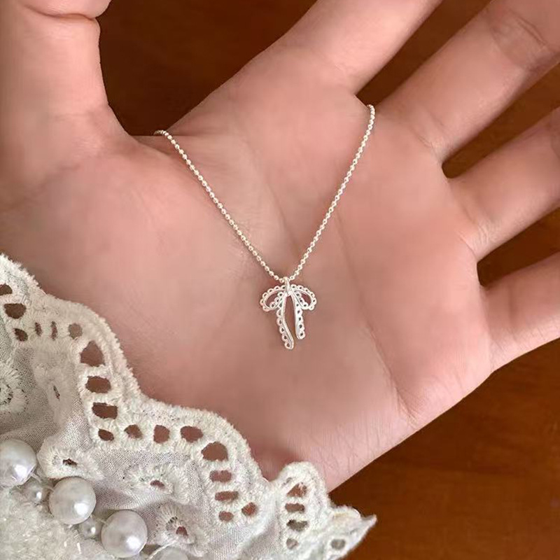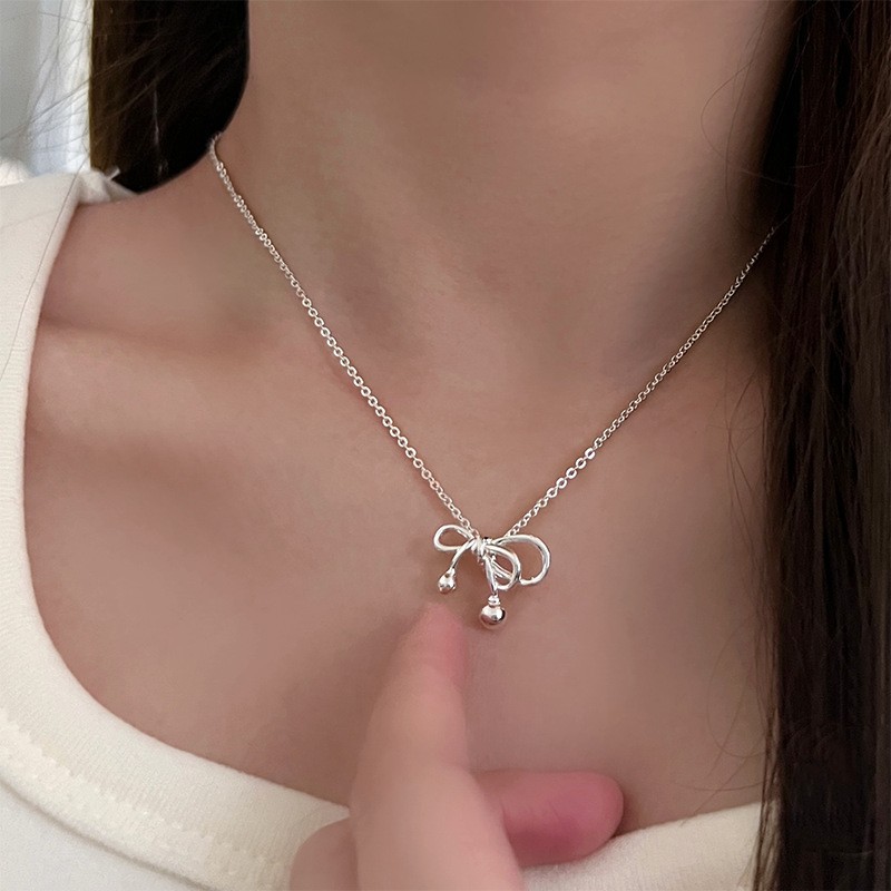 高级感轻奢蝴蝶结百搭项链女时尚经典S925镀银简约百搭锁骨链批发