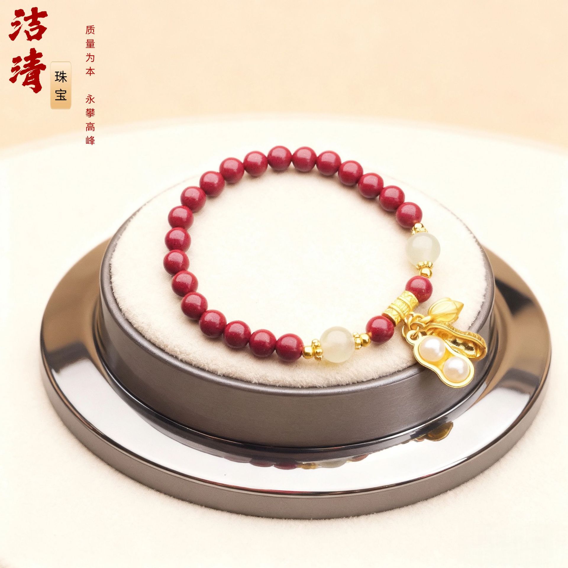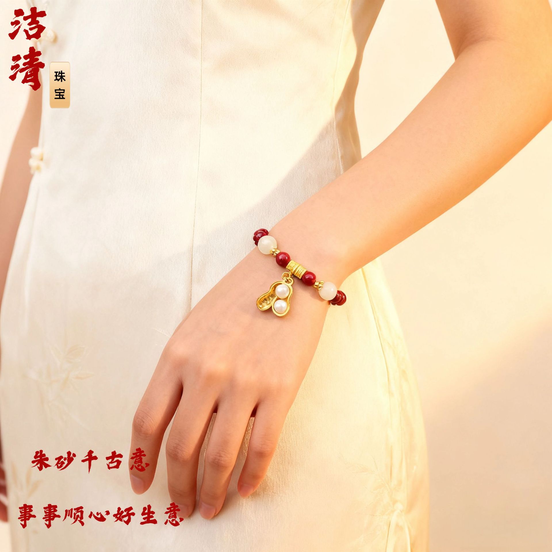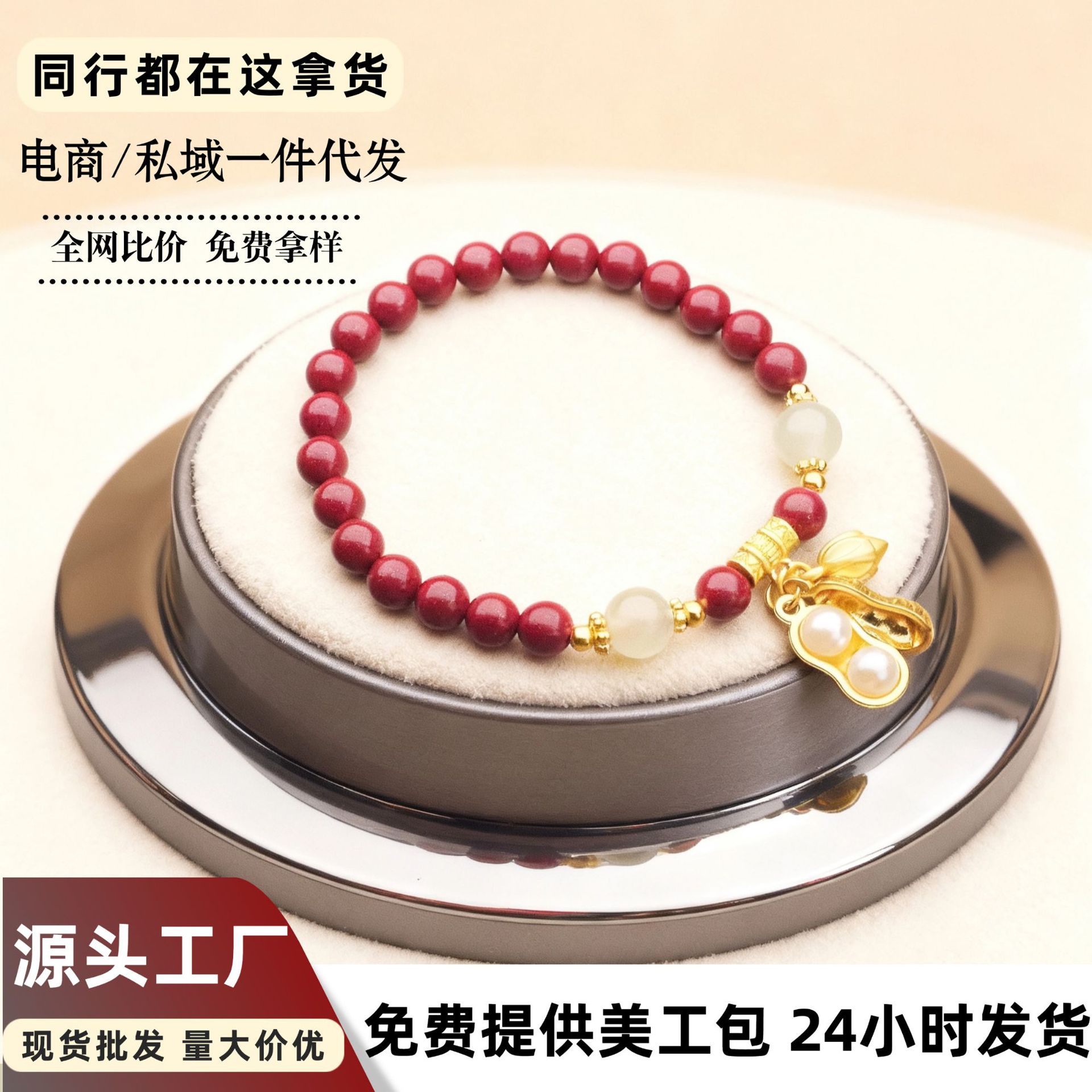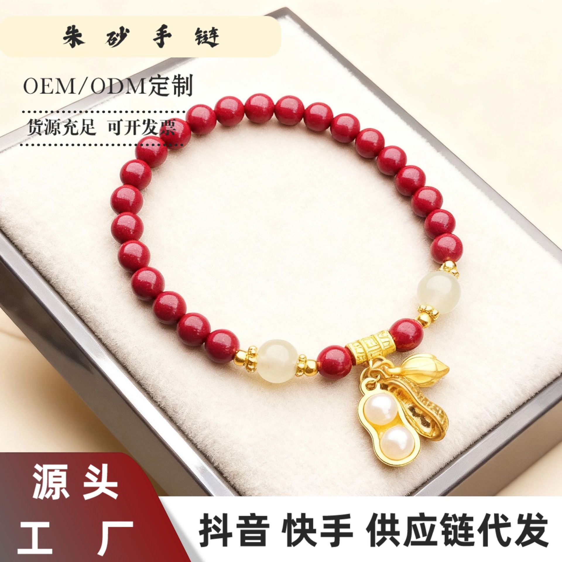 朱砂花生手串男女情侣款饰品民族风盘文玩轻奢朱砂手链可代发