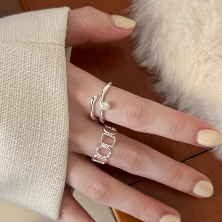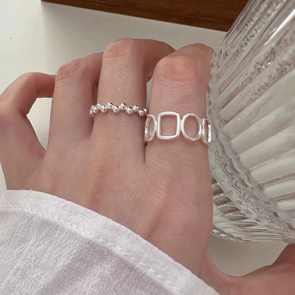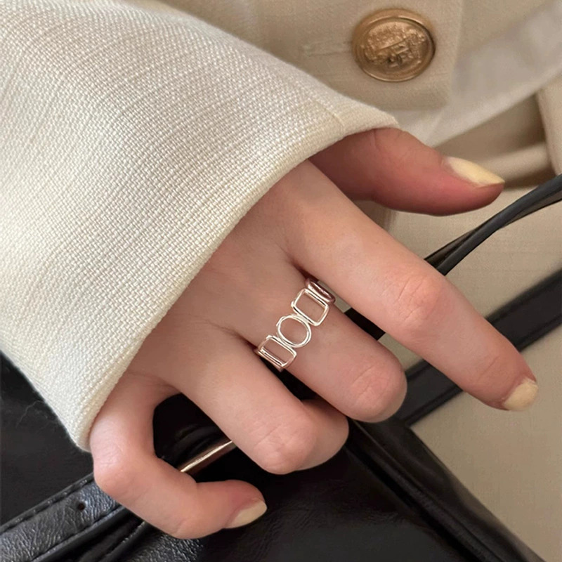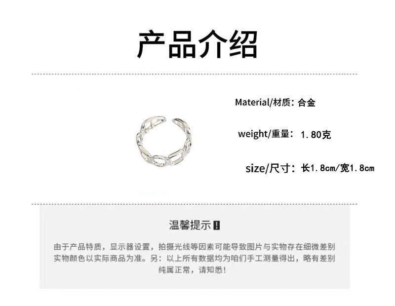韩版简约个性ins设计感圆形镂空戒指女宽面链条几何指环饰品