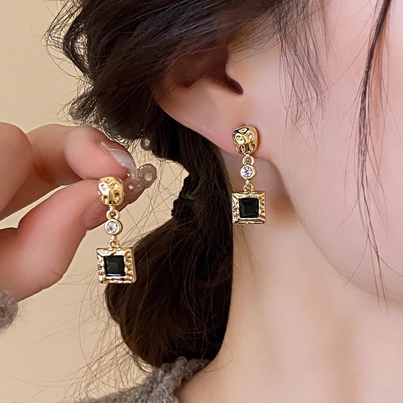 黑色港风耳环~甜酷ins小众设计感2024年新款爆款复古耳钉潮耳饰品