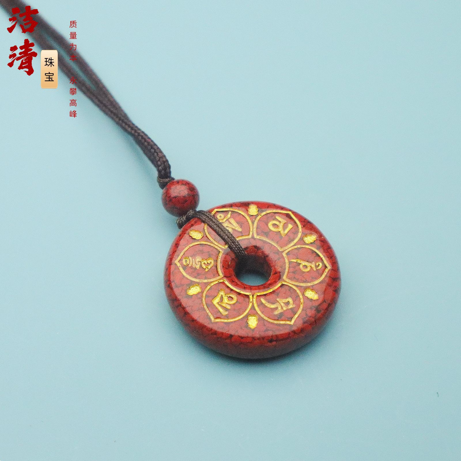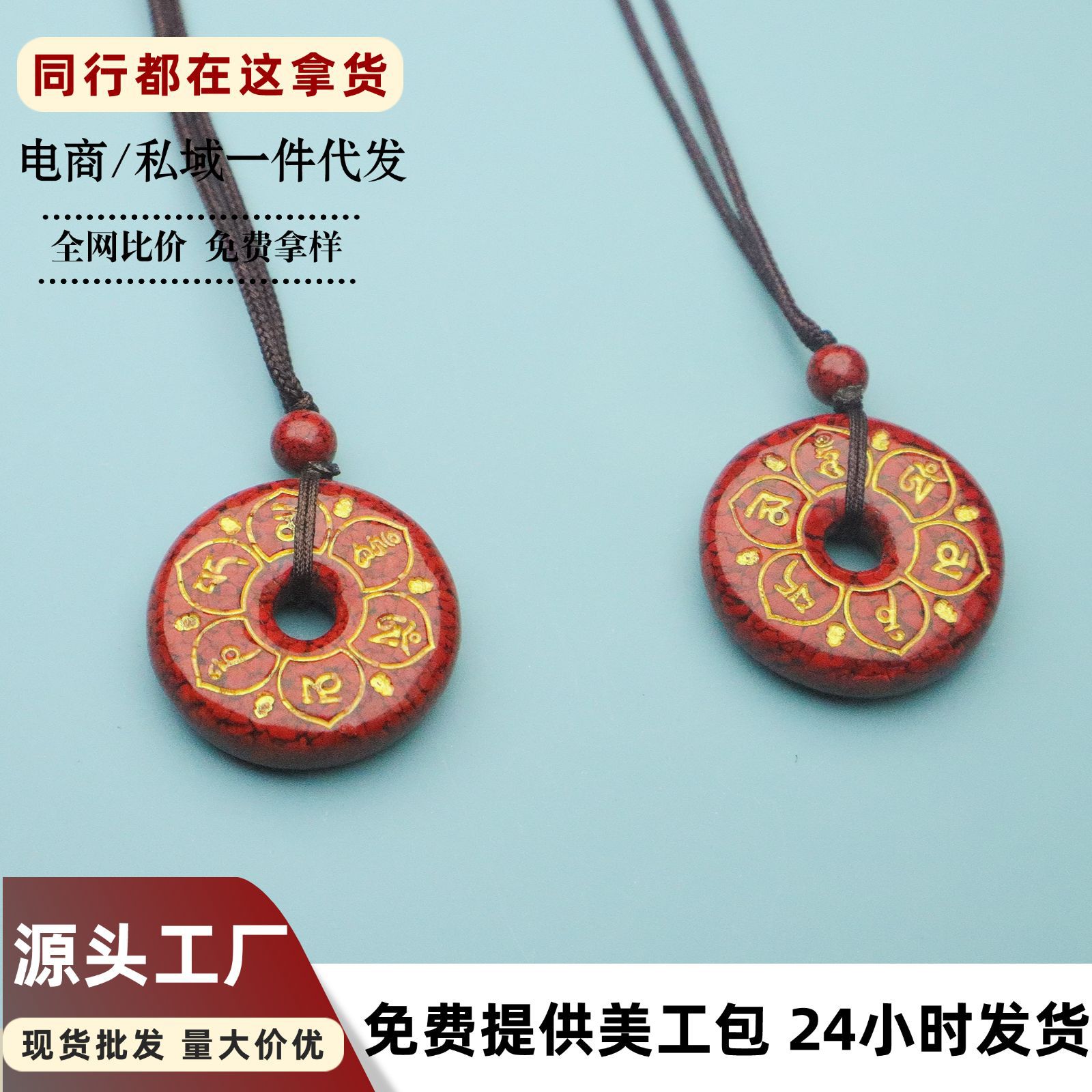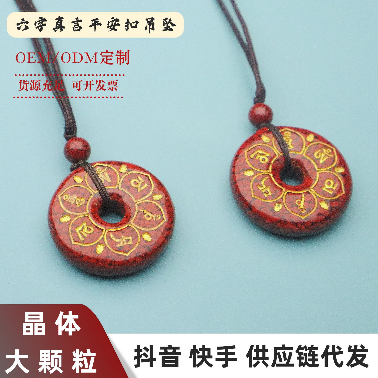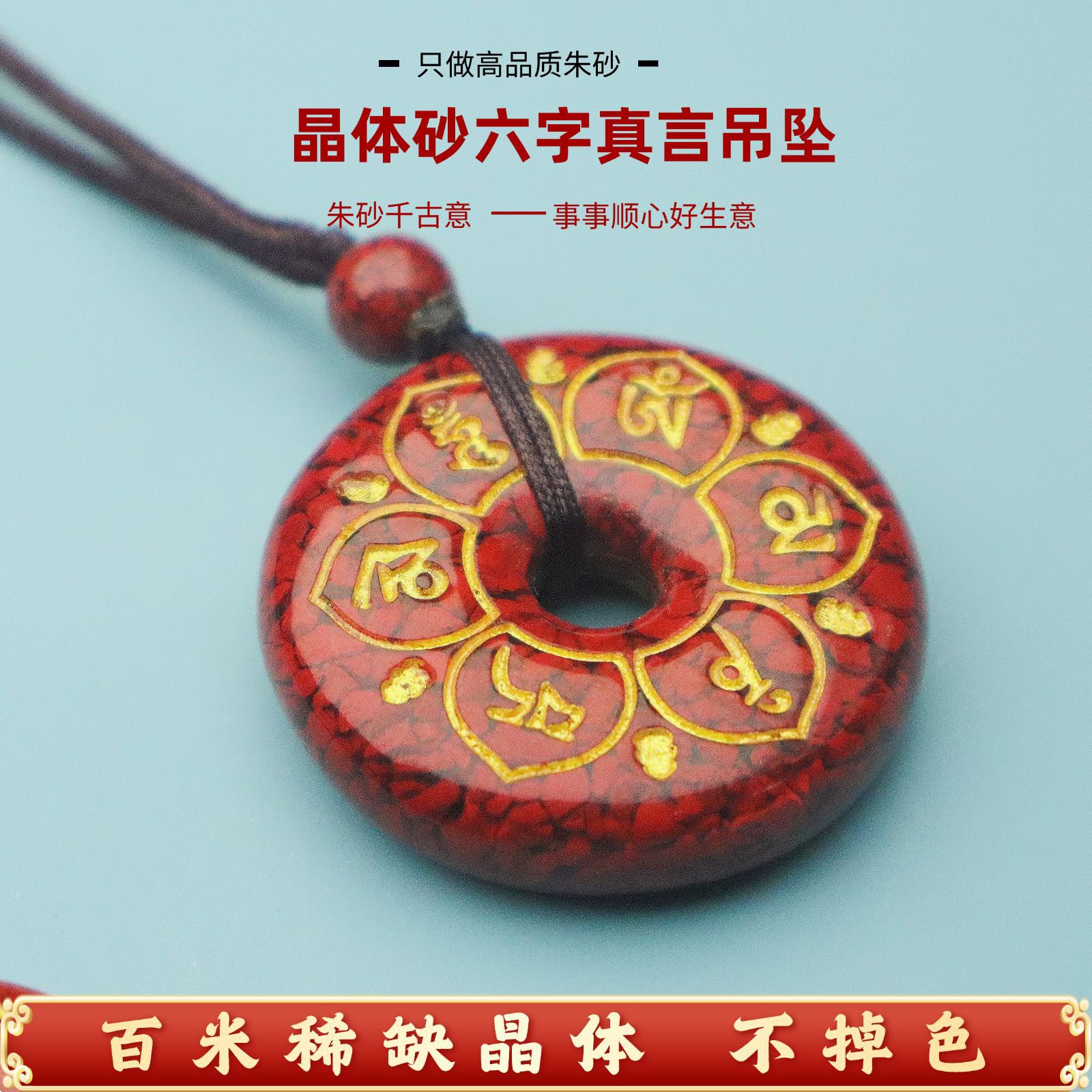 朱砂吊坠晶体六字箴言项链女中古饰品高级感小众设计道系饰品批发