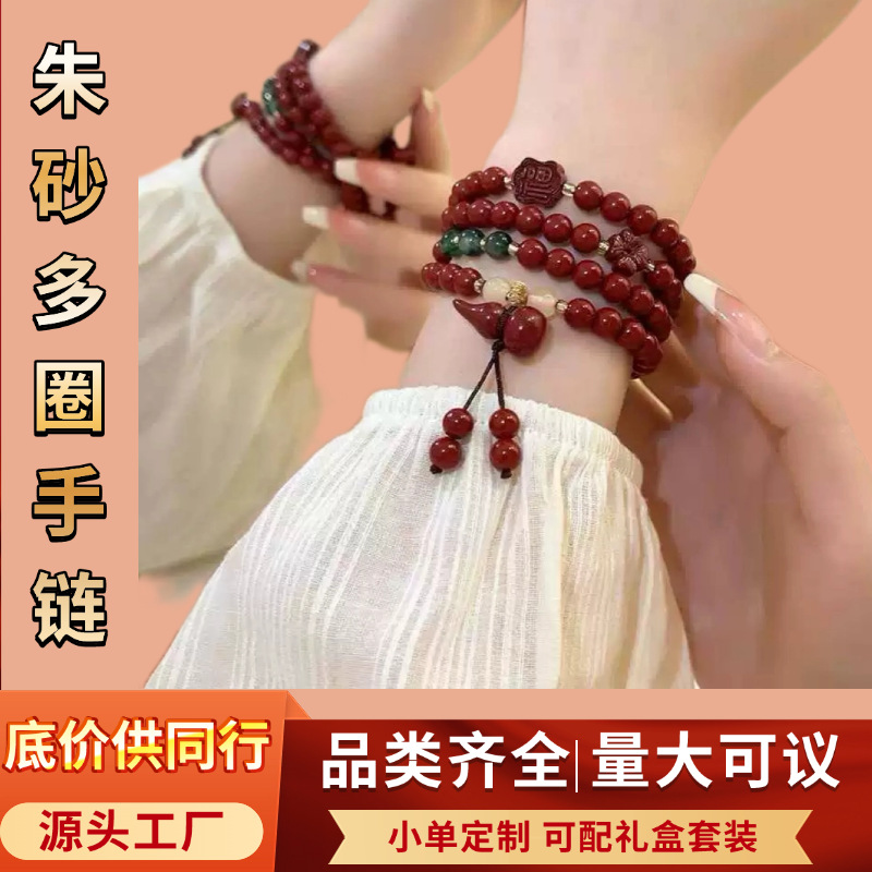 朱砂手链定制含量创意小礼品加工抖音快手葫芦单圈多圈朱砂手串