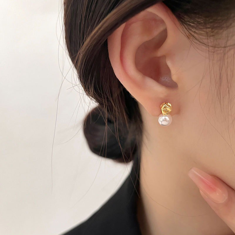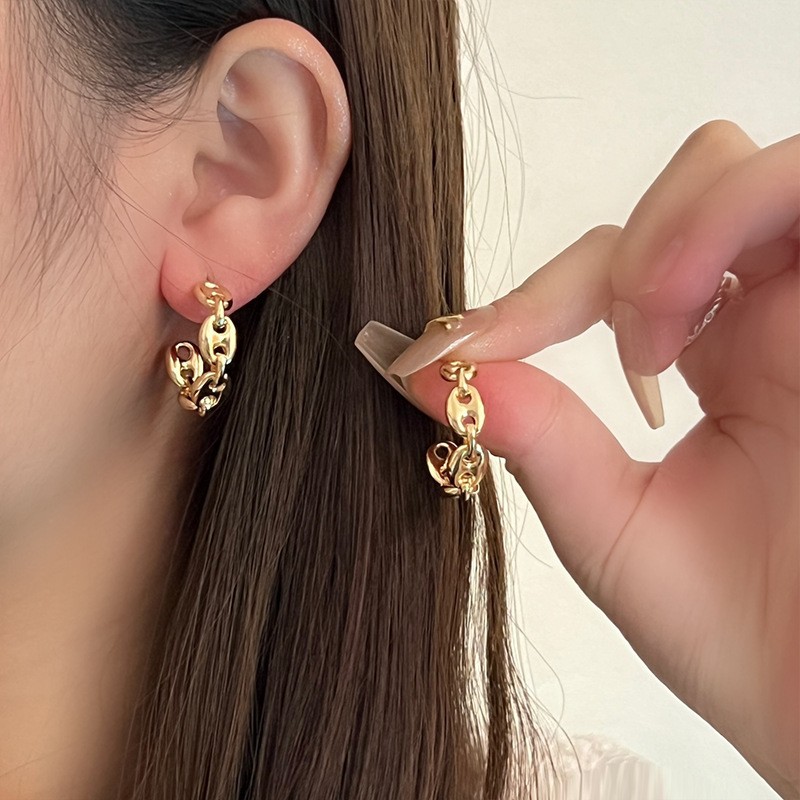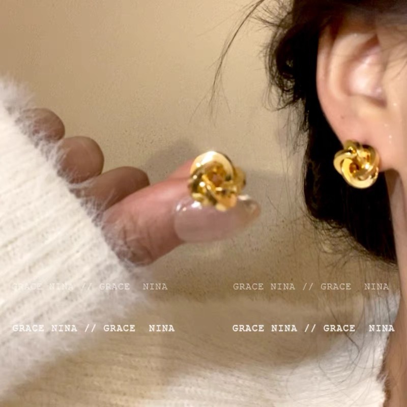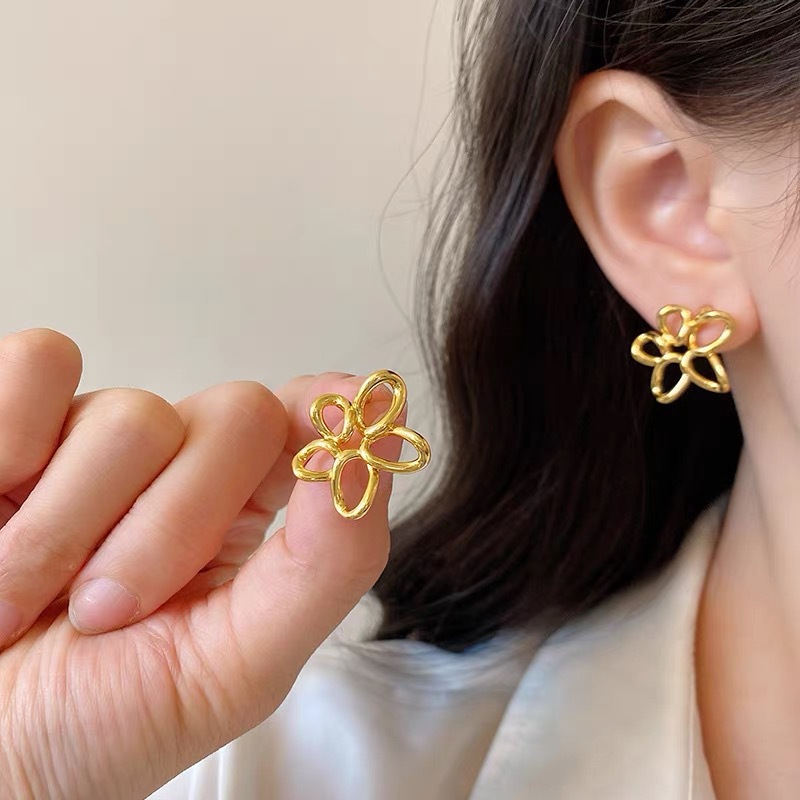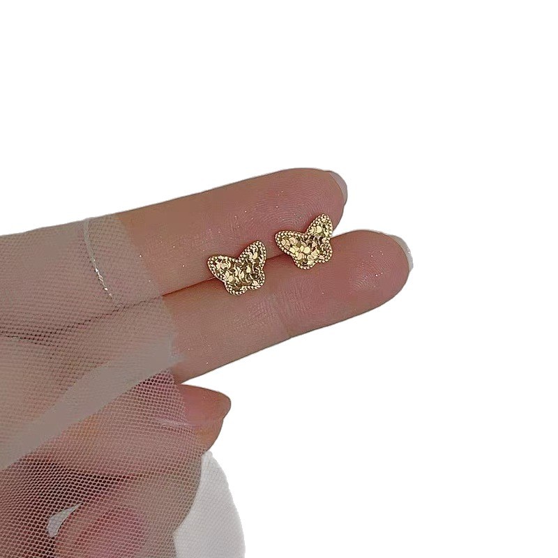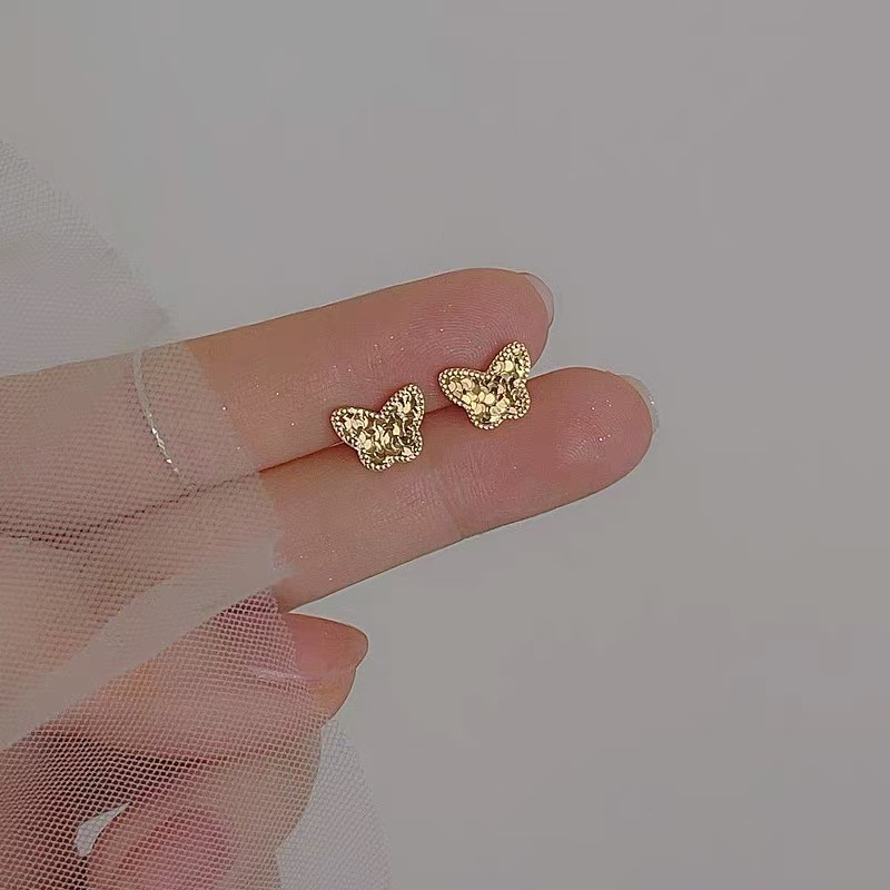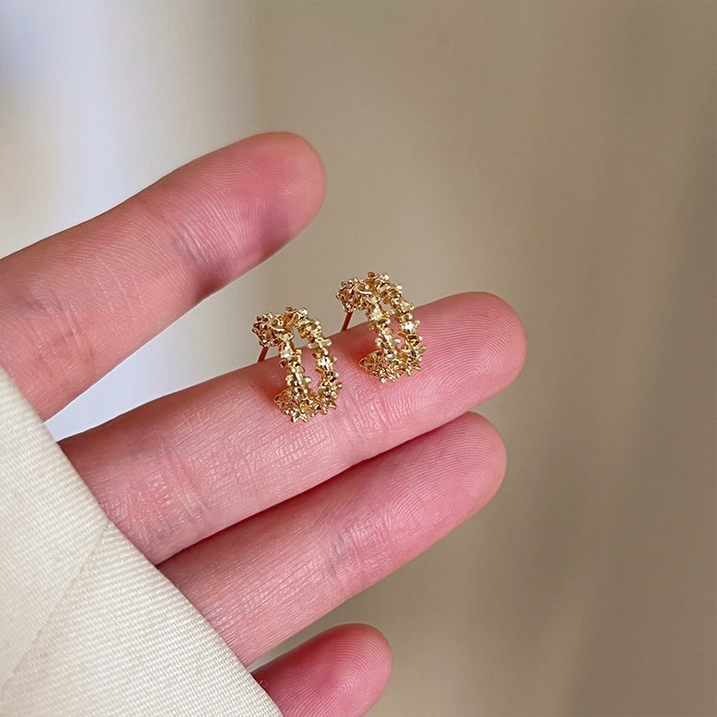仿黄金耳钉女久不掉色韩式清新小众高级感合金沙金耳环耳饰批发