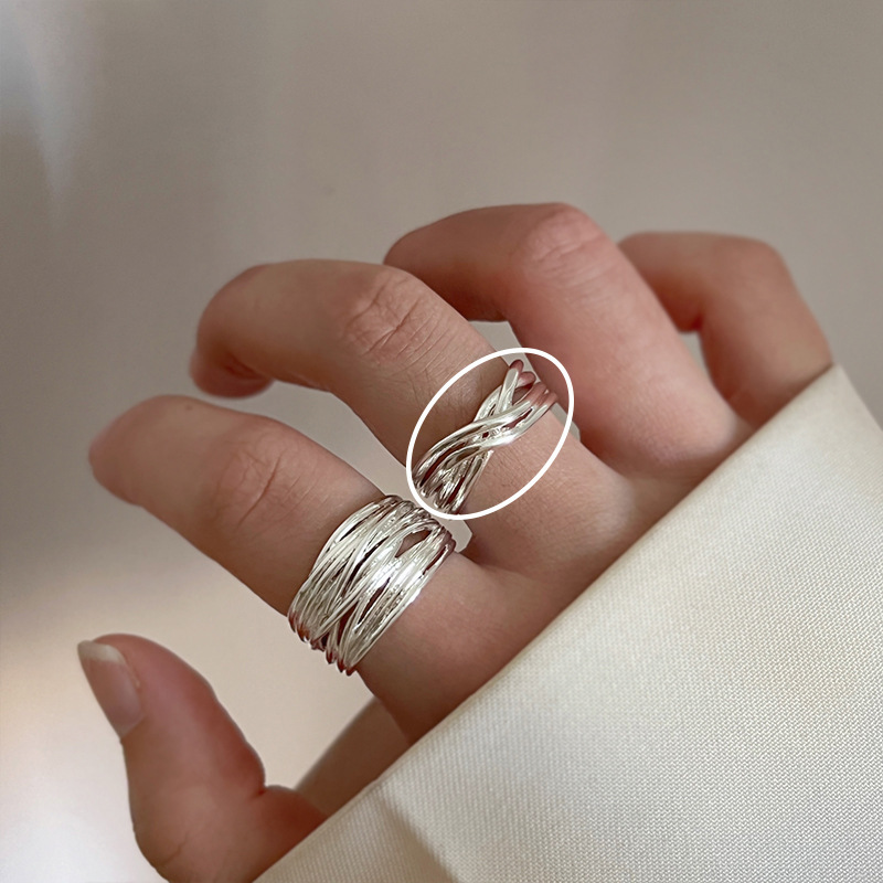 银色素圈戒指女秋冬轻奢小众设计高级感冷淡风情侣韩系装饰食指戒