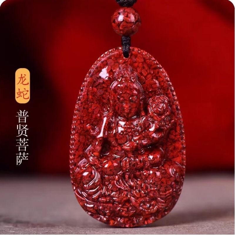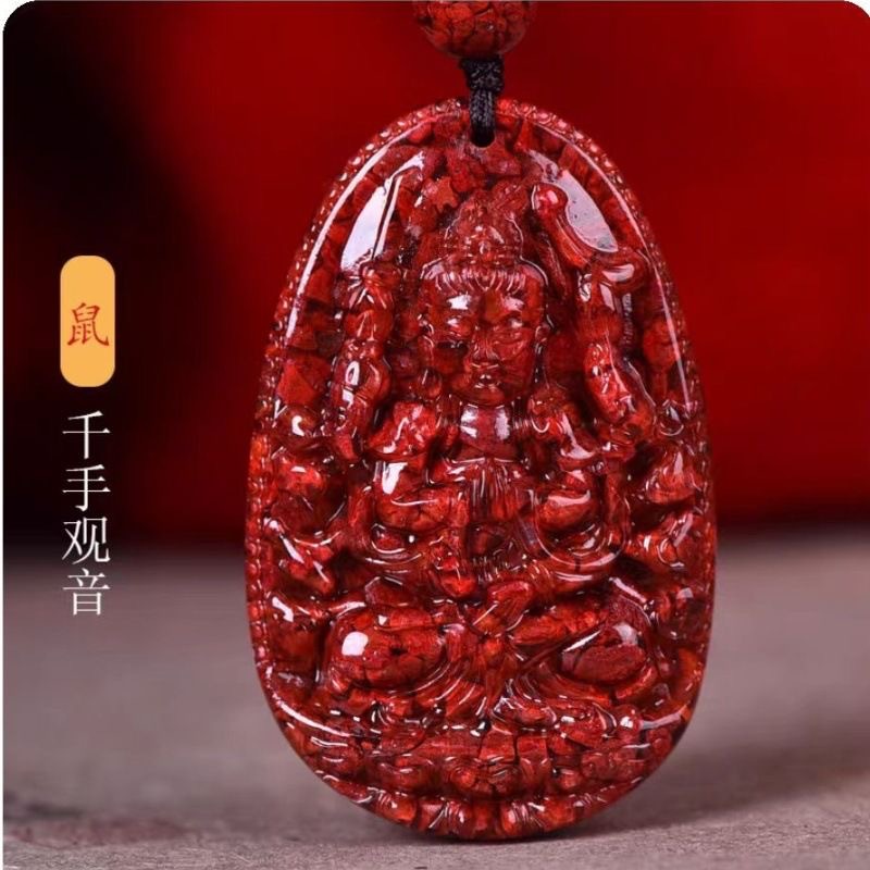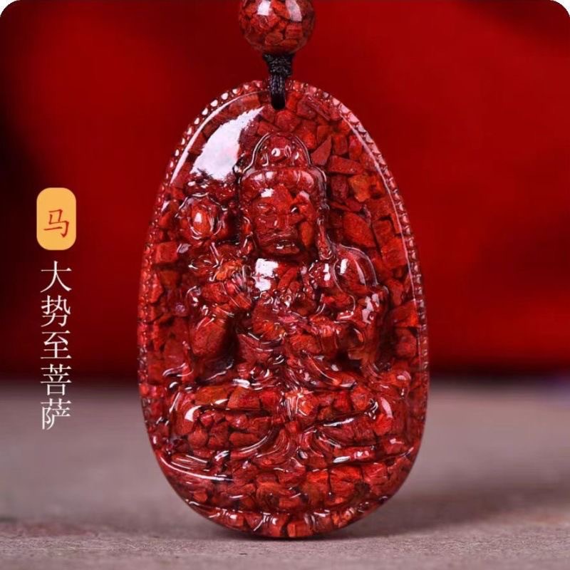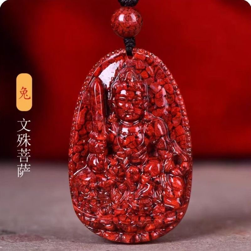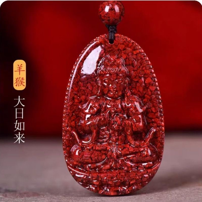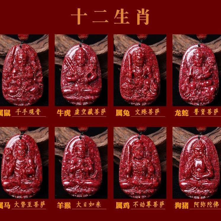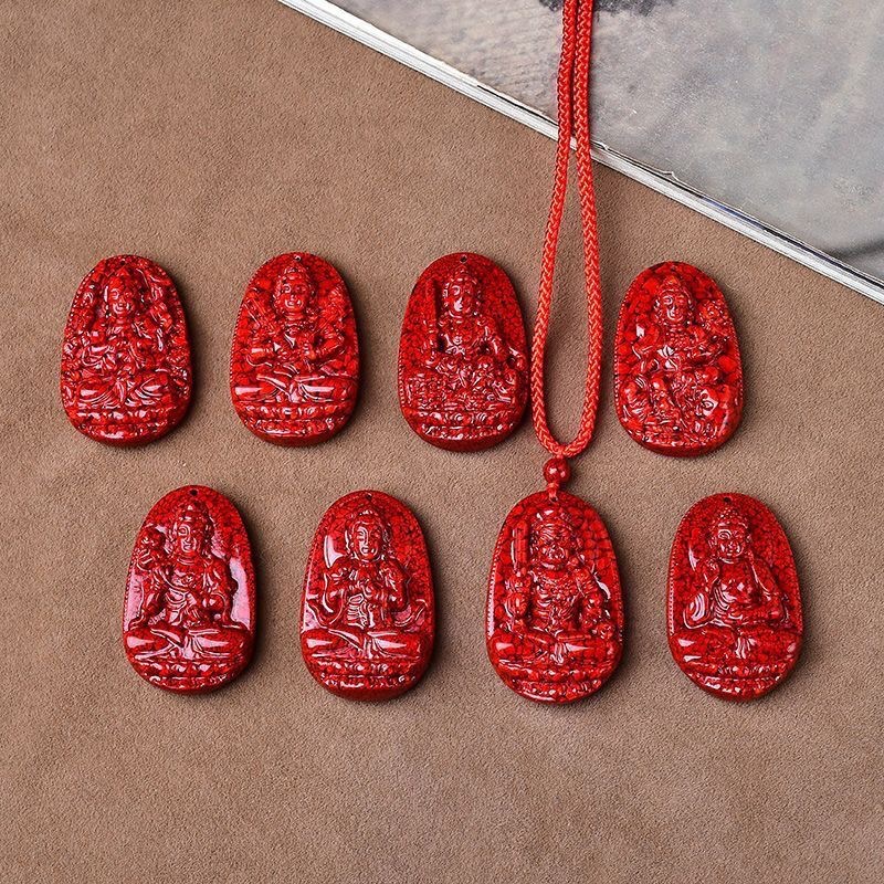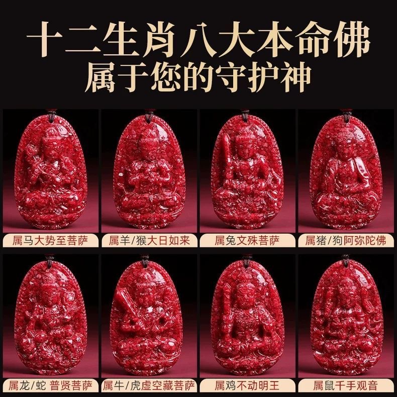 真朱砂守护神吊坠晶体砂本命佛挂件蛇年朱砂十二生肖项链朱砂吊坠