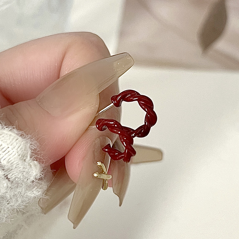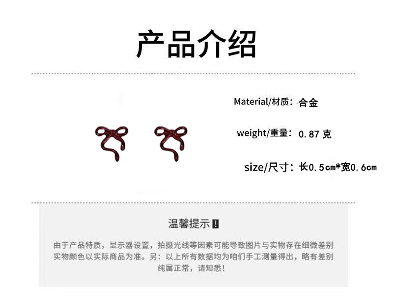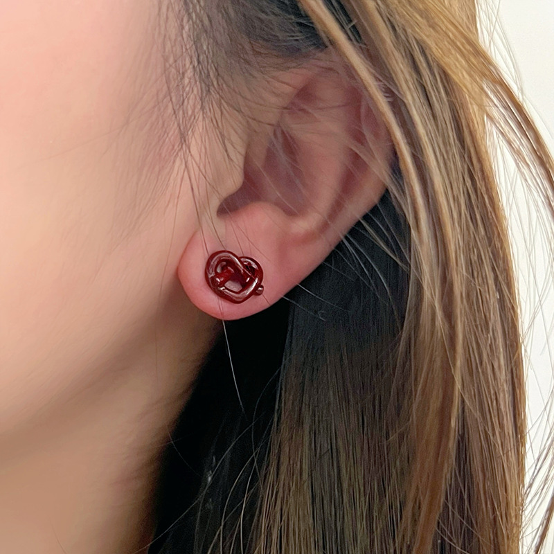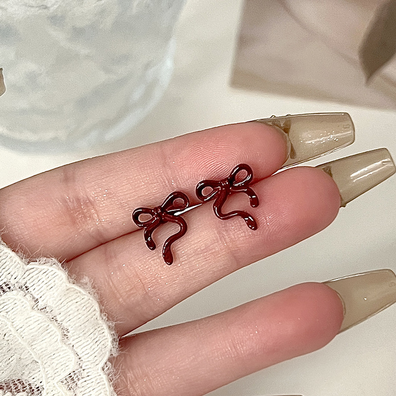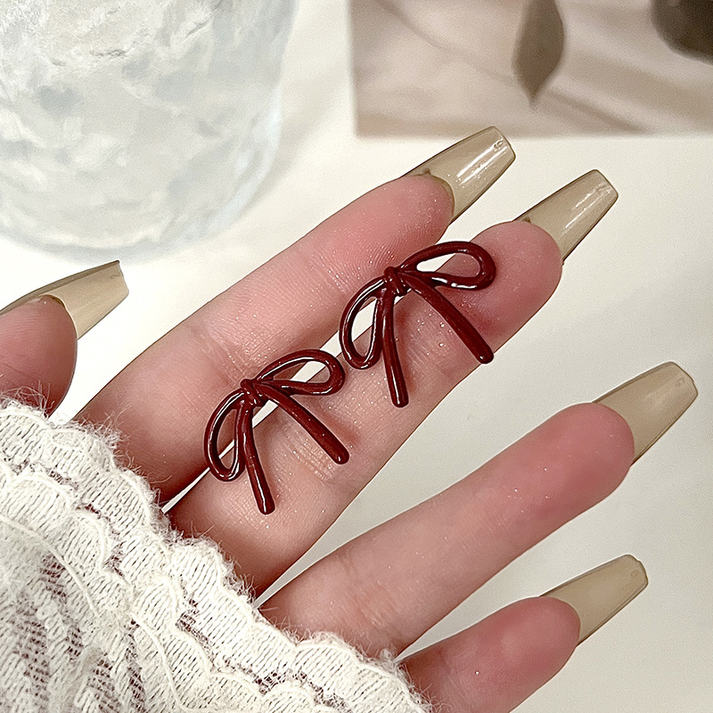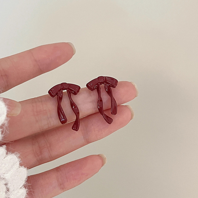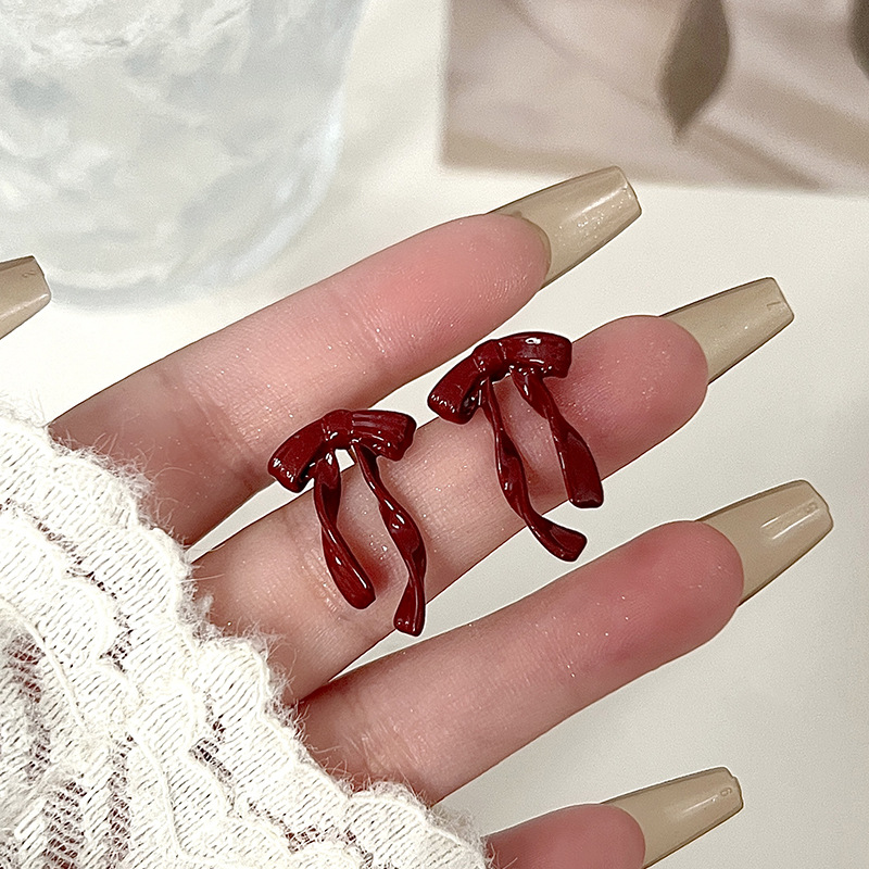 红色蝴蝶结耳钉~安可拉红复古耳环2024秋冬新款高级感气质耳饰潮