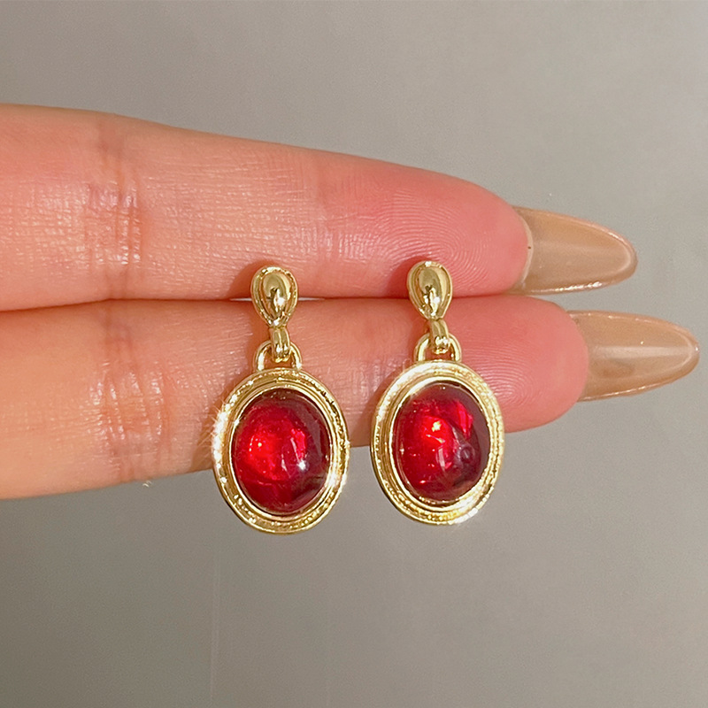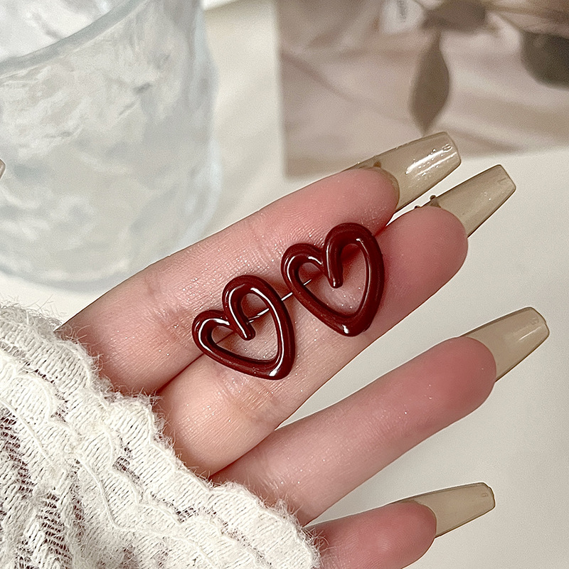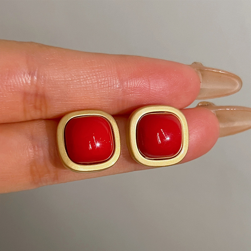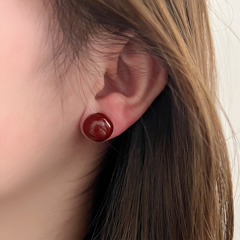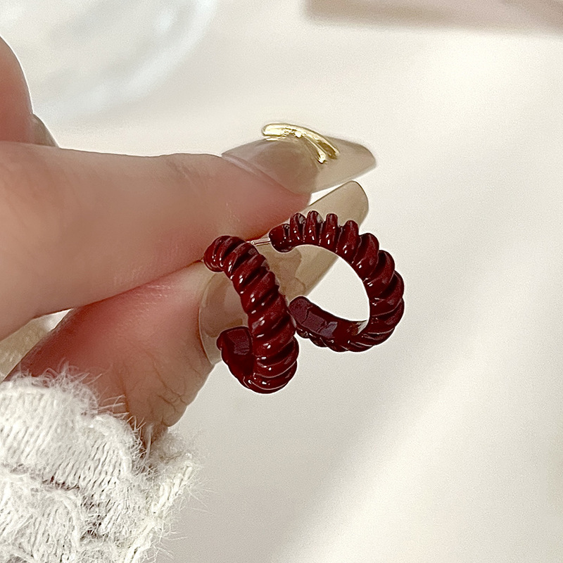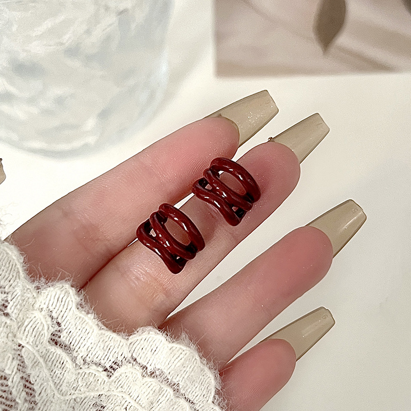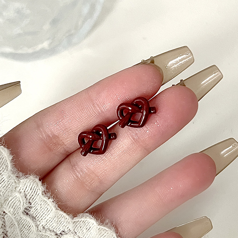 红色蝴蝶结耳钉~安可拉红复古耳环2024秋冬新款高级感气质耳饰潮