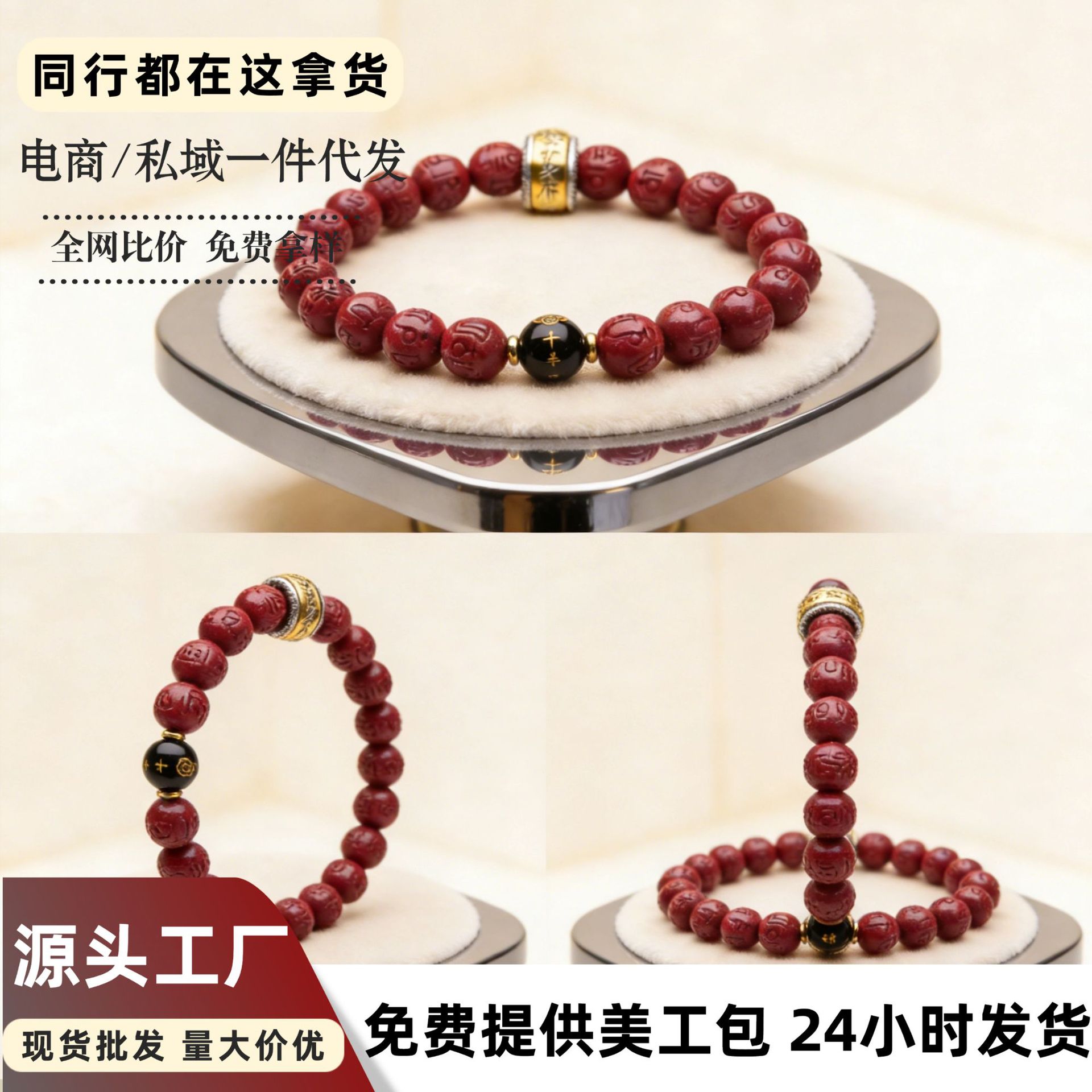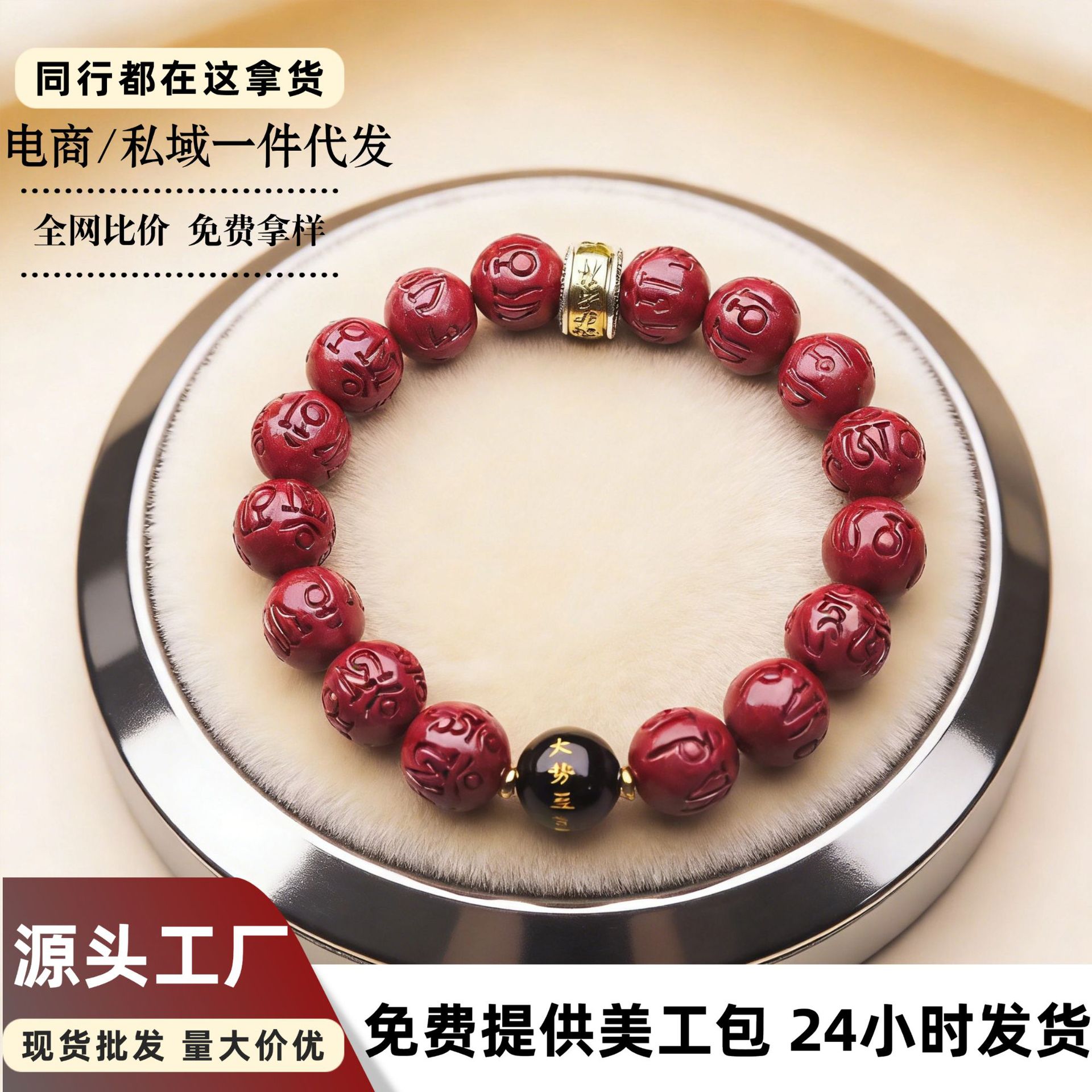 原矿朱砂手串真货散批轻奢高级感女士精致小饰品朱砂六字箴言手链