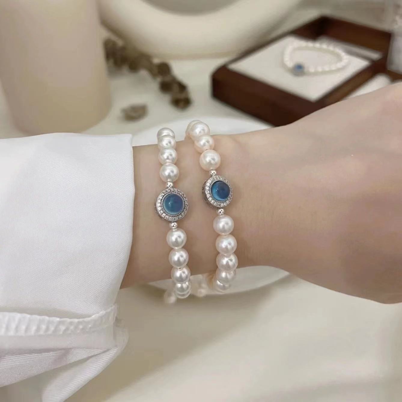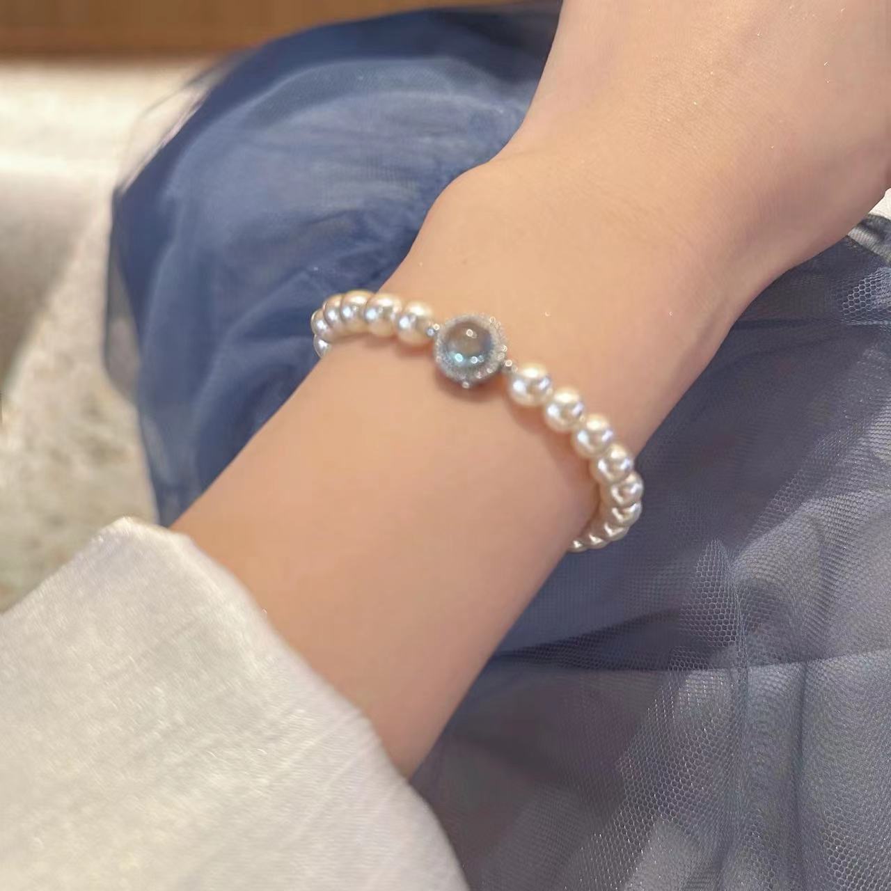 珍珠海宝蓝手链女2024新款小众设计精致串珠轻奢高级气质闺蜜手饰