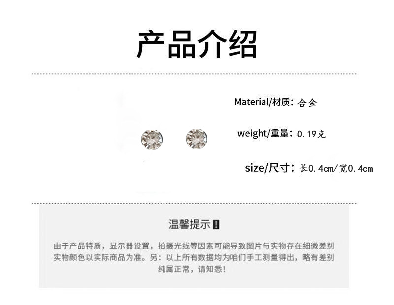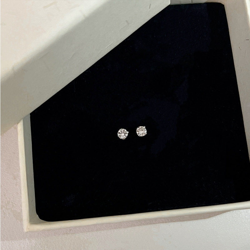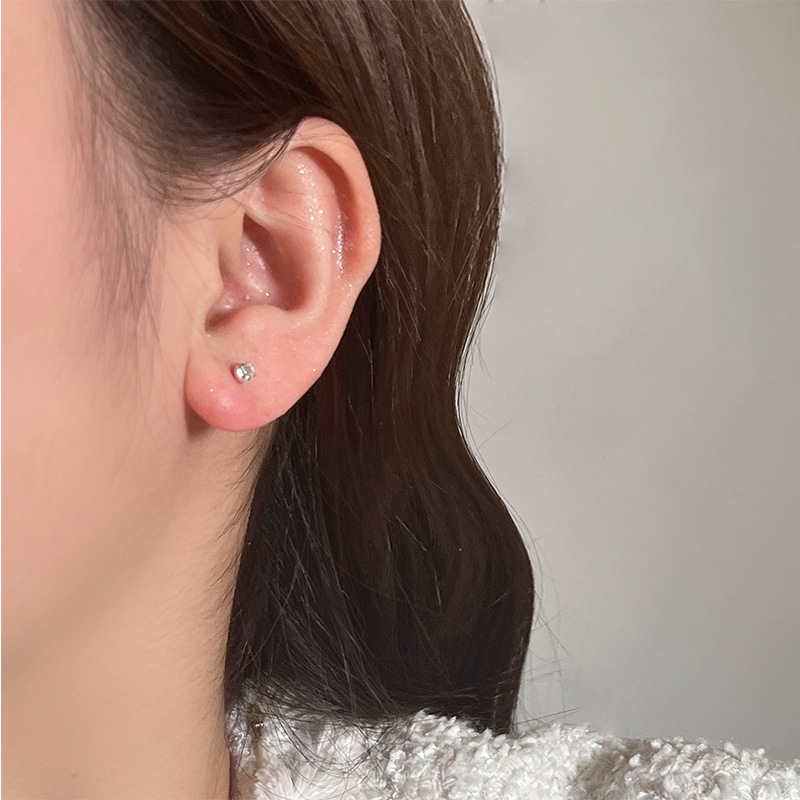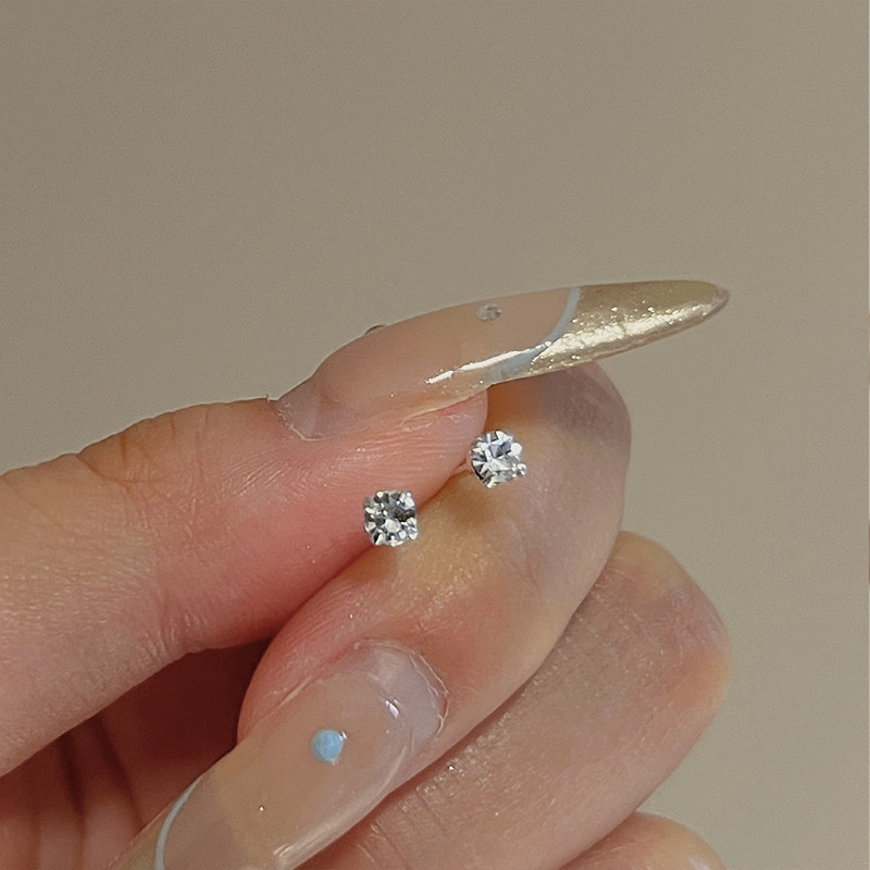 S925银百搭锆石耳钉简约小巧冷淡风精致耳骨钉日常通勤耳饰高级感