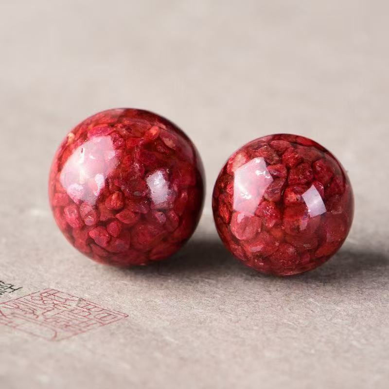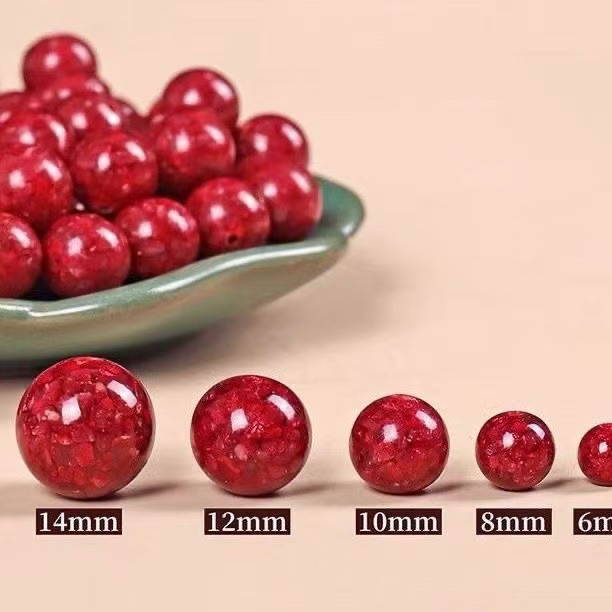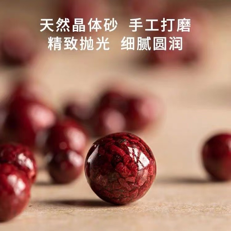 天然原矿朱砂散珠子晶体砂砂单珠半成品圆珠红色手链手串原创饰品
