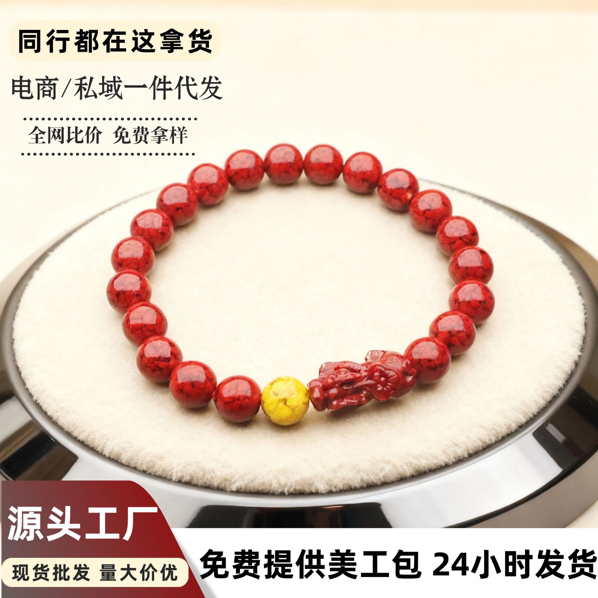 朱砂手链串珠女颗粒砂手串轻奢高级感批发小饰品朱砂手串可代发