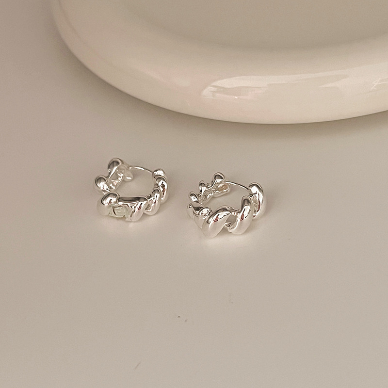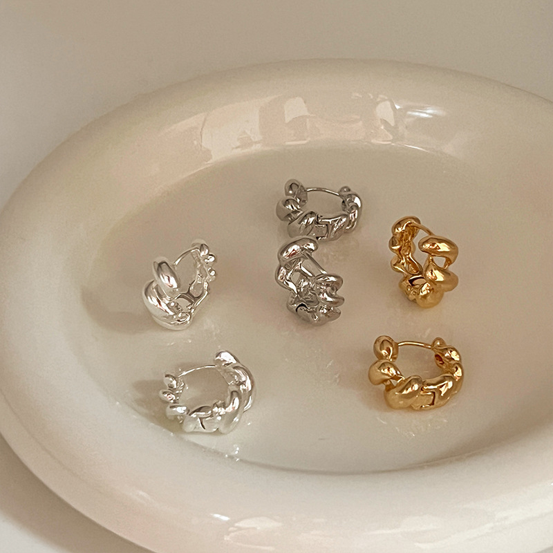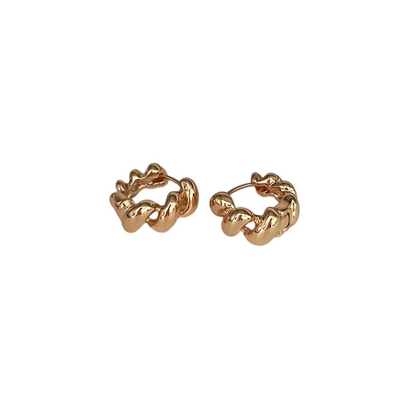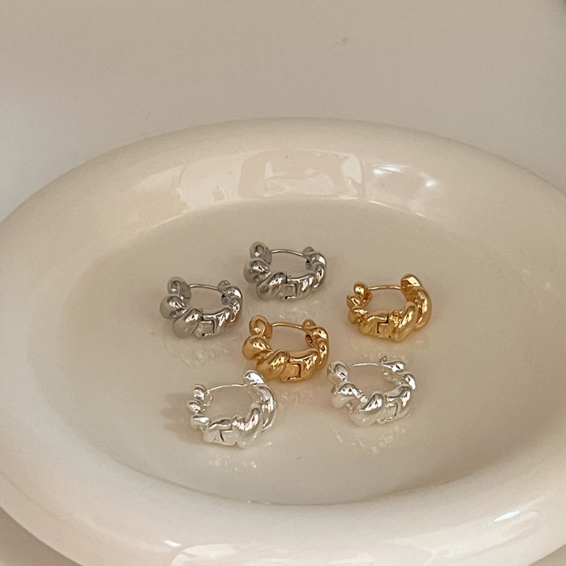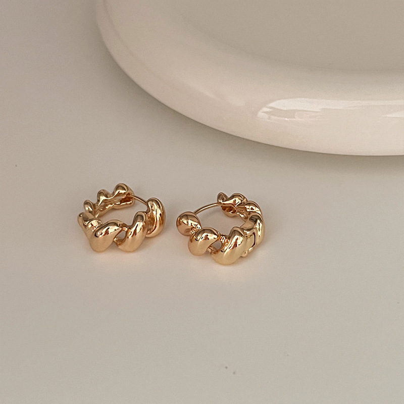 高级轻奢金属麻花耳环小众设计感牛角包耳圈耳扣新款独特耳钉耳饰
