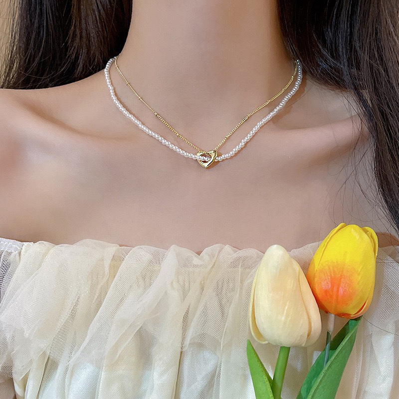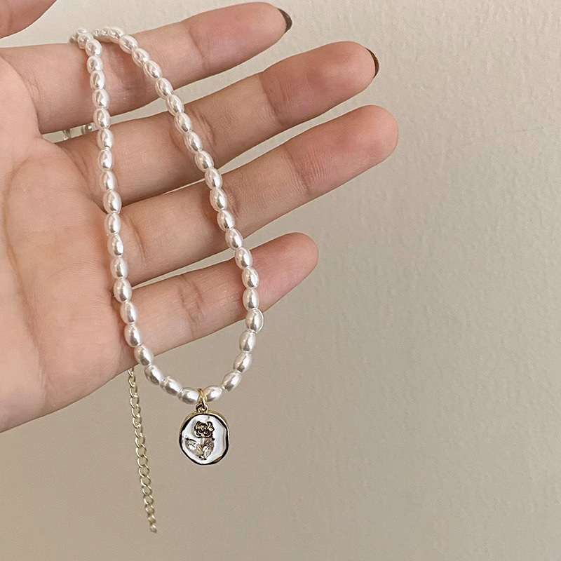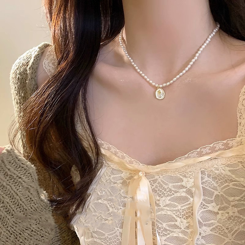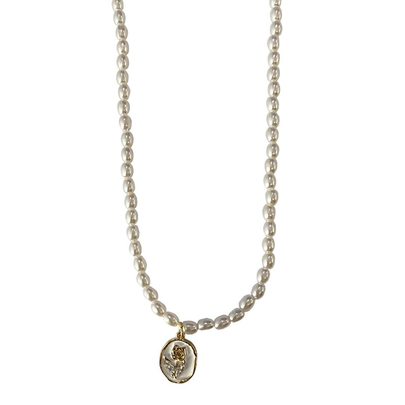 法式复古玫瑰花牌吊坠珍珠项链女轻奢小众设计感高级锁骨链配饰品