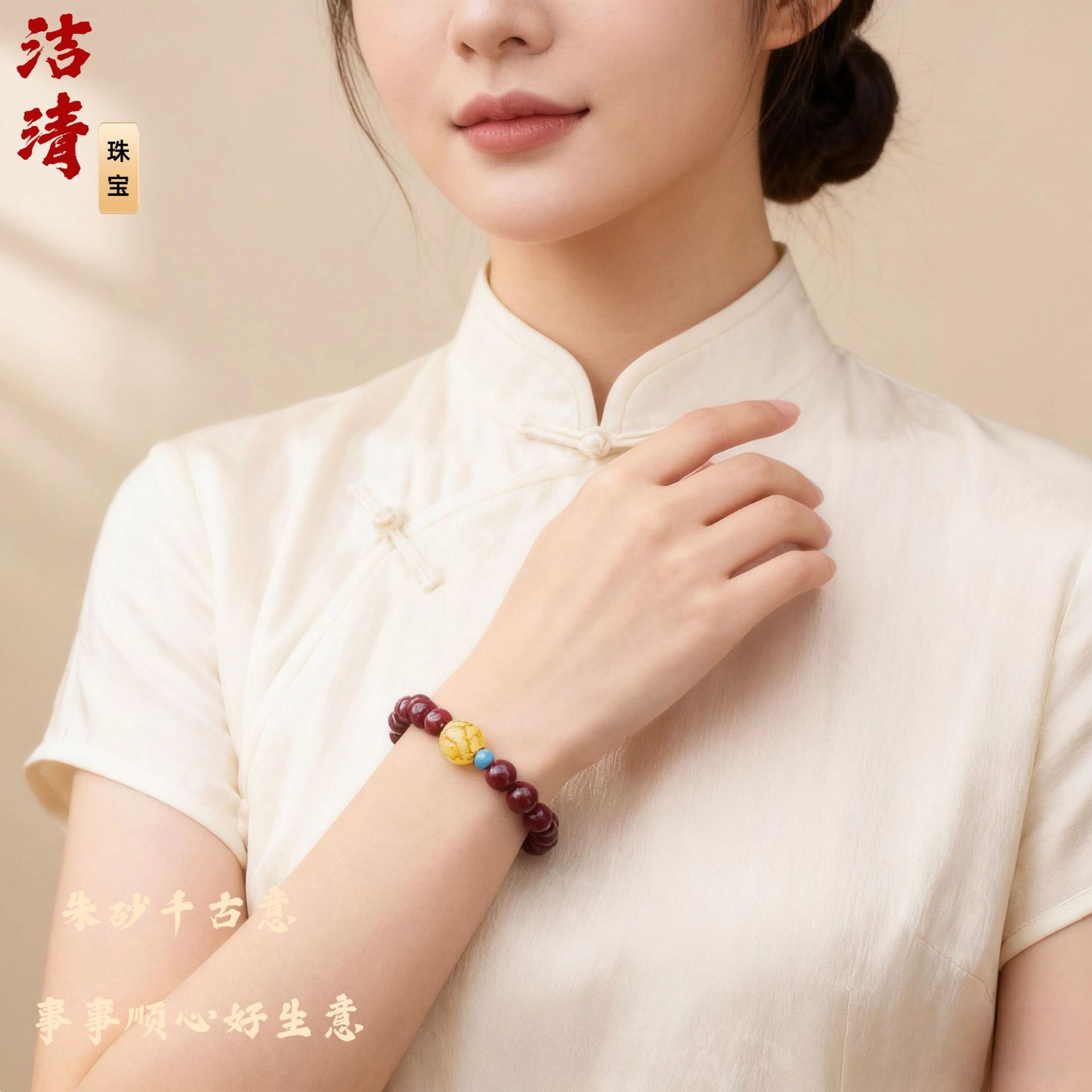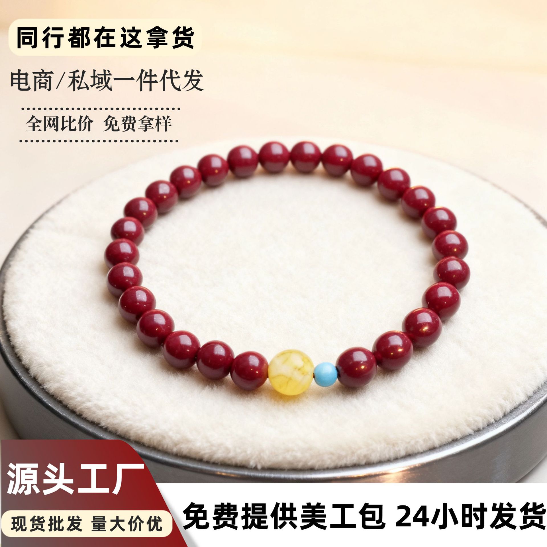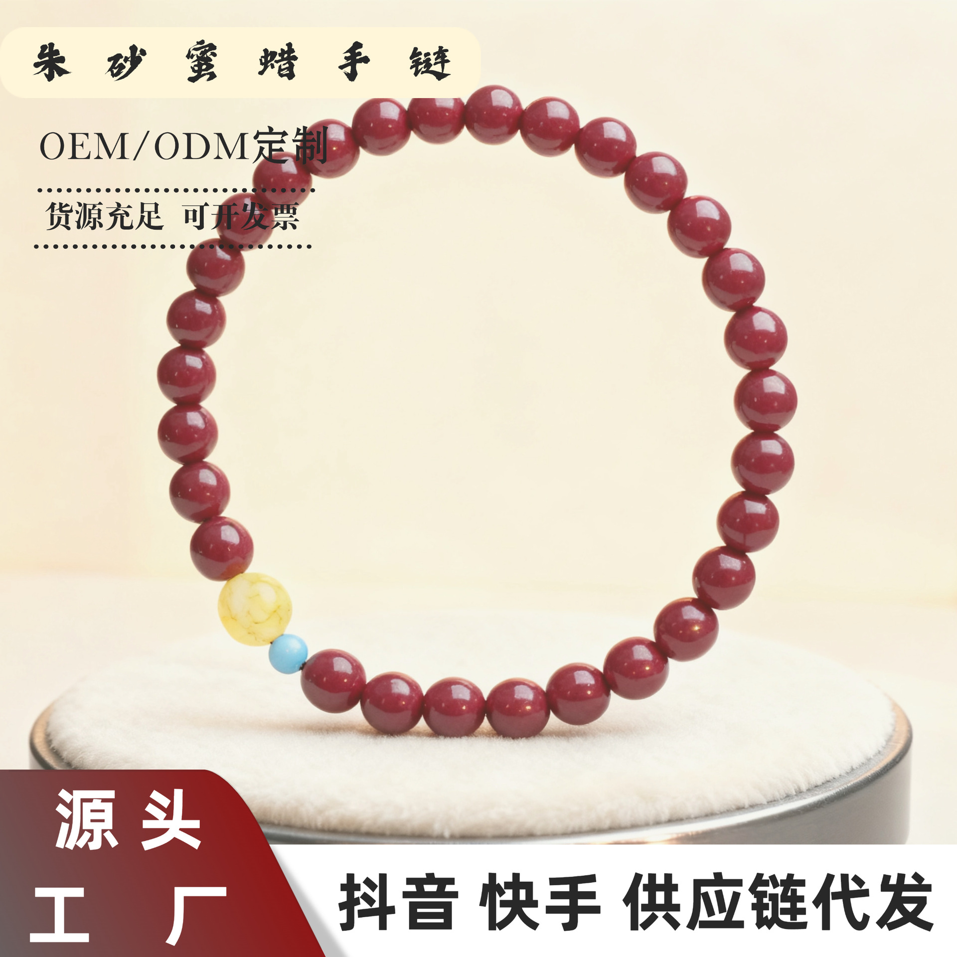 朱砂手串女松石蜜蜡原矿紫金砂手串男饰礼物朱砂手链女可代发