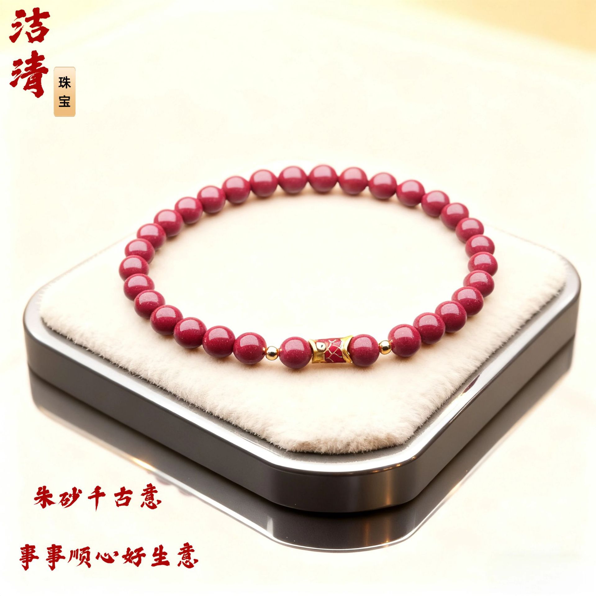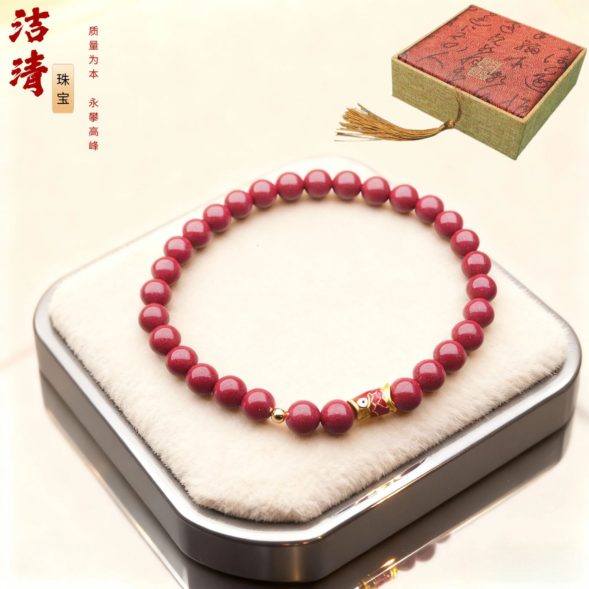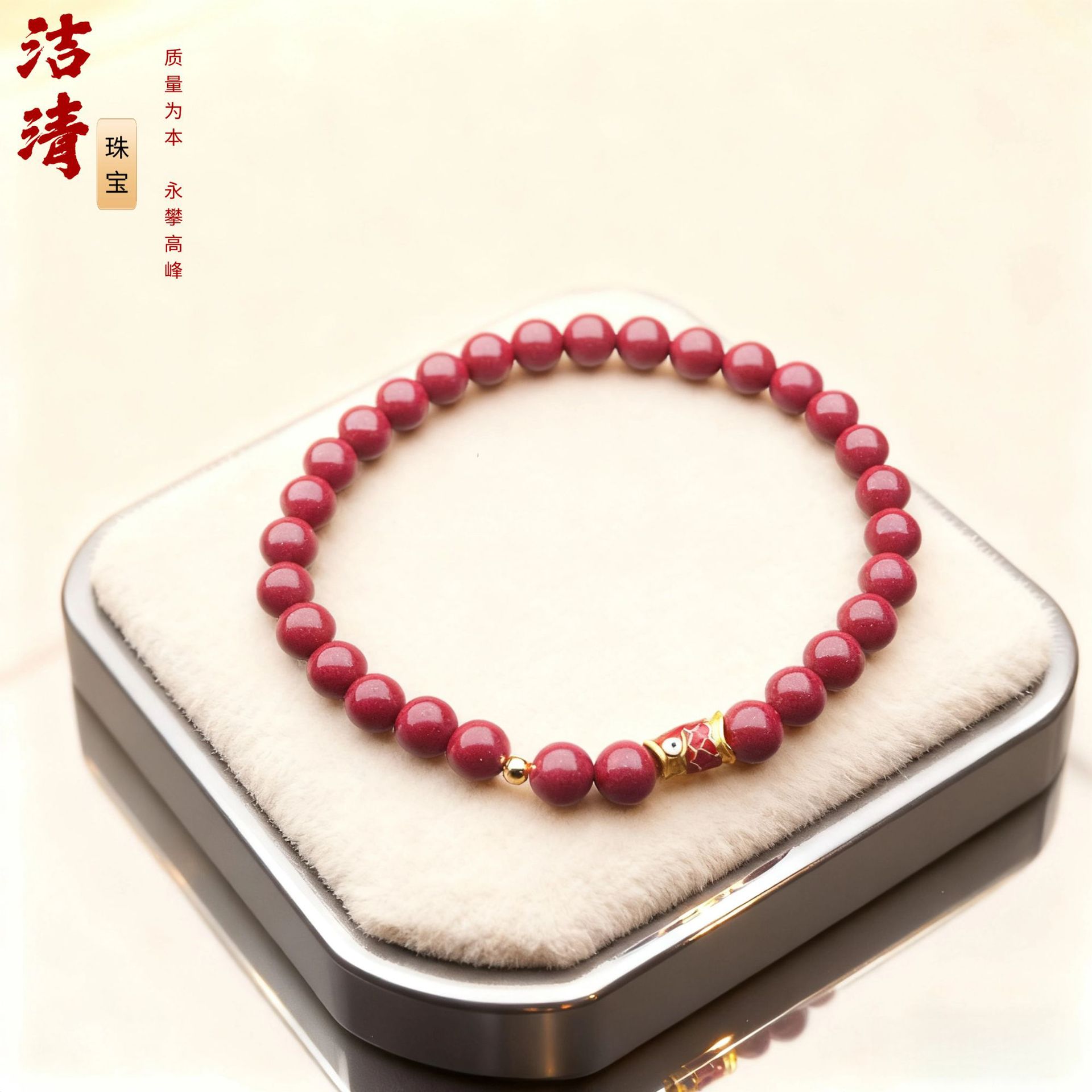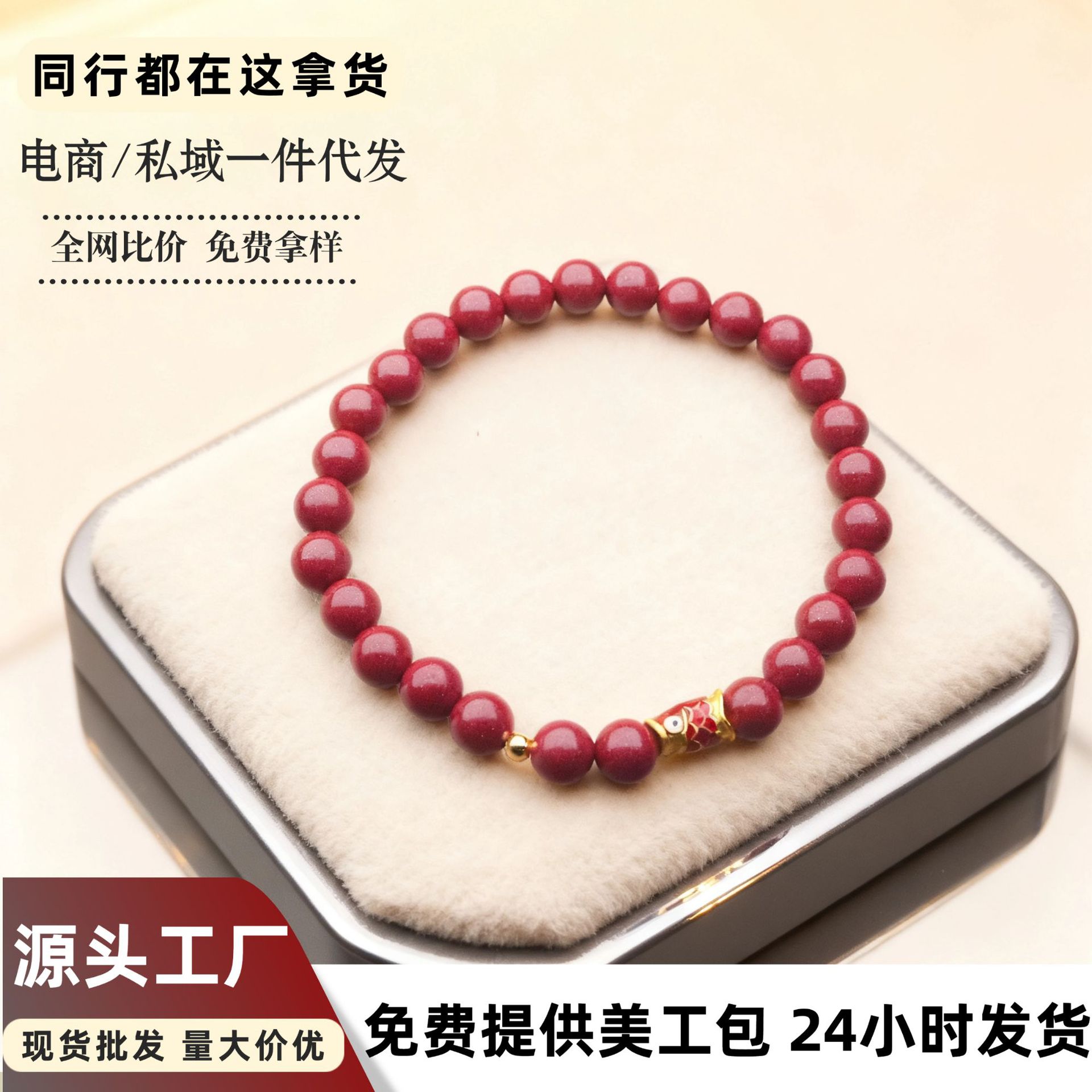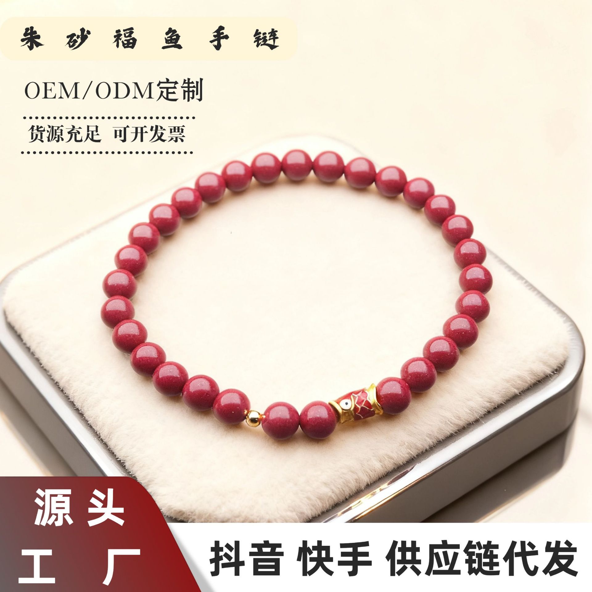 朱砂手链串珠女单圈小鱼手串轻奢高级感批发小饰品朱砂手串可代发