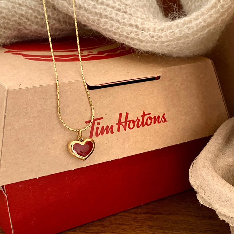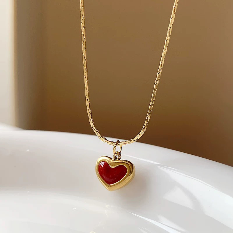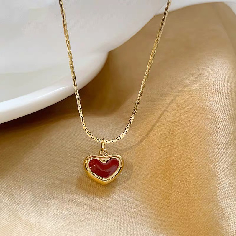 高级感百搭锁骨链复古红色爱心吊坠项链女气质轻奢小众设计毛衣链