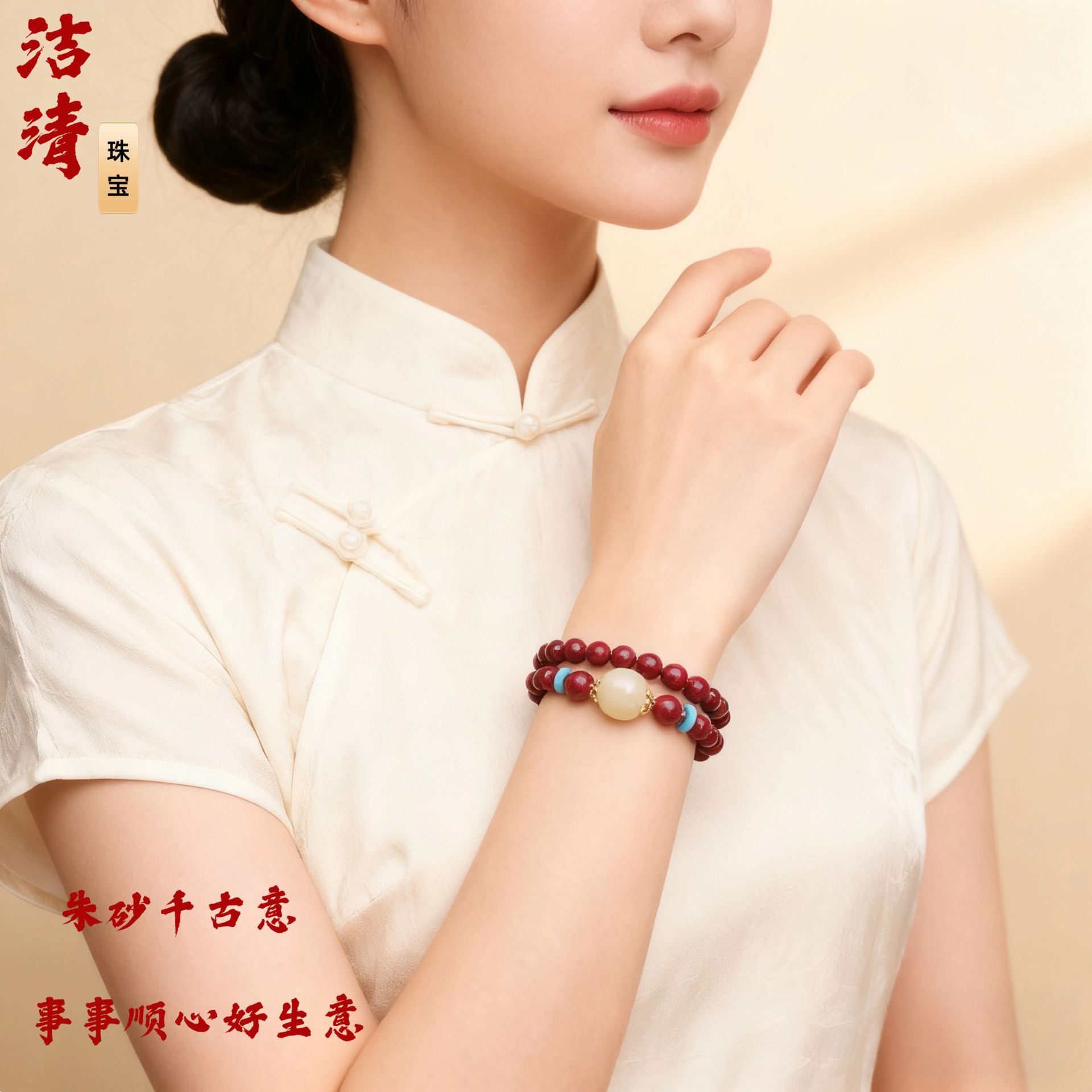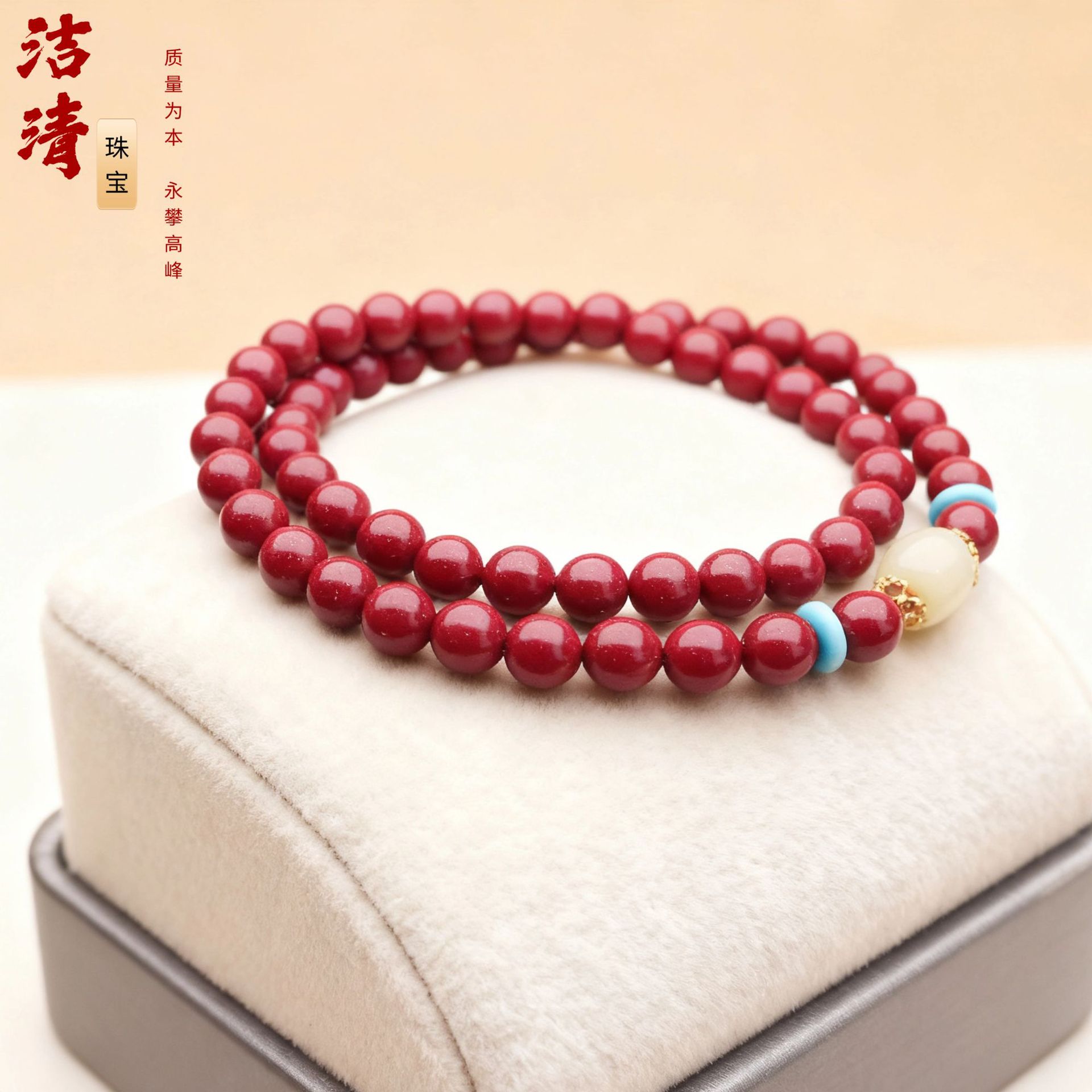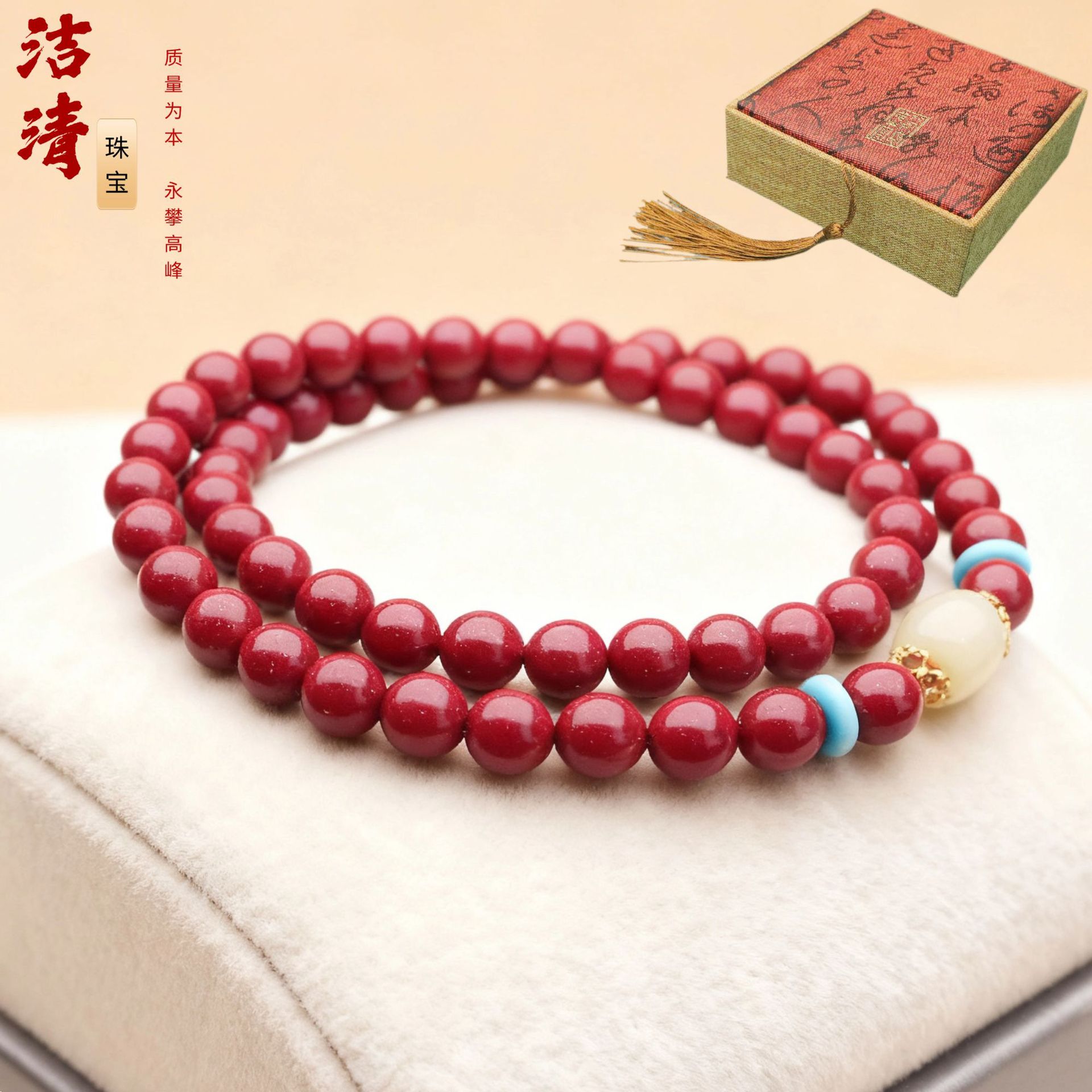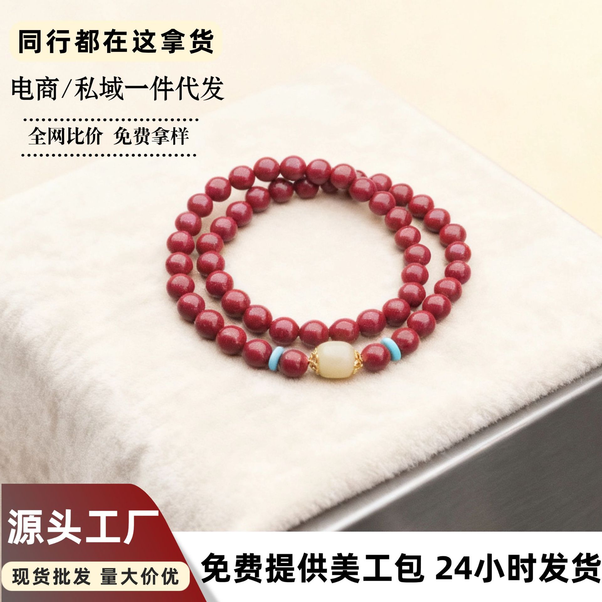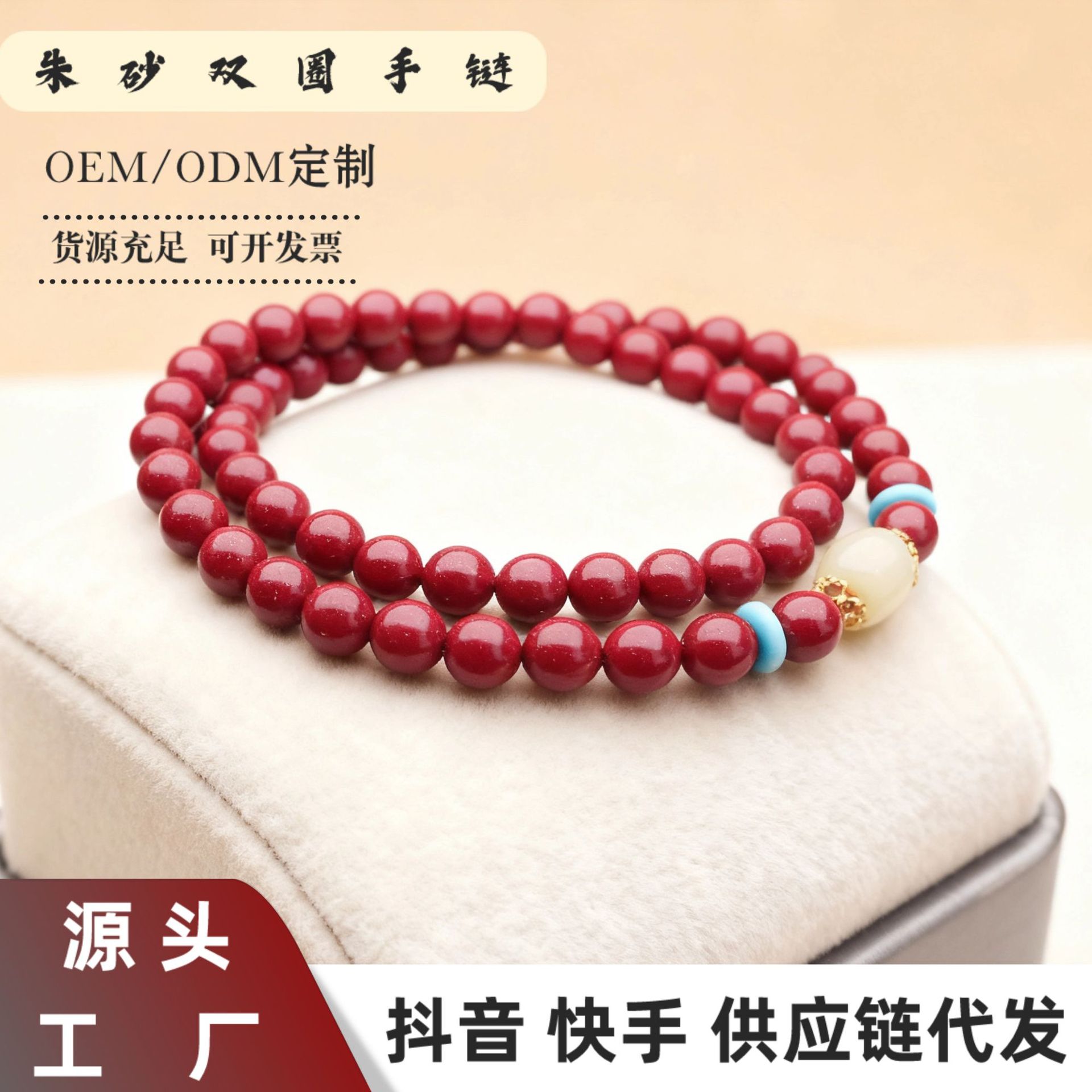 朱砂手串女和田玉佘太翠原矿紫金砂转珠多圈手男饰礼物朱砂可代发