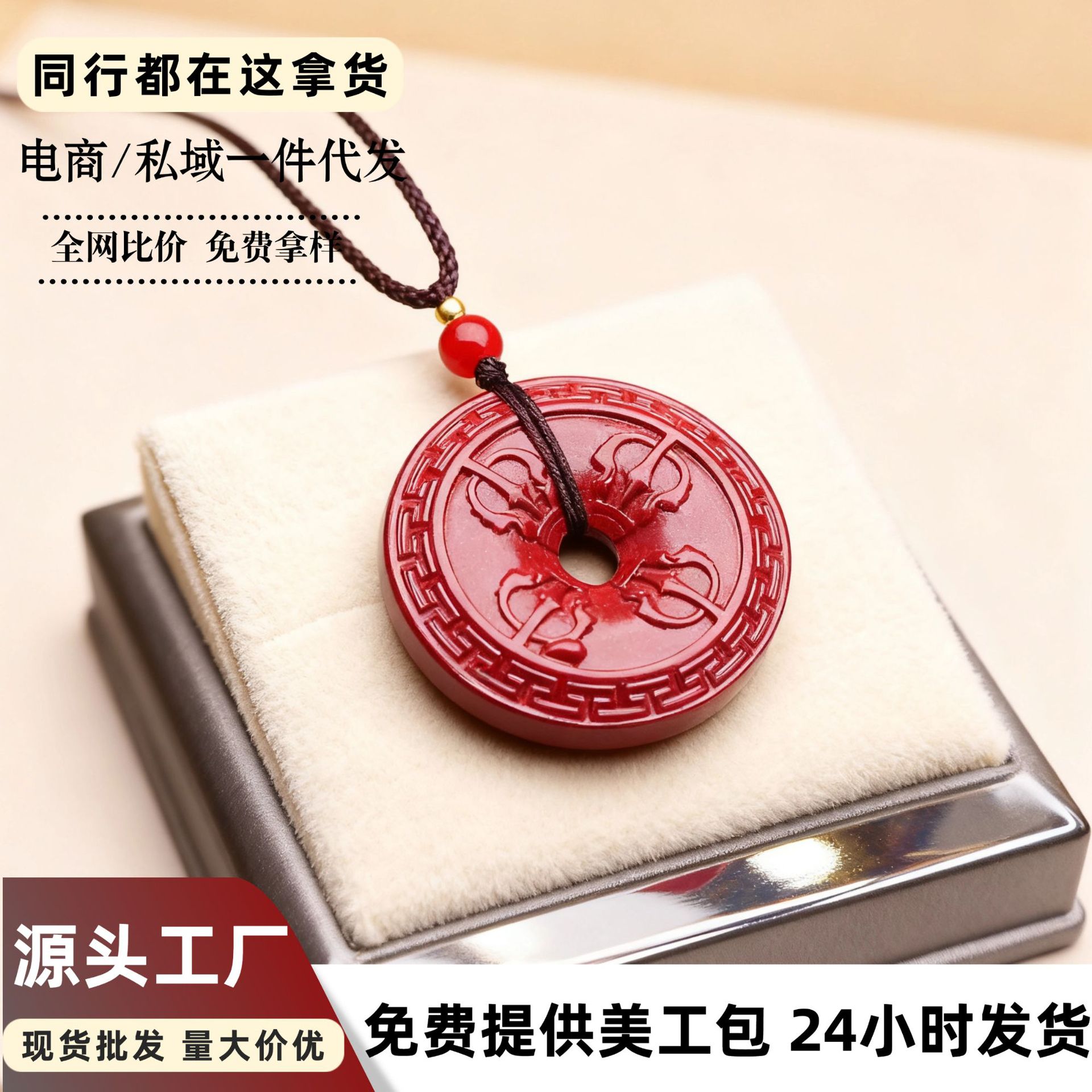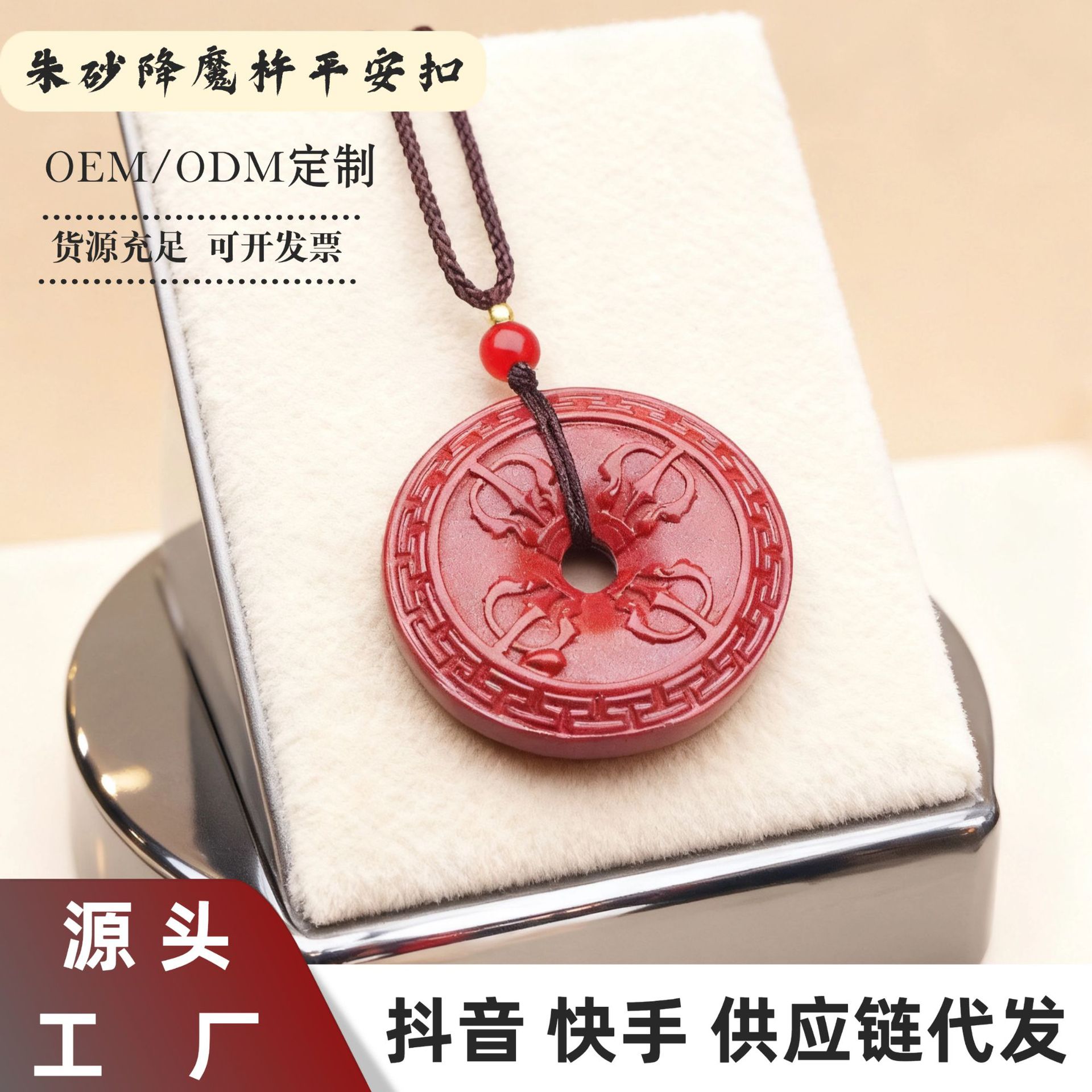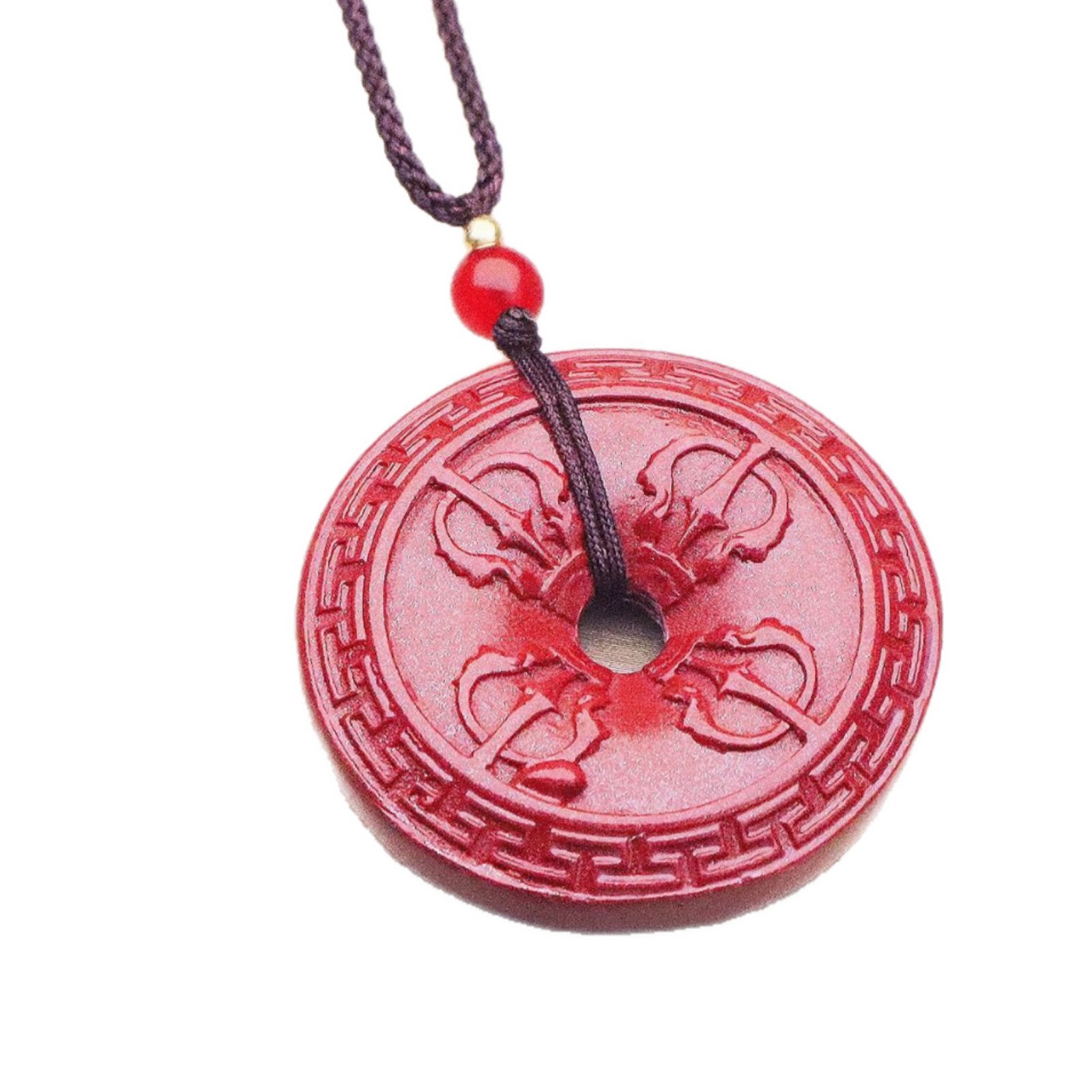 平安扣吊坠项链女夏季简约长款天然石挂脖颈链批发天然朱砂吊坠