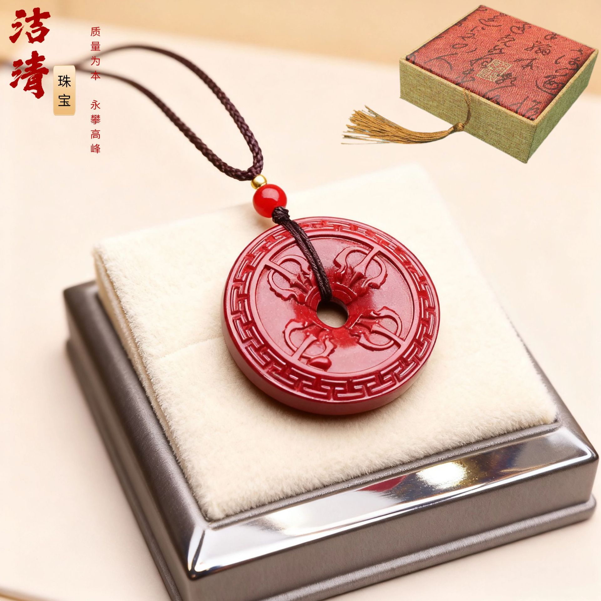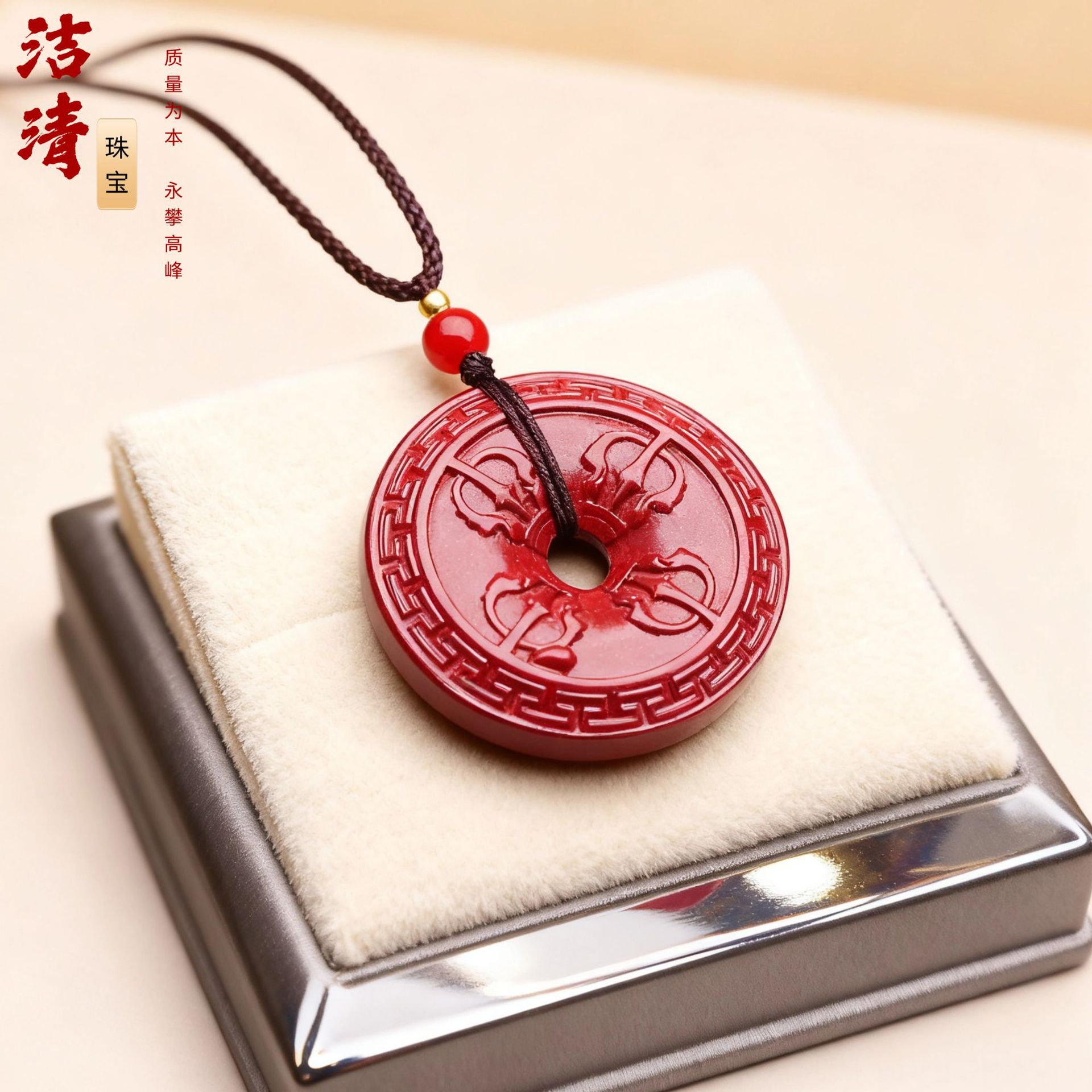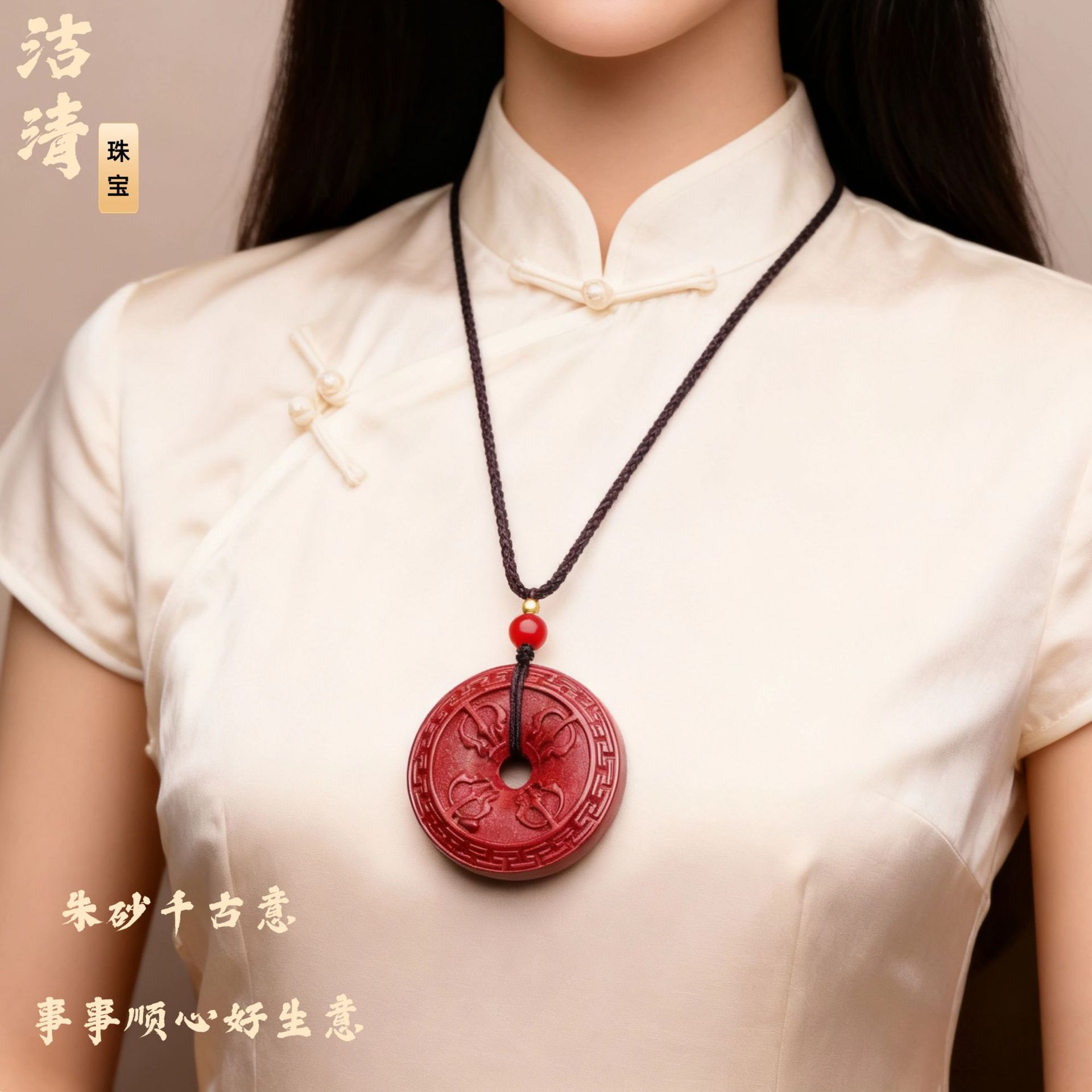 平安扣吊坠项链女夏季简约长款天然石挂脖颈链批发天然朱砂吊坠