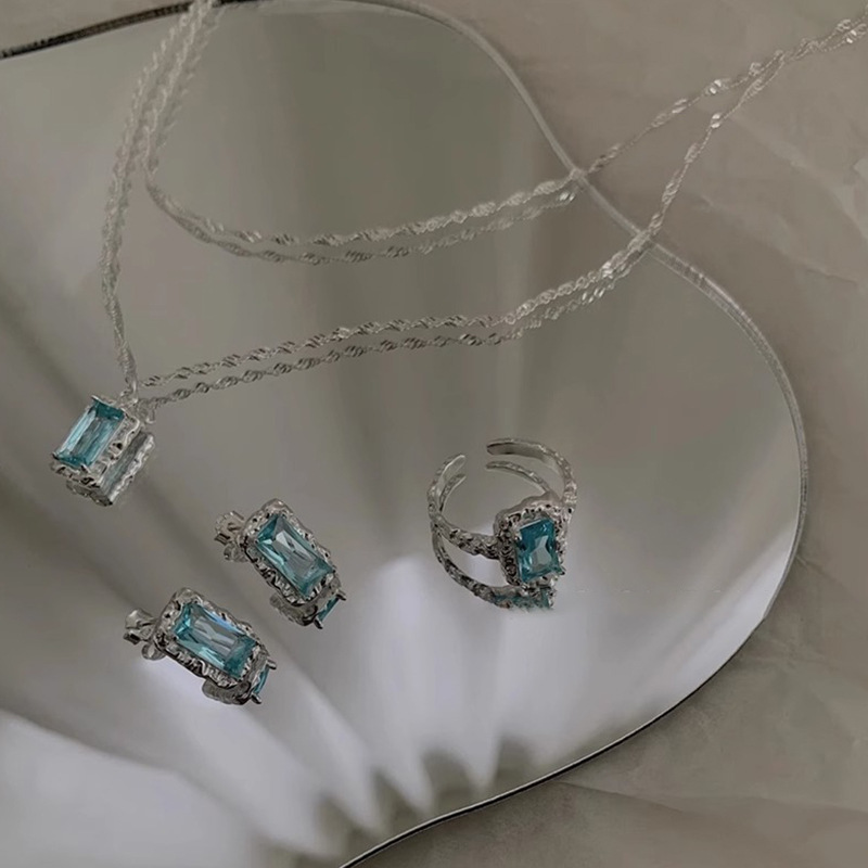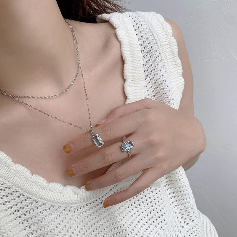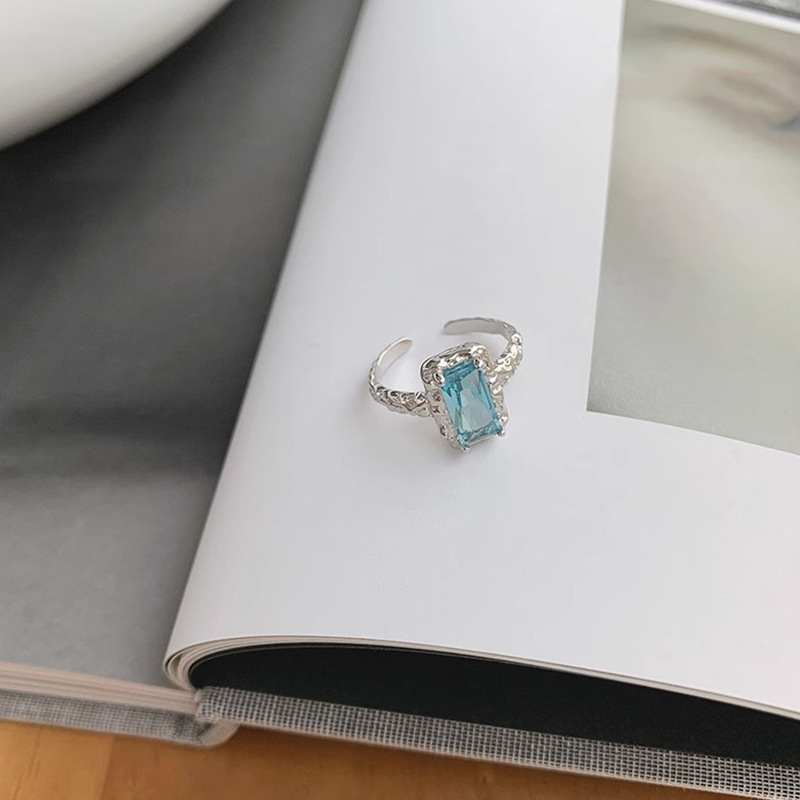 2023春夏新款复古百搭几何方形锆石开口可调节时尚个性指环