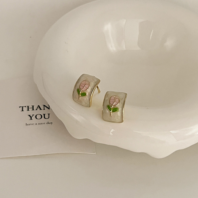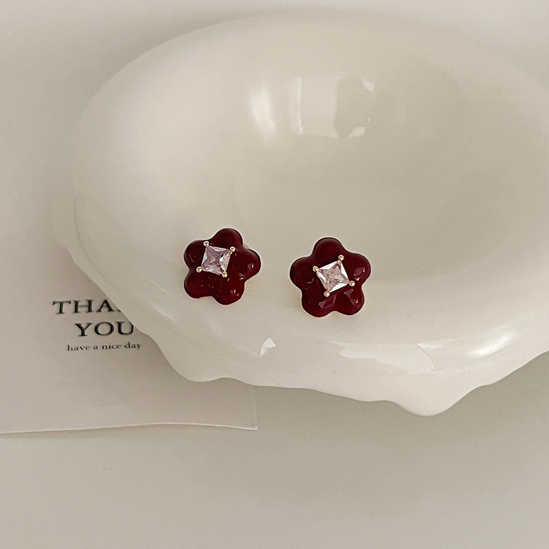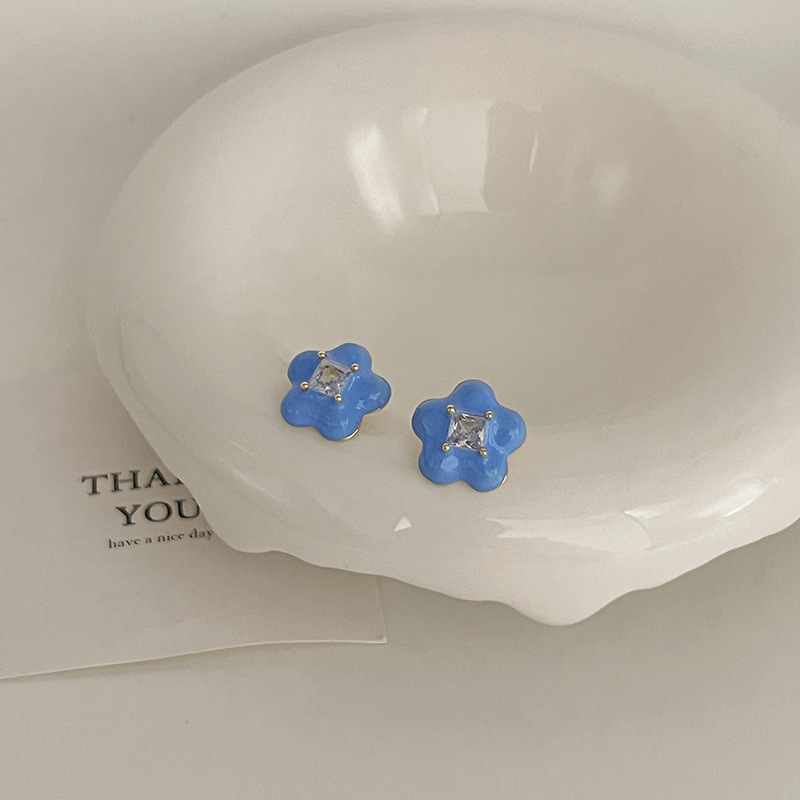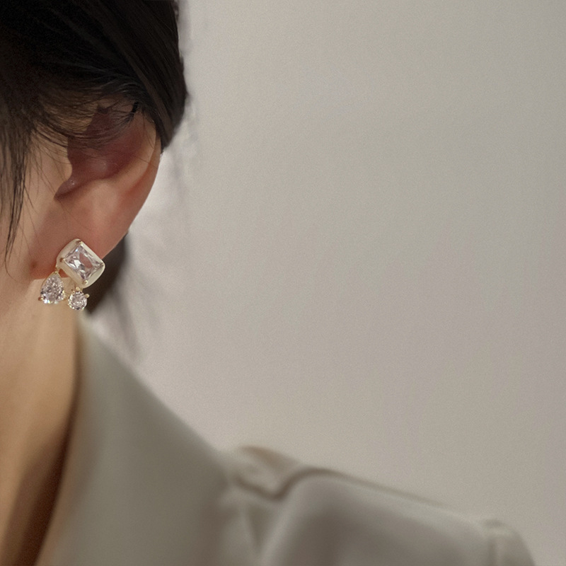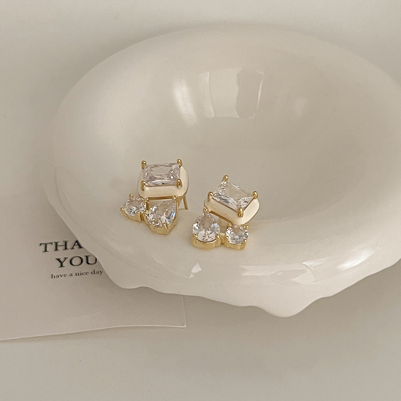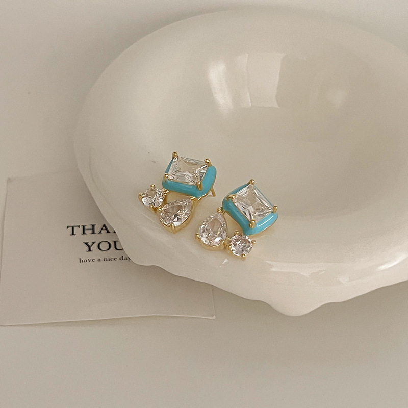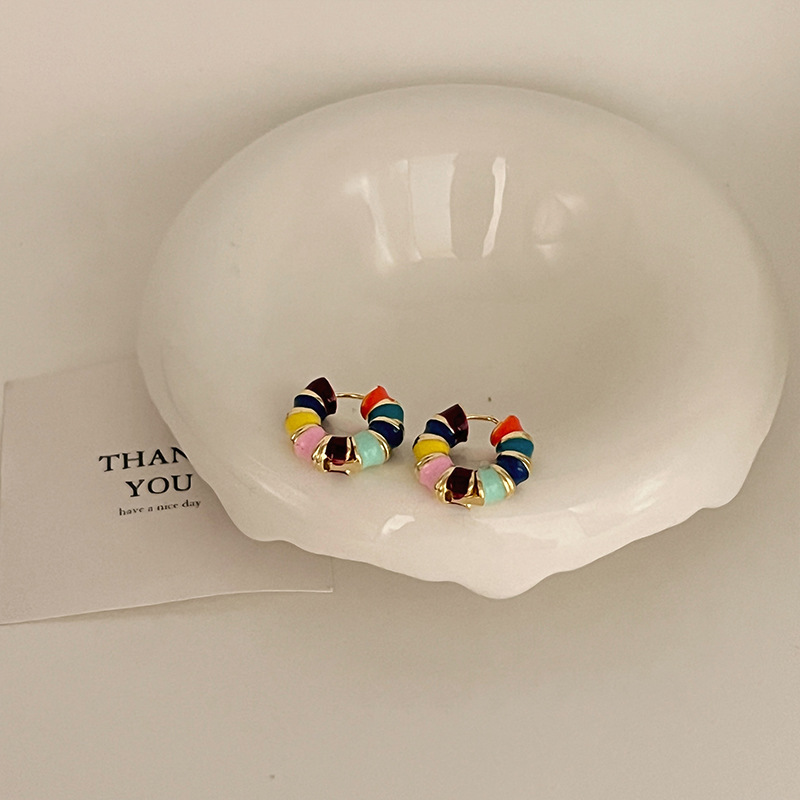 2023新款百搭彩色锆石耳钉女轻奢洋气高级感时尚气质滴釉耳圈耳饰