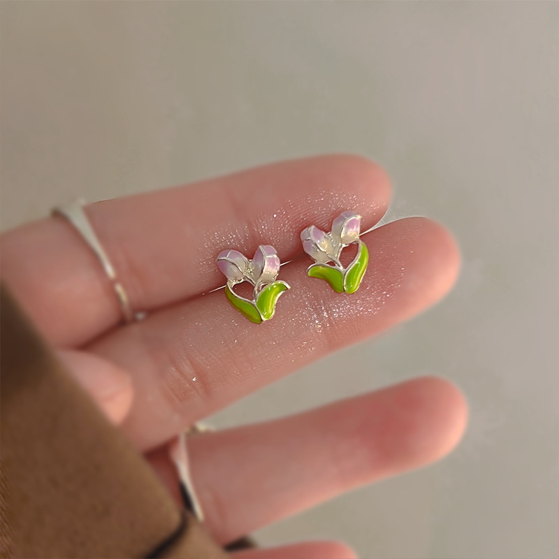 S925银夏季新款小清新森系甜美精致耳钉时尚小众设计百搭轻奢耳饰
