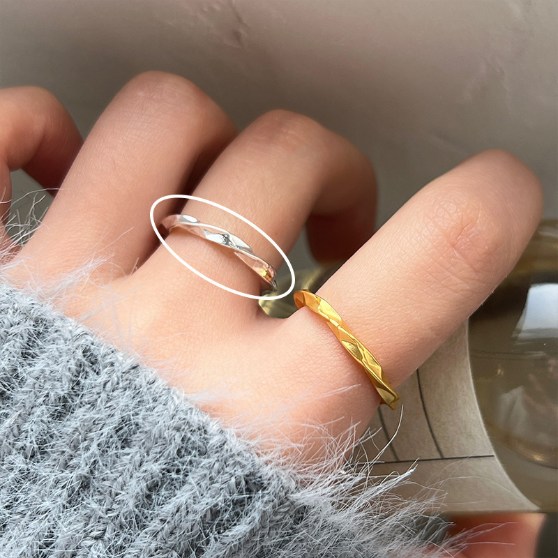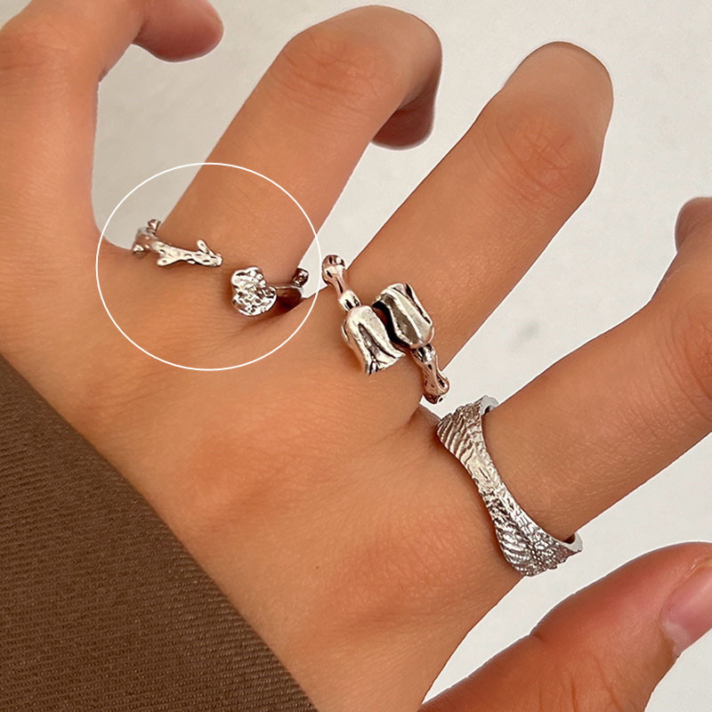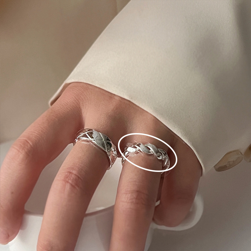 素银蝴蝶结丝带开口戒指女小众设计可调节食指戒独特网红指环潮