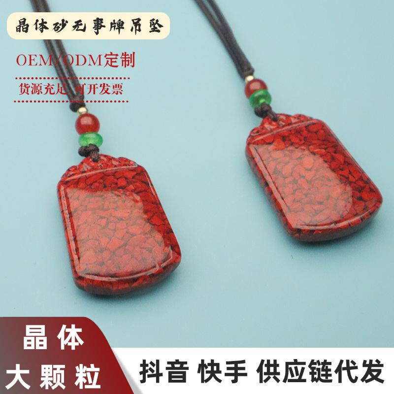 朱砂吊坠晶体砂无事牌项链女中古饰品高级感小众设计道系饰品批发