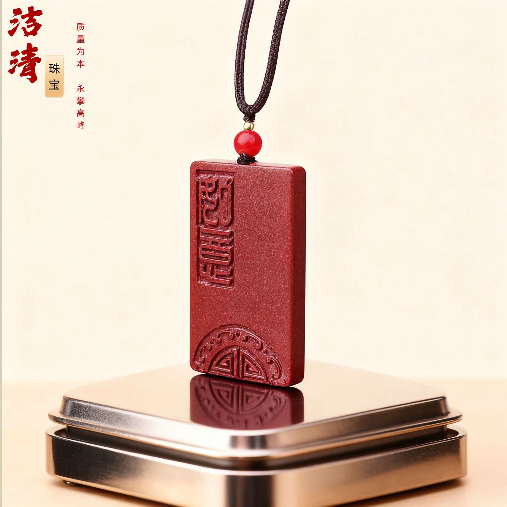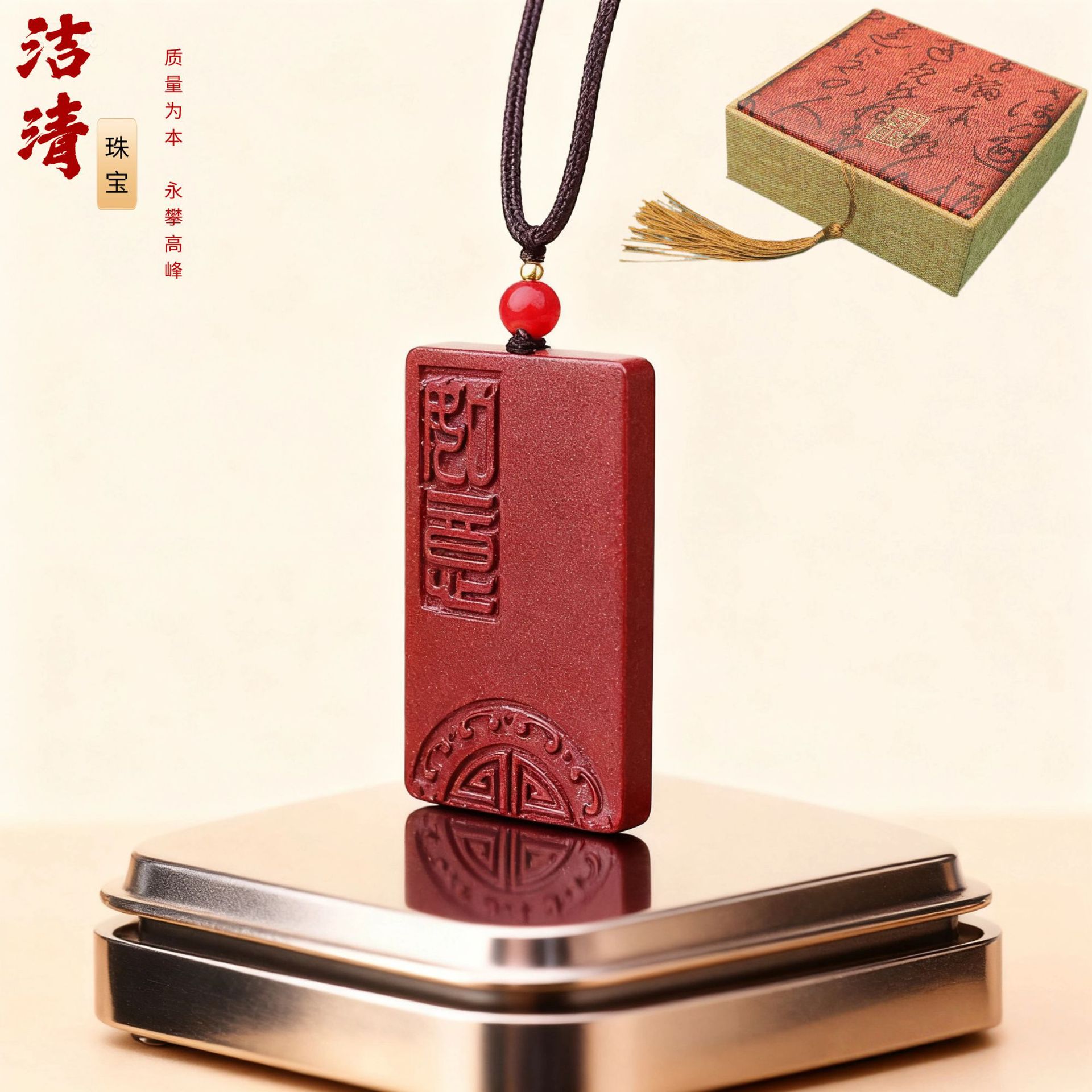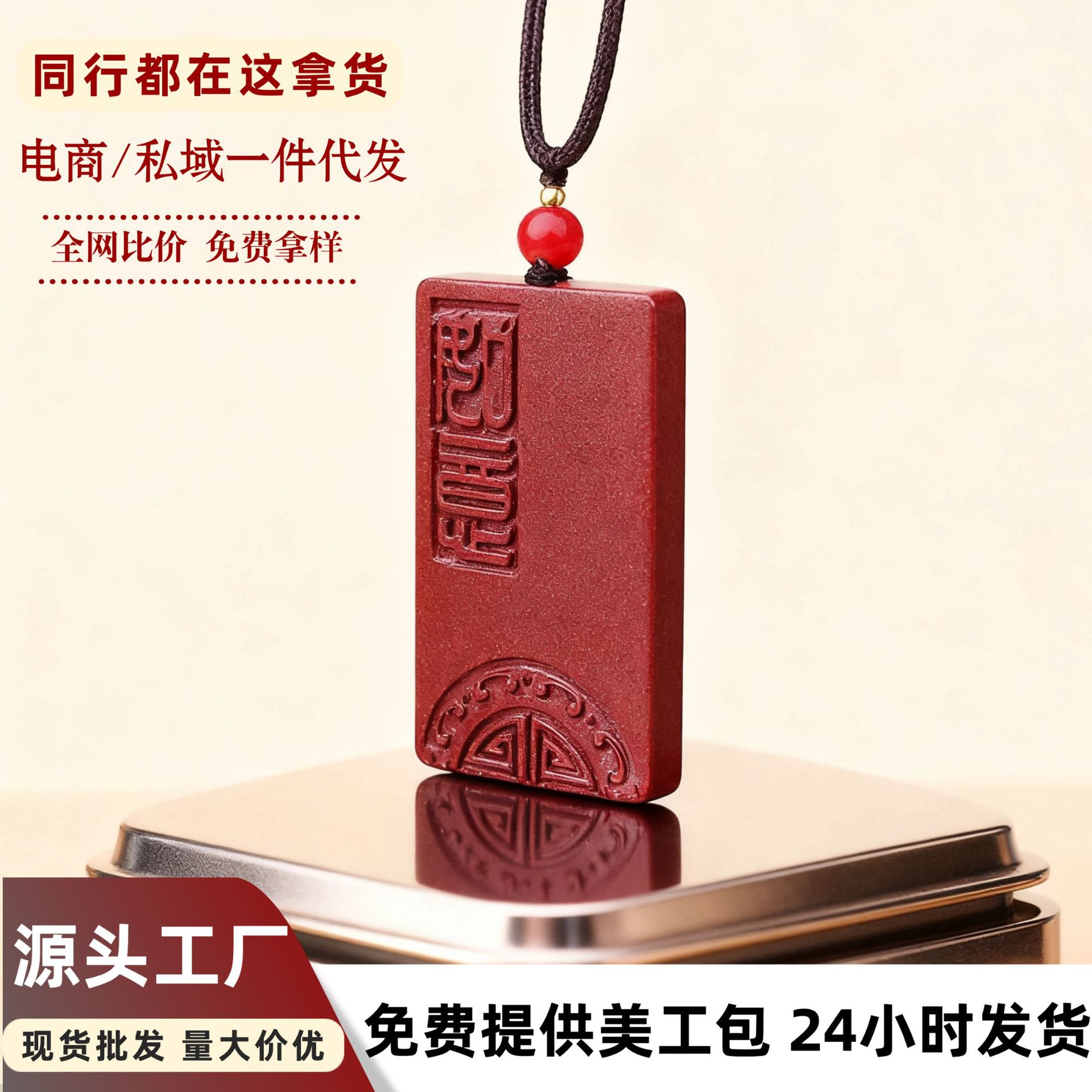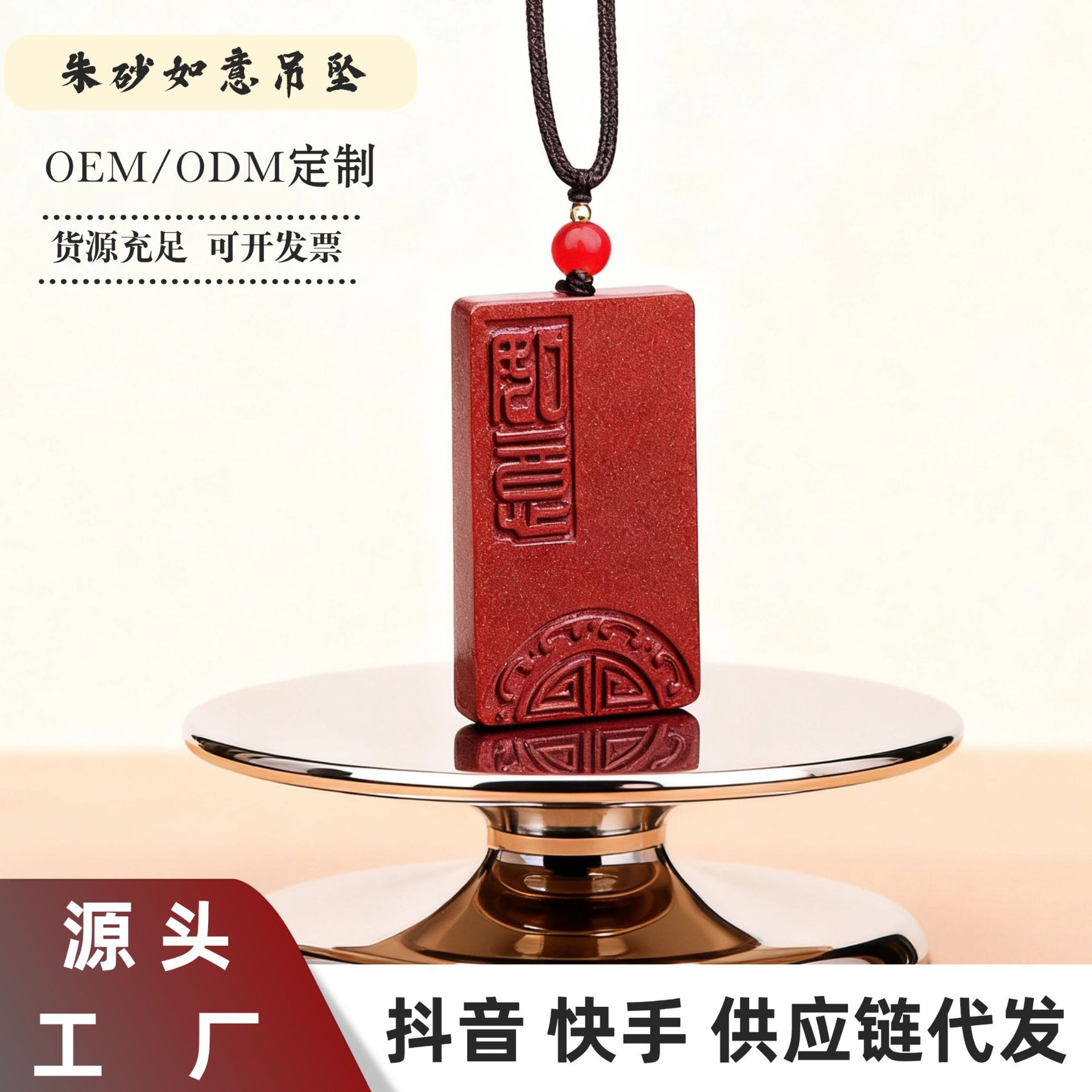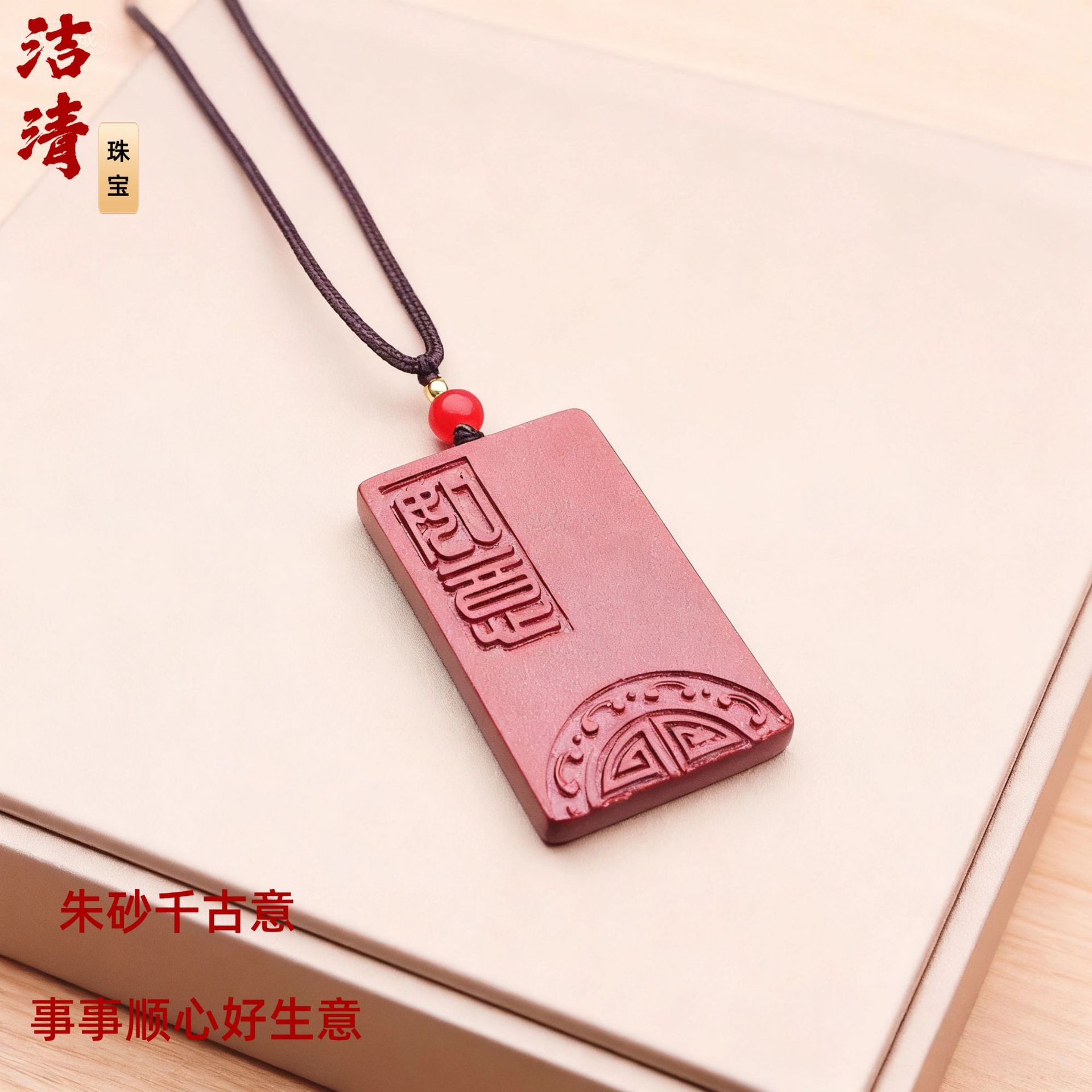 吉祥如意吊坠项链女中古饰品高级感小众设计道系饰品批发朱砂吊坠