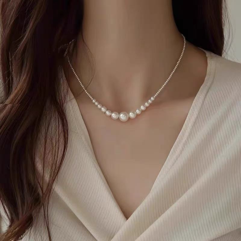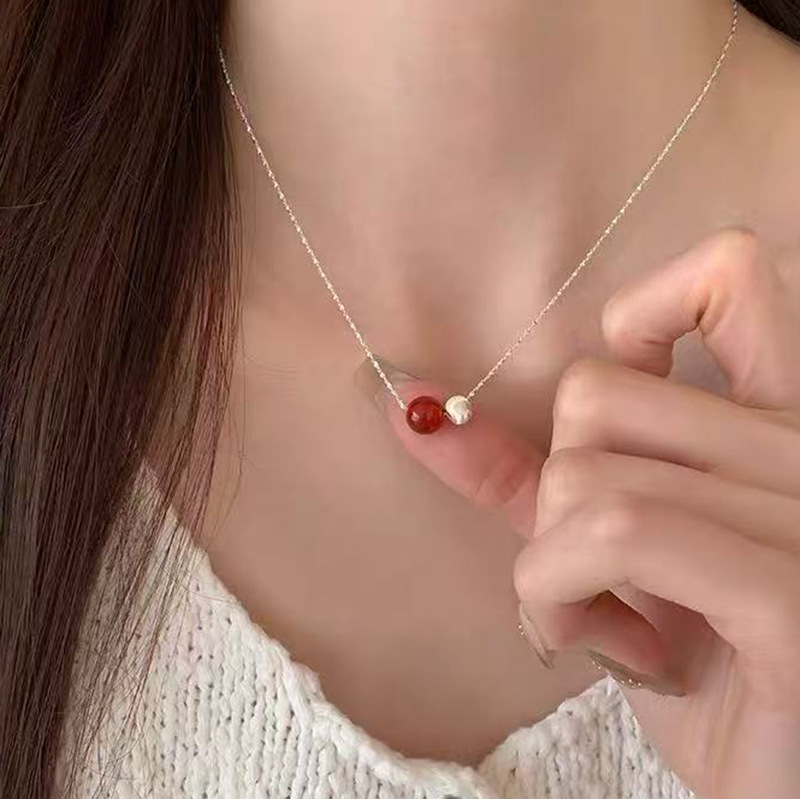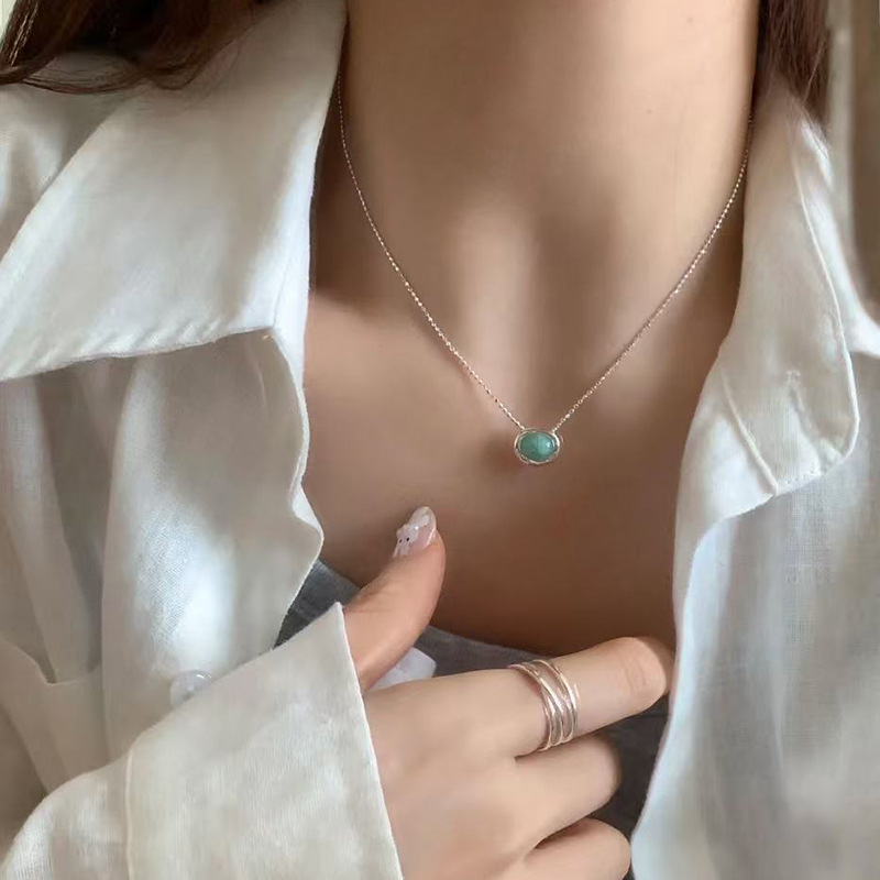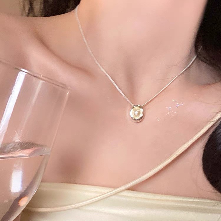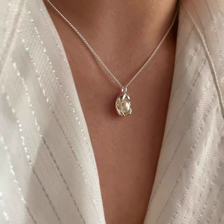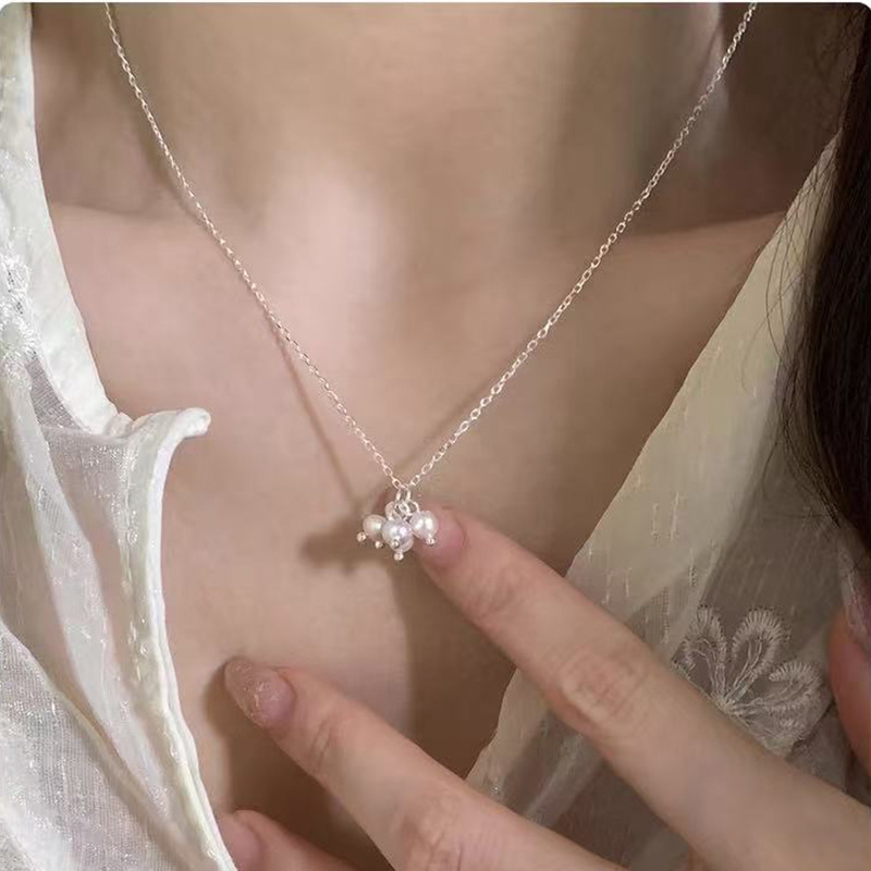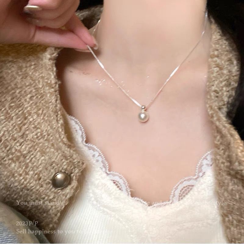 S925纯银珍珠锆石吊坠项链女小众设计小清新不掉色锁骨链配饰批发
