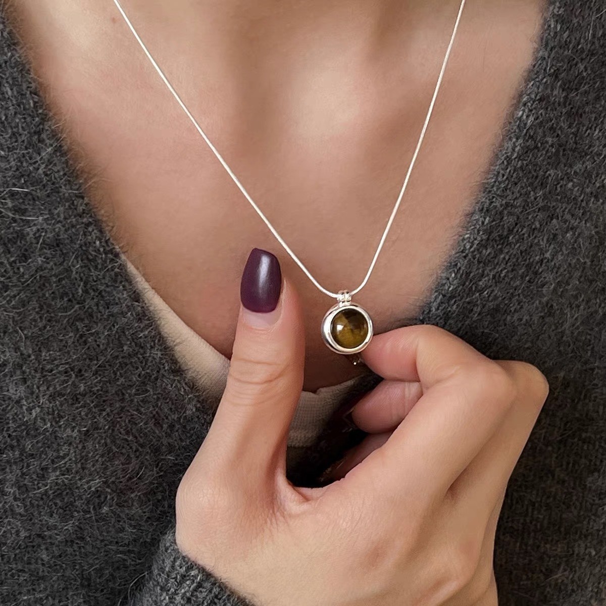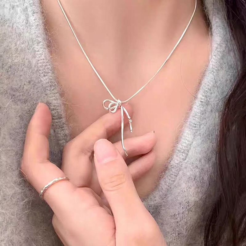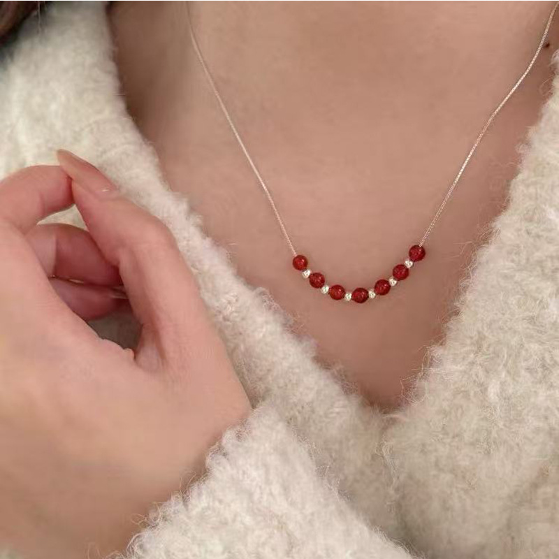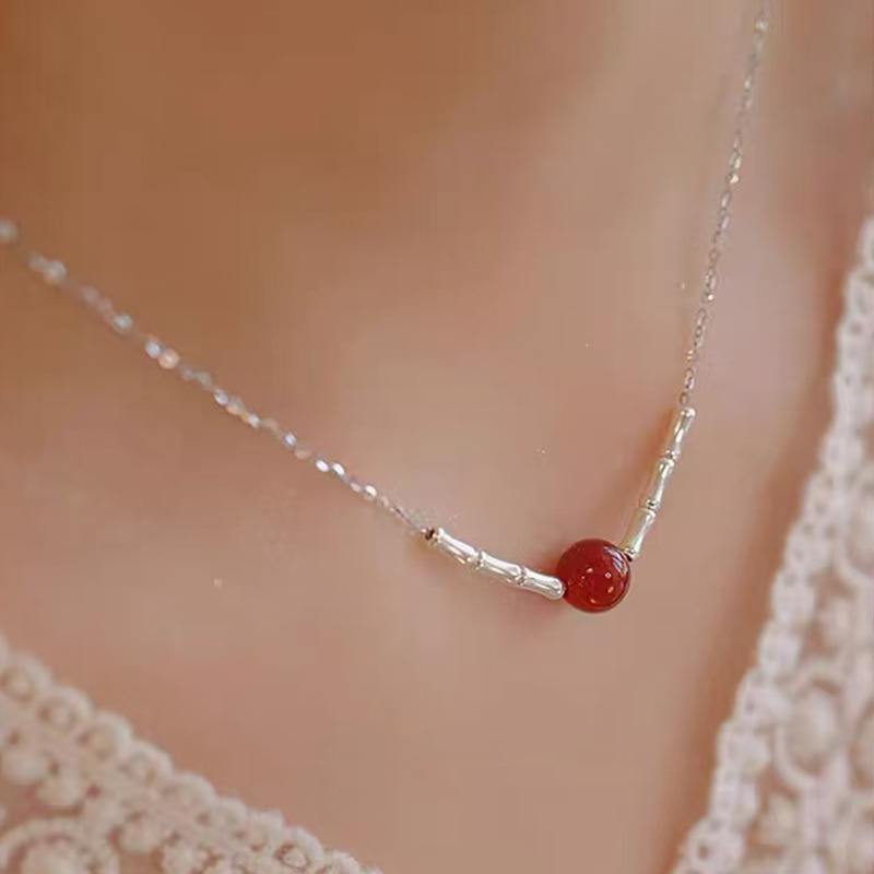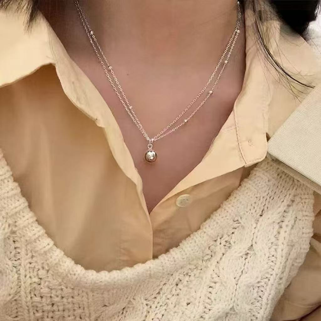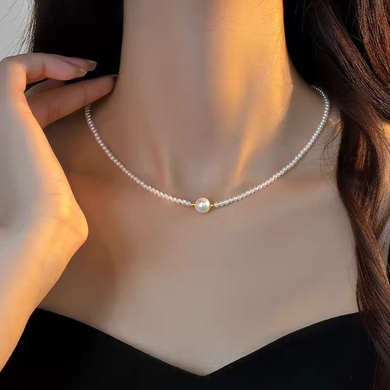 S925纯银珍珠锆石吊坠项链女小众设计小清新不掉色锁骨链配饰批发