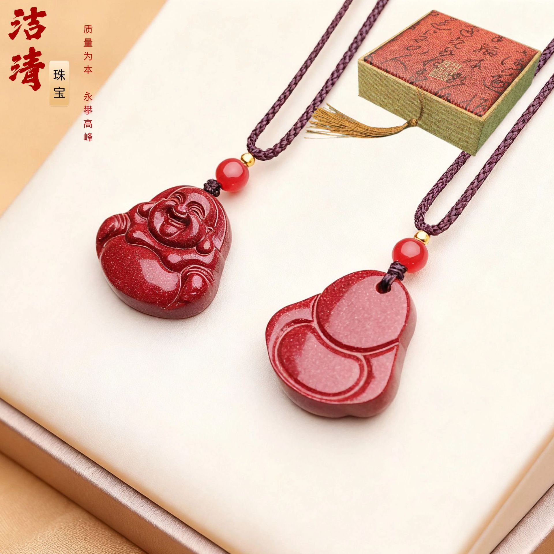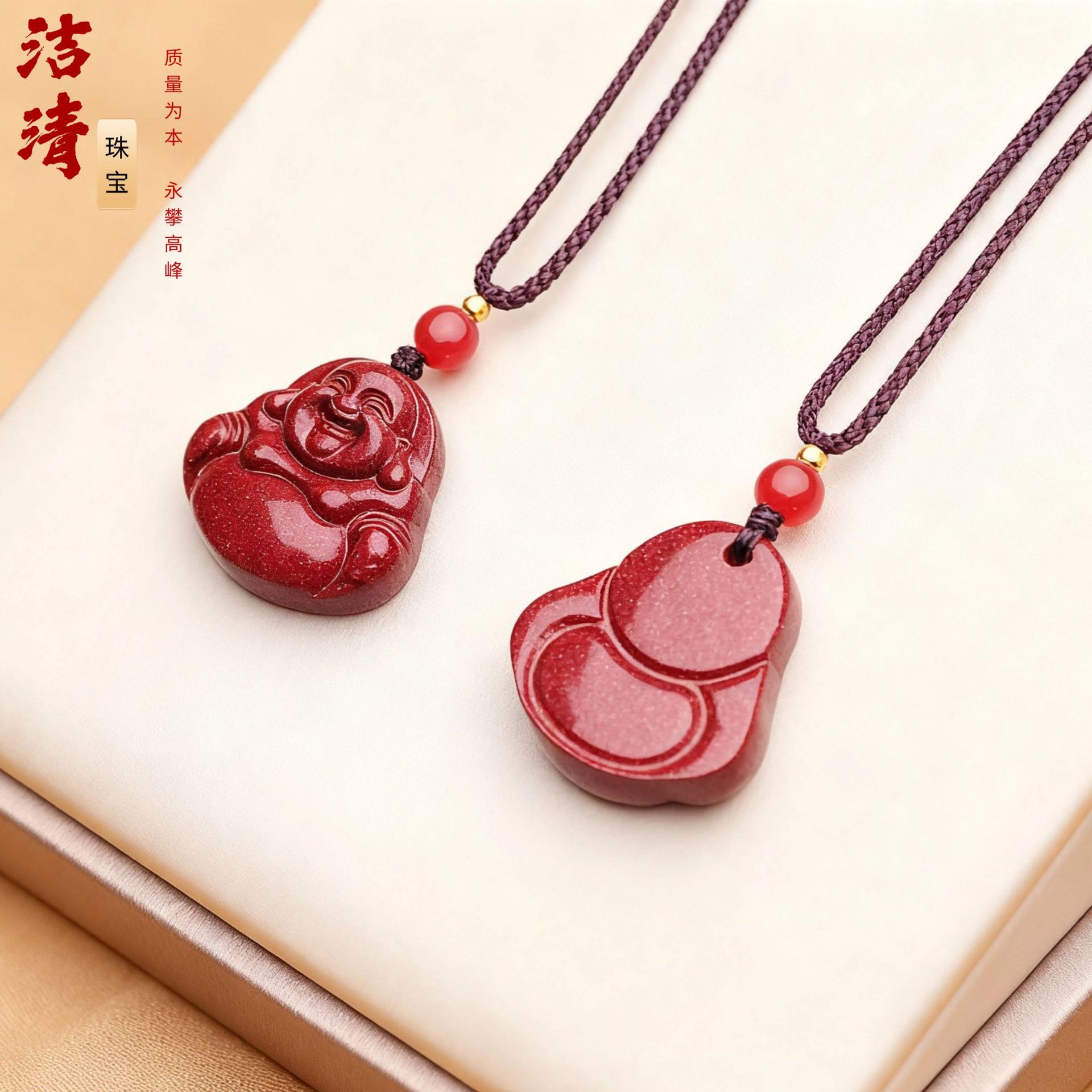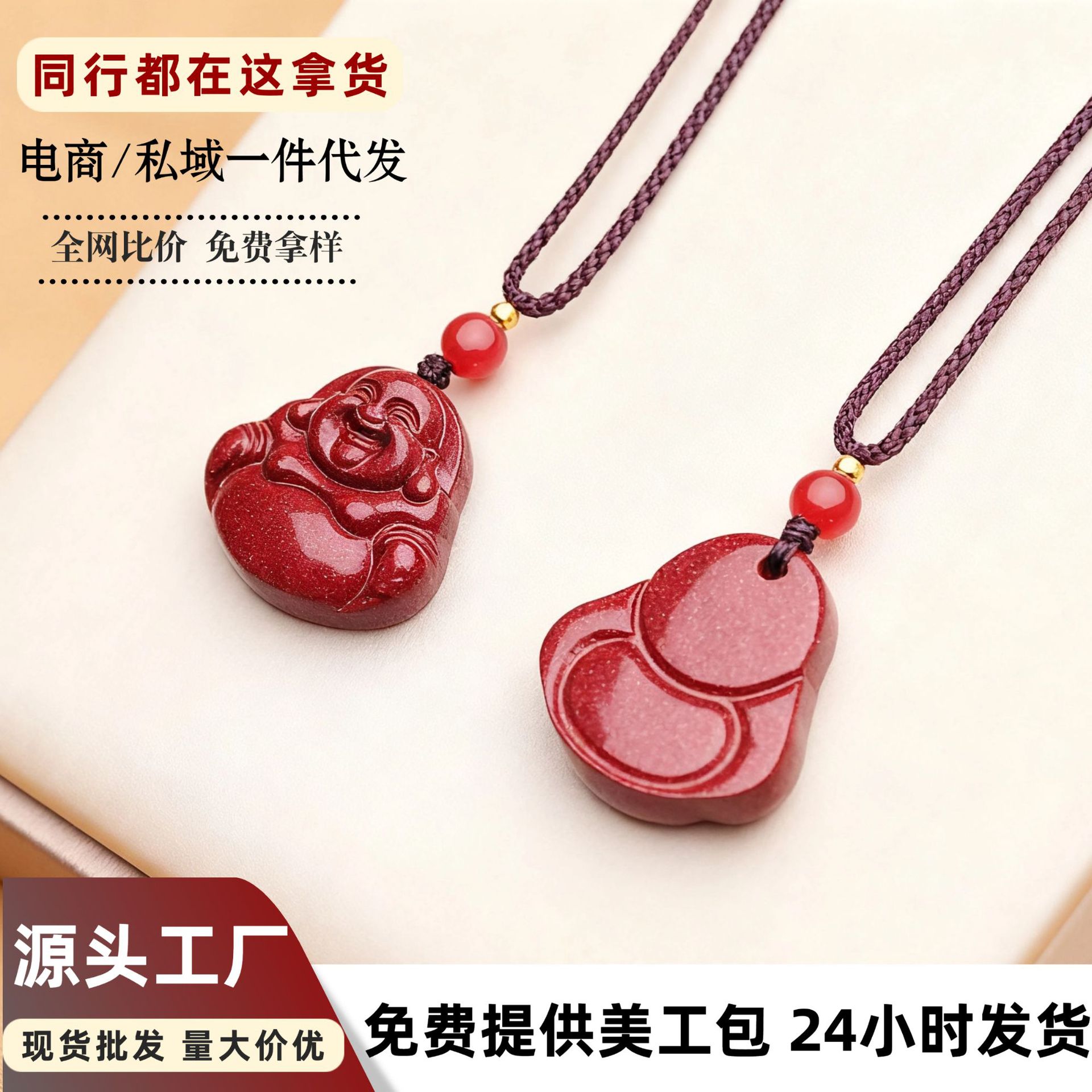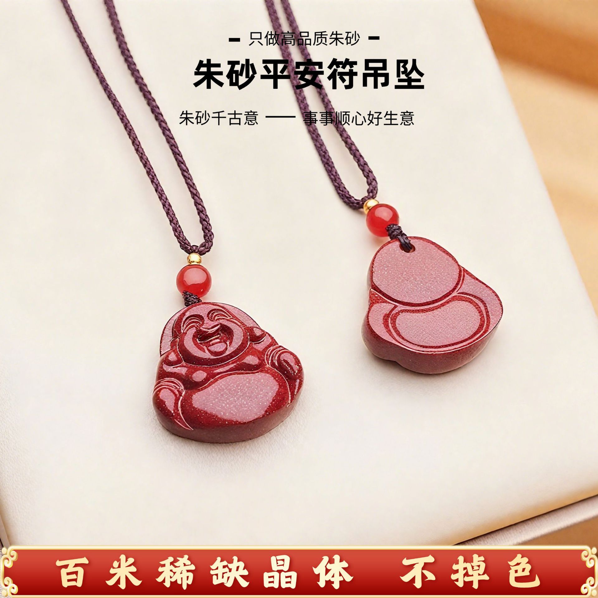 朱砂挂件饰品项链女夏季简约长款本命年朱砂笑佛吊坠可代发