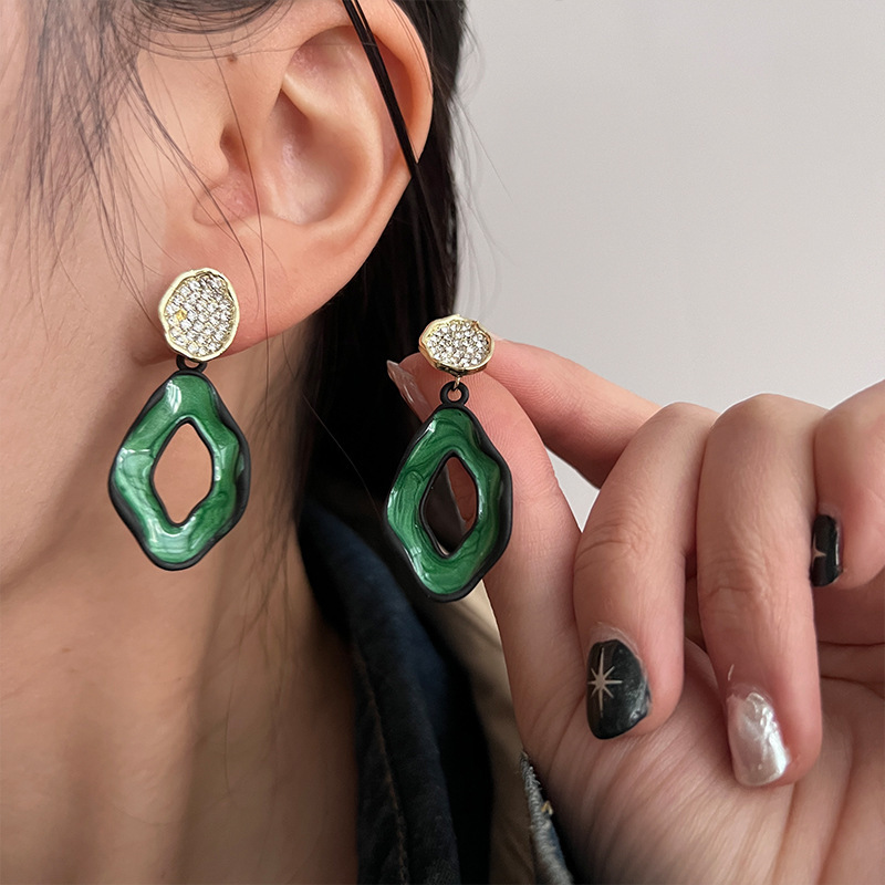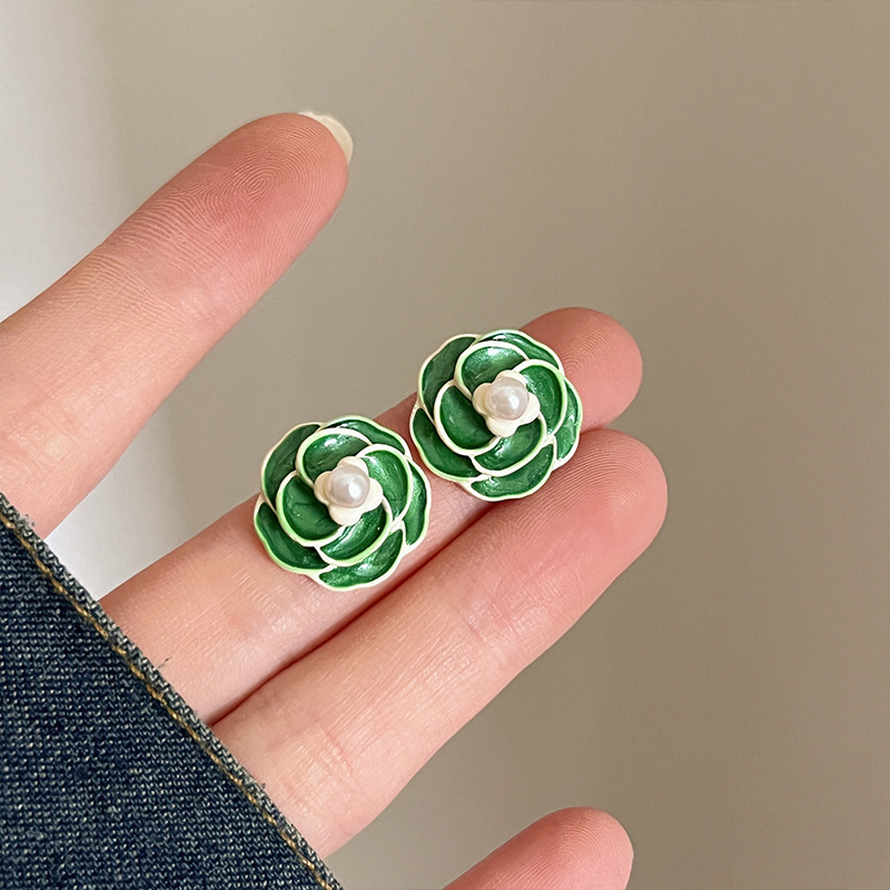 早春绿色森系法式耳钉小清新春夏耳饰2023年新款耳环独特气质耳饰